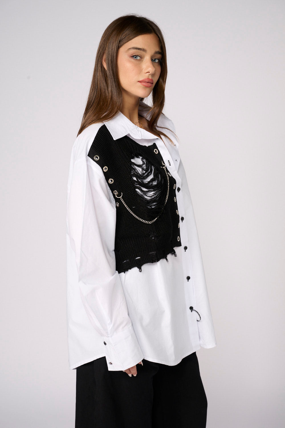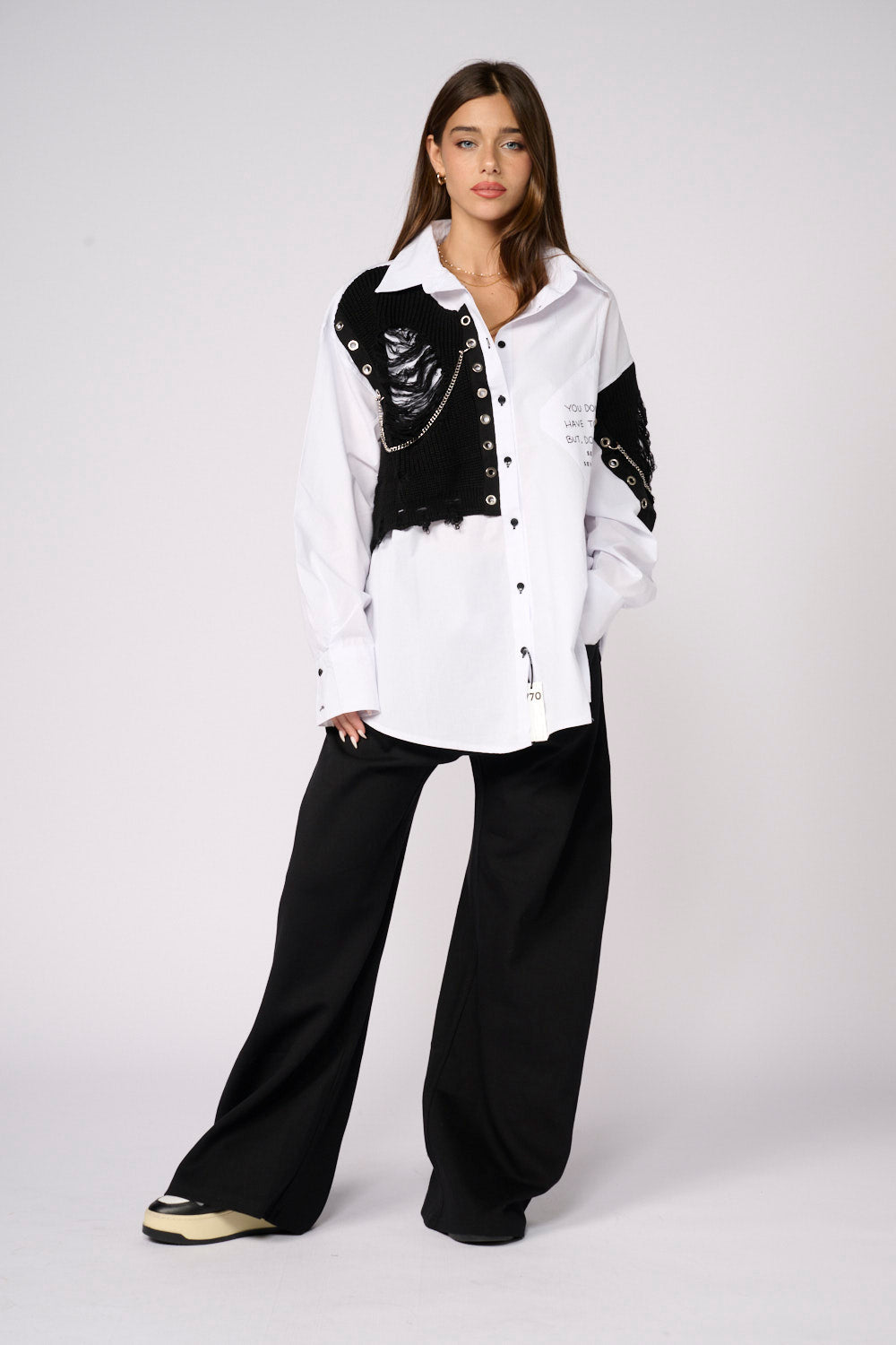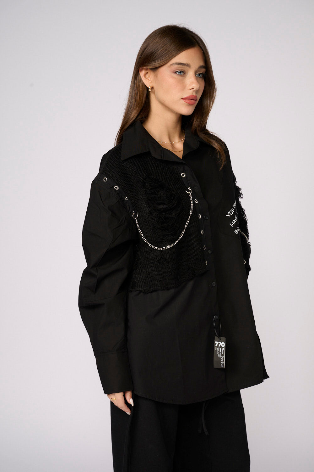 חולצה מכופתרת שילוב סריג ושרשראות STOP