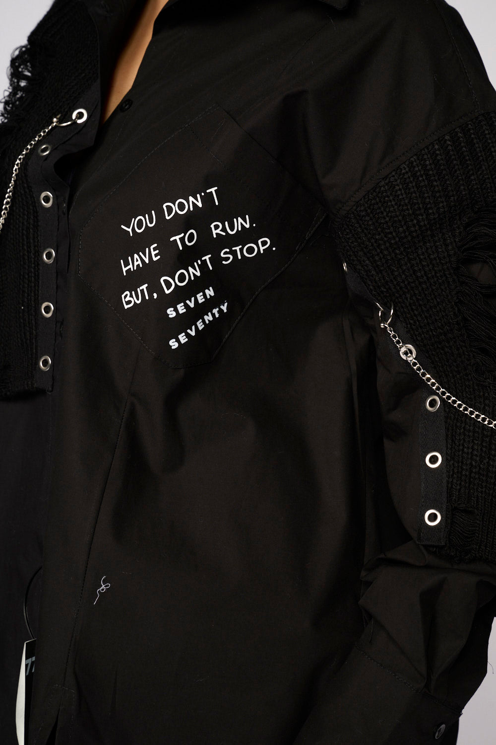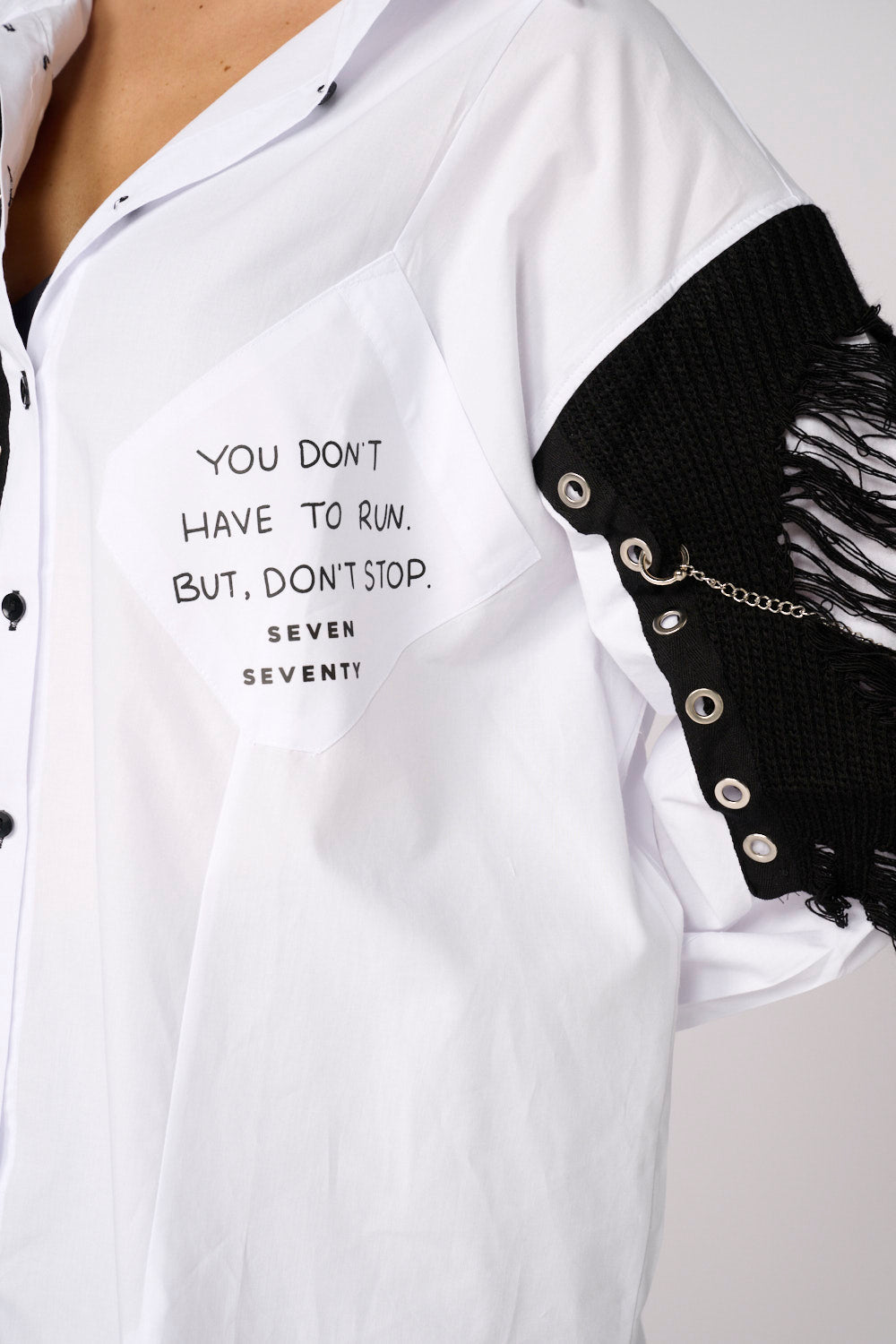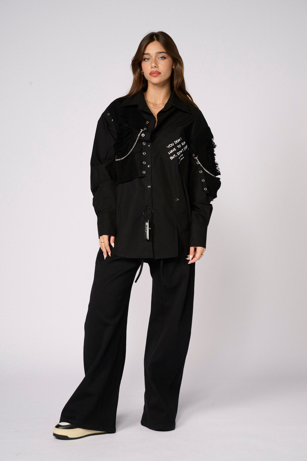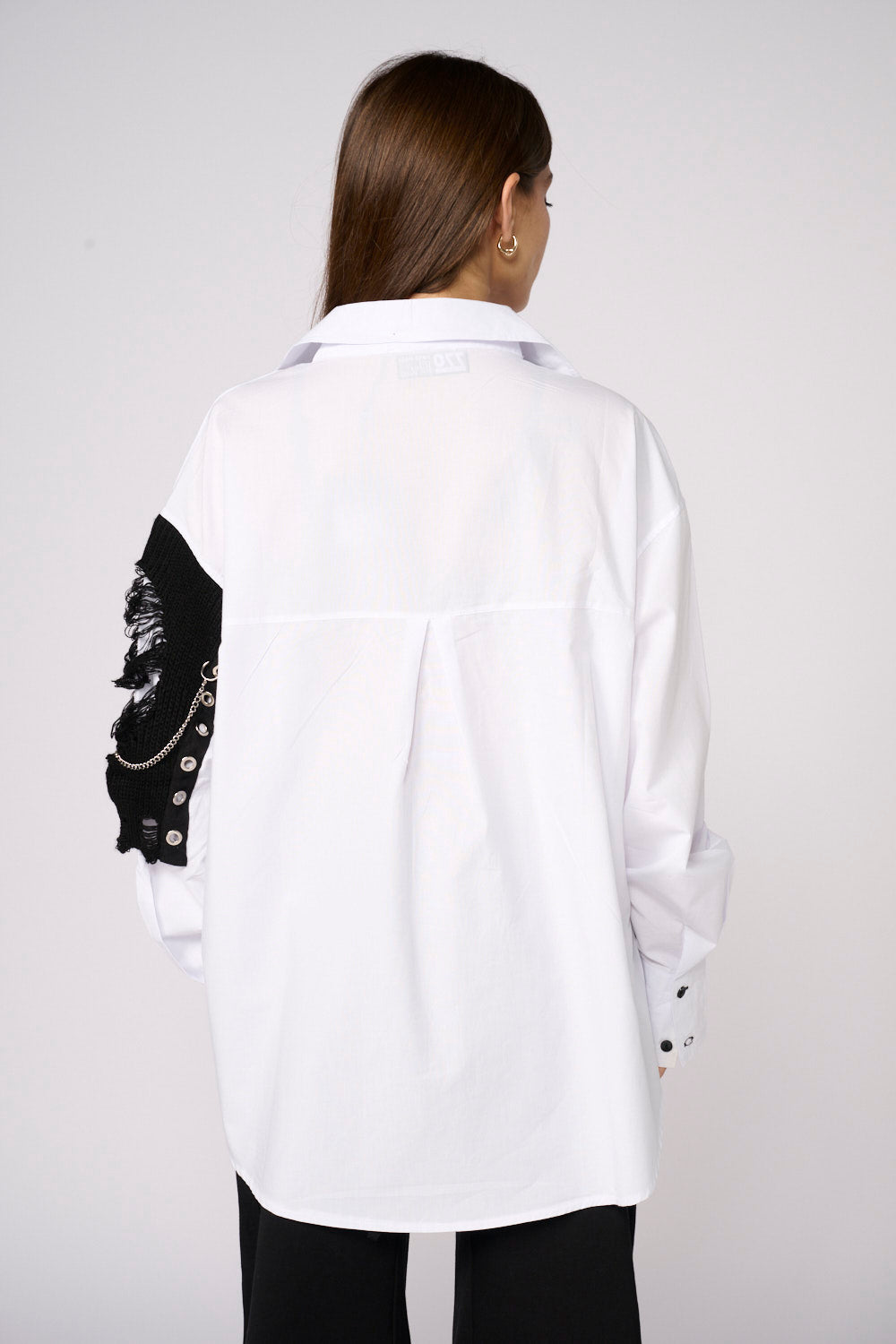 חולצה מכופתרת שילוב סריג ושרשראות STOP