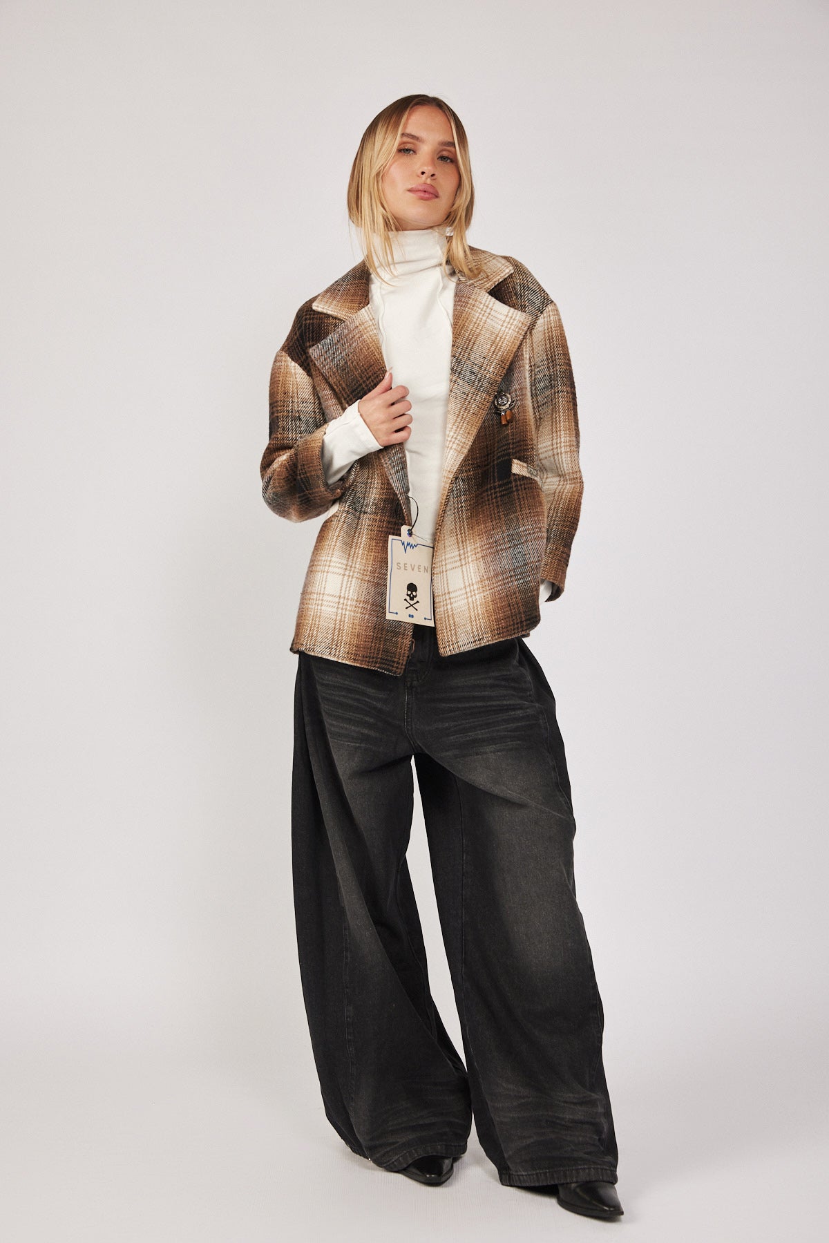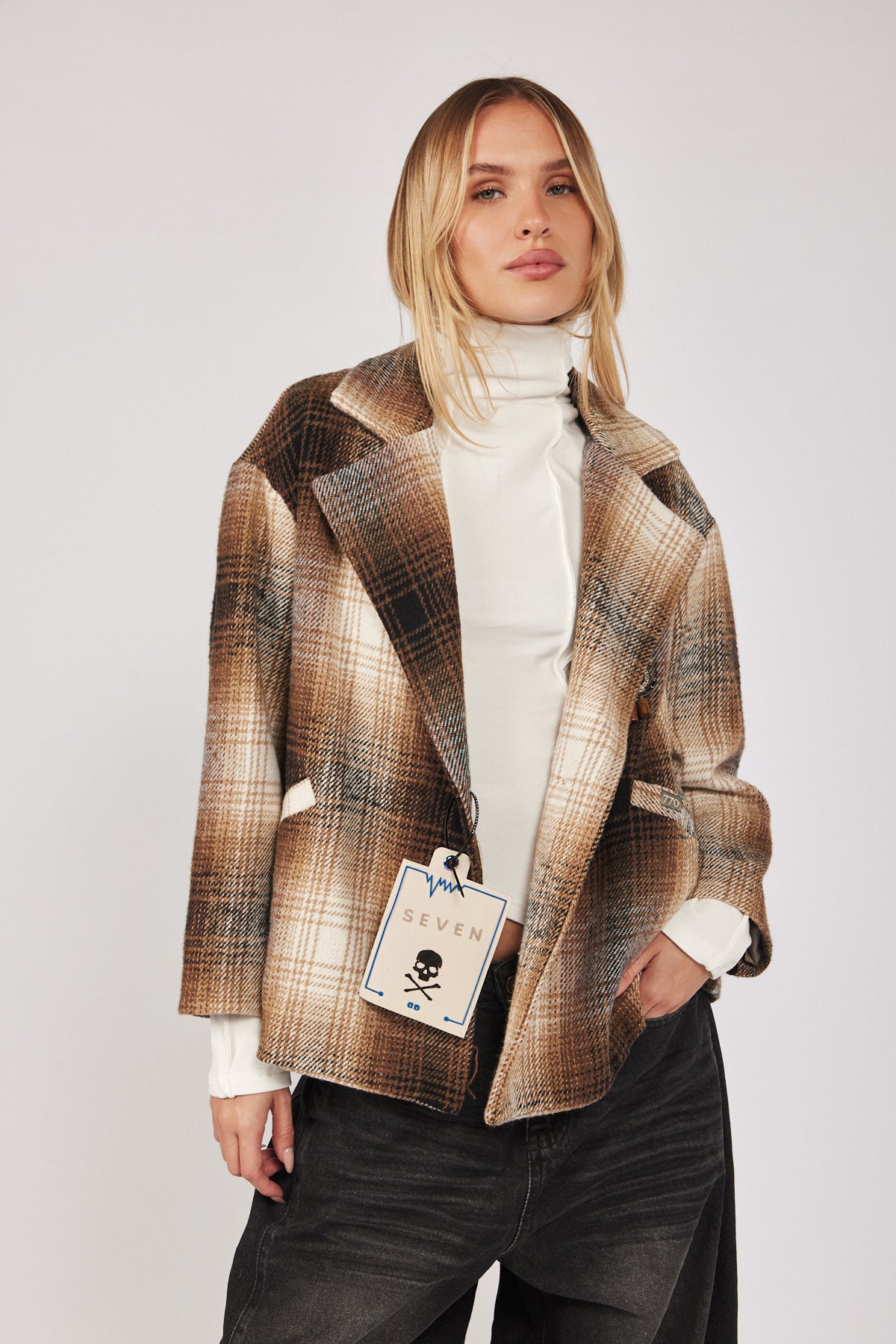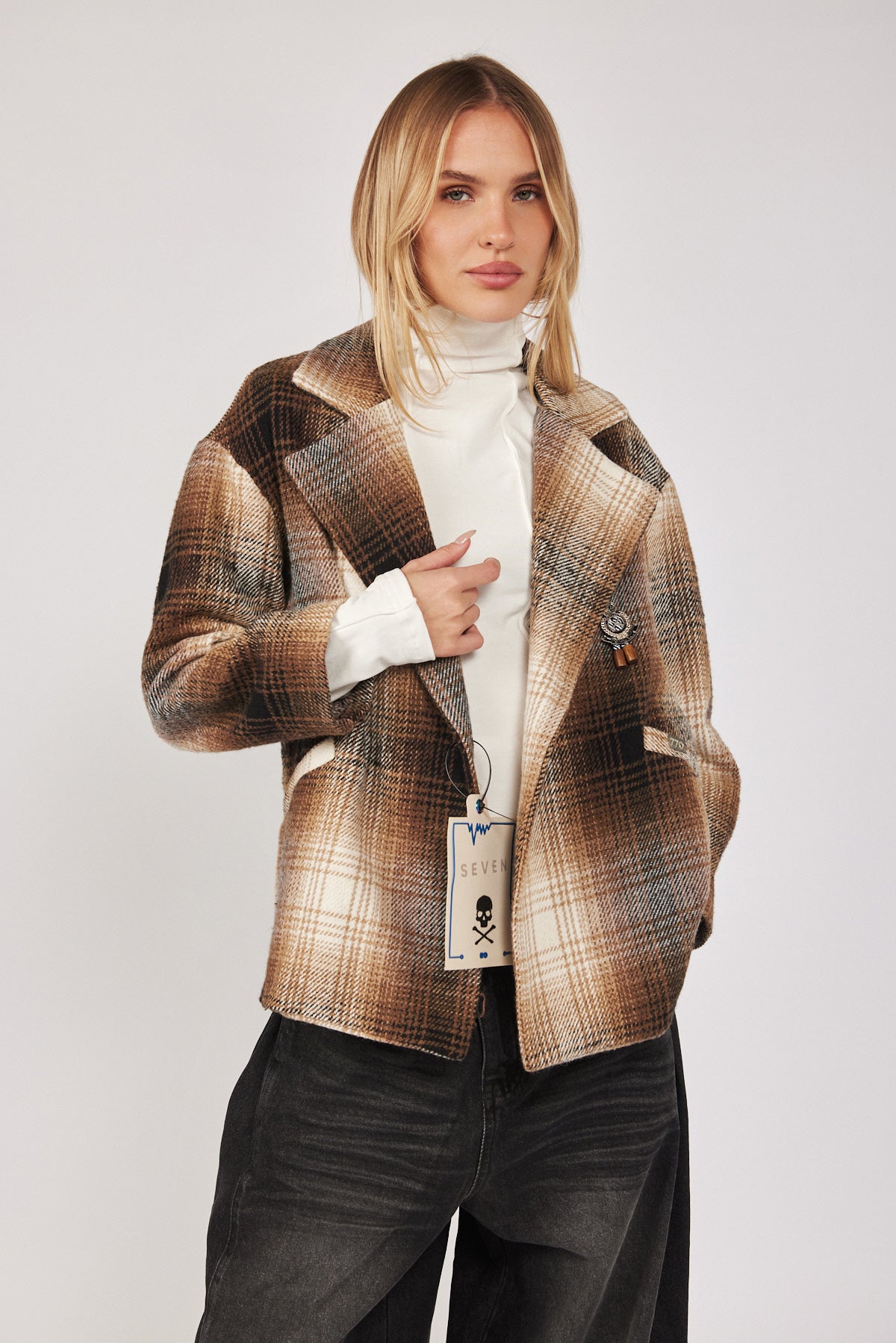 ג'קט דמוי צמר עם ביטנת ניילון וסגירת כפתור