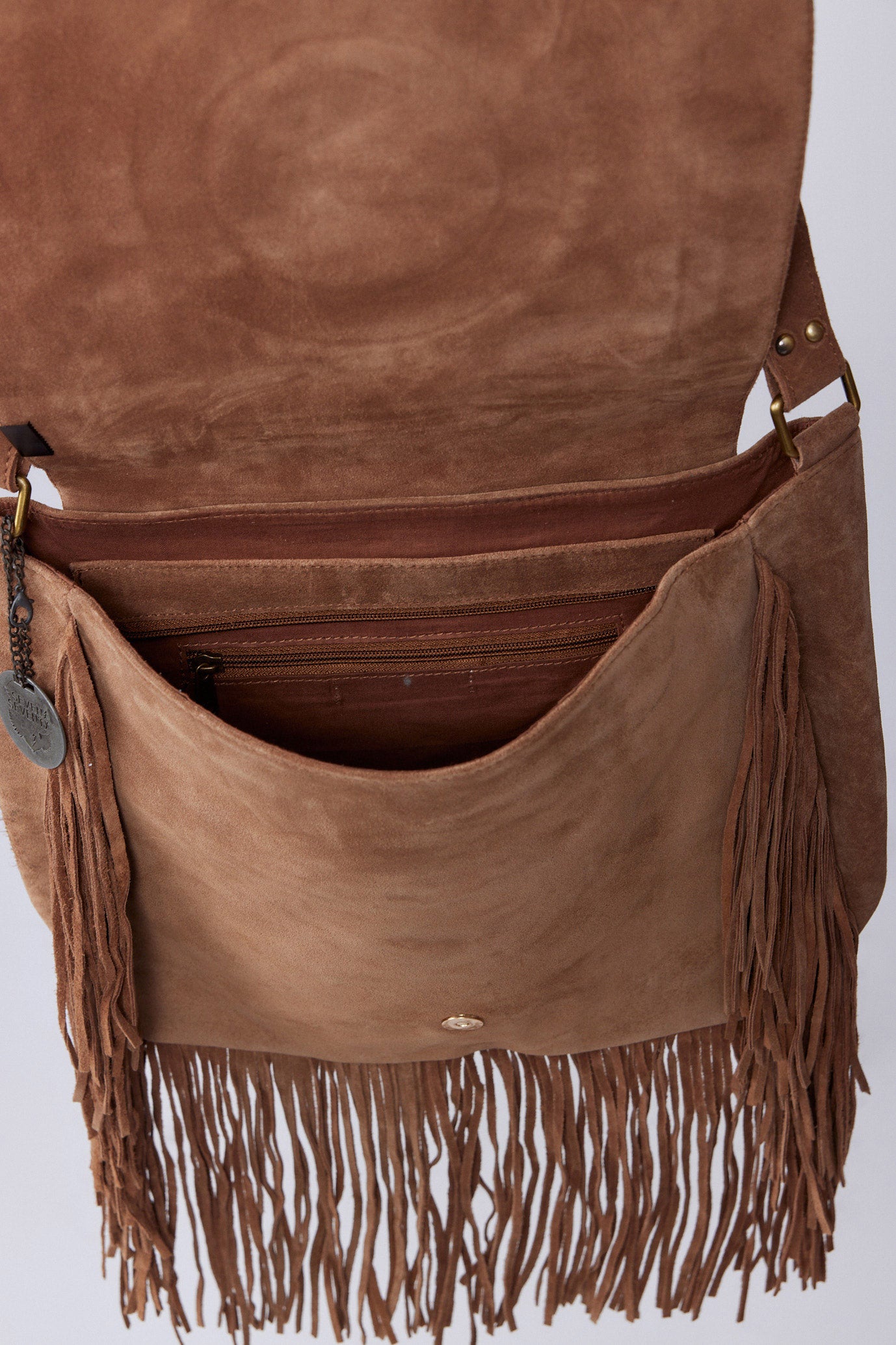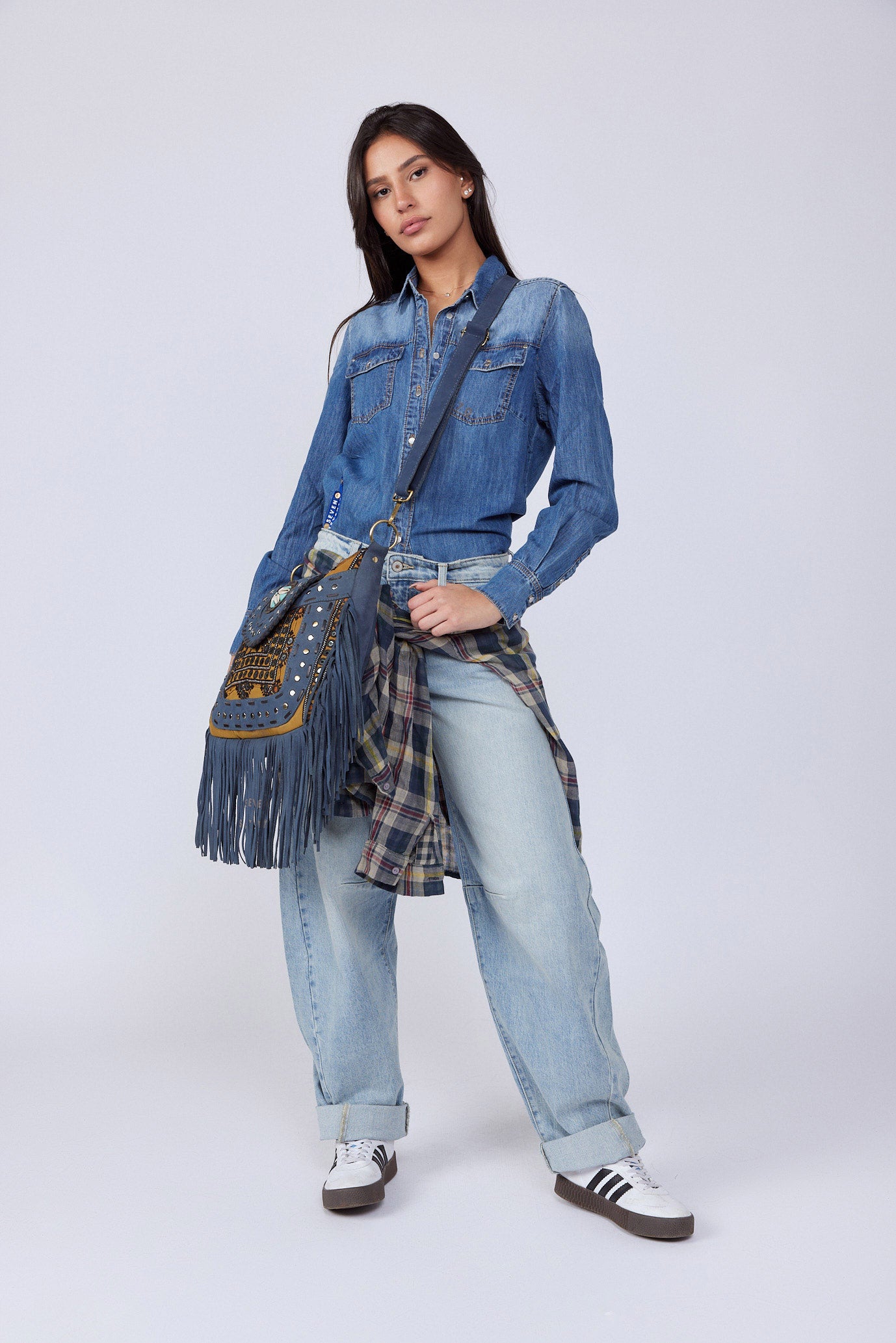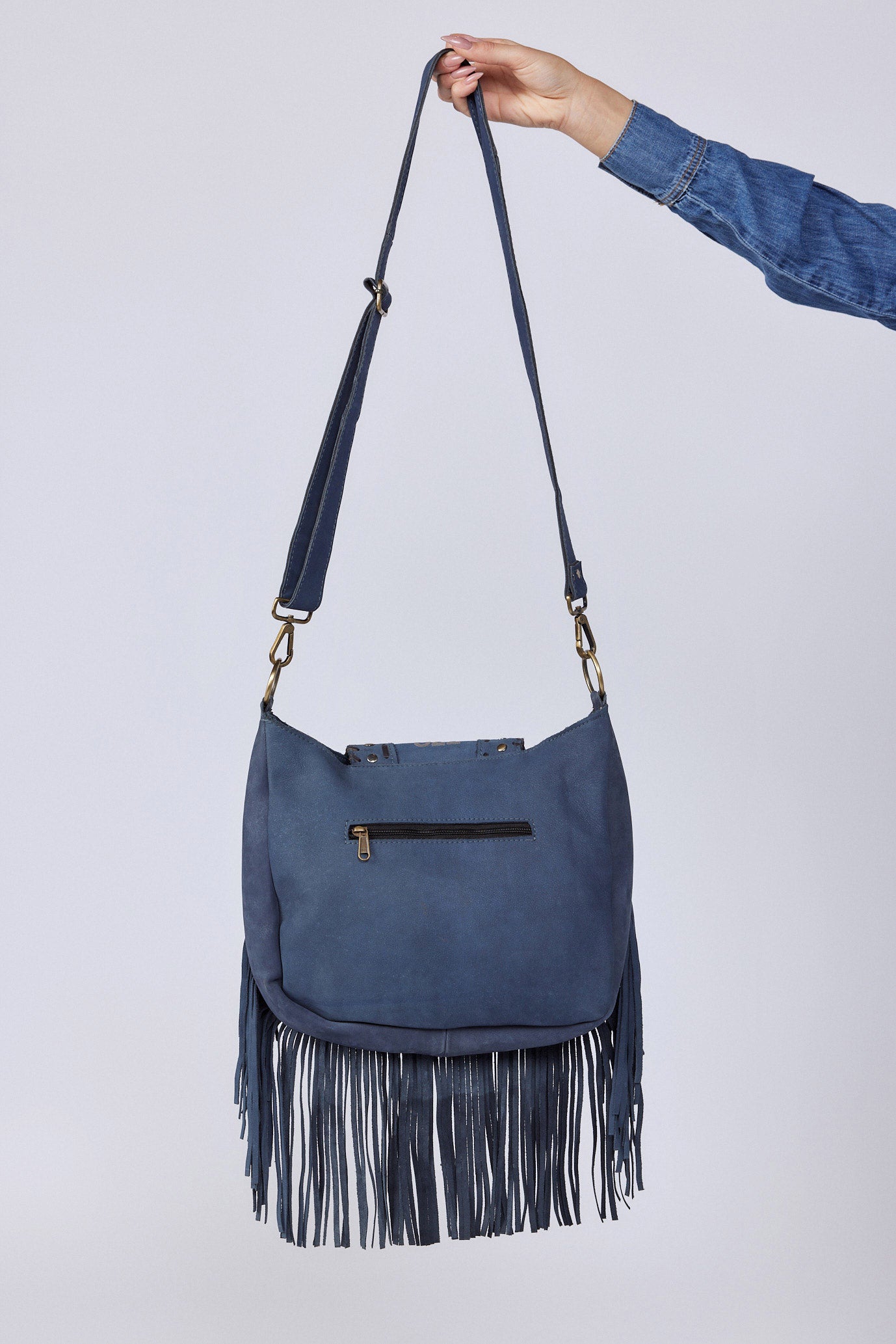 תיק צד מעור אמיתי פרנזים וניטים SHELL