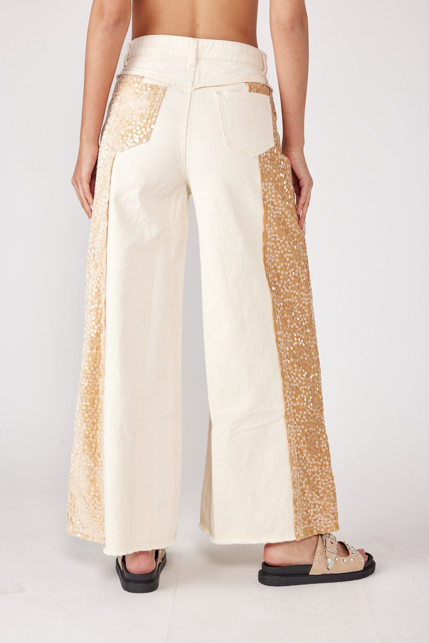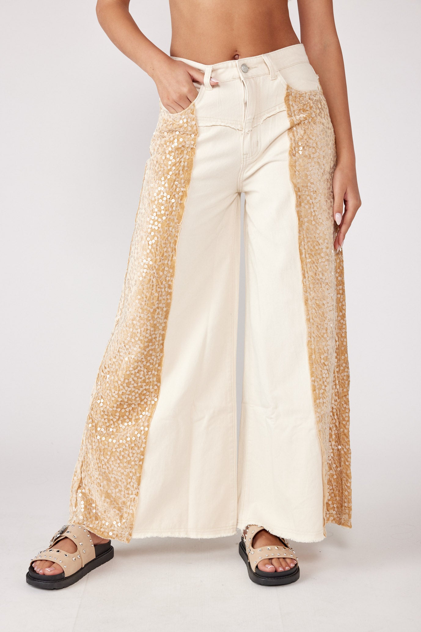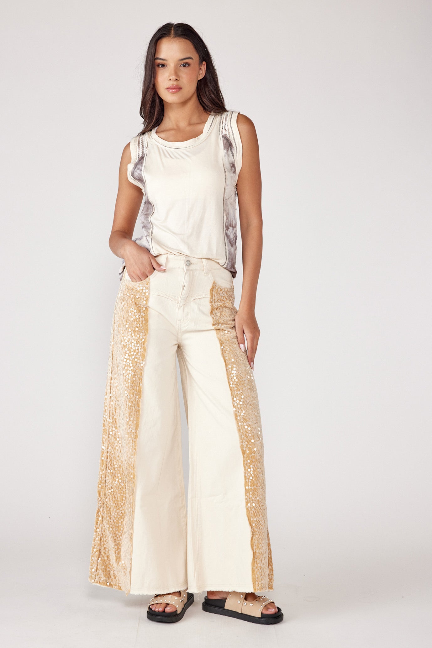 מכנסיים מתרחבים שילוב פייטים STREET GLAM