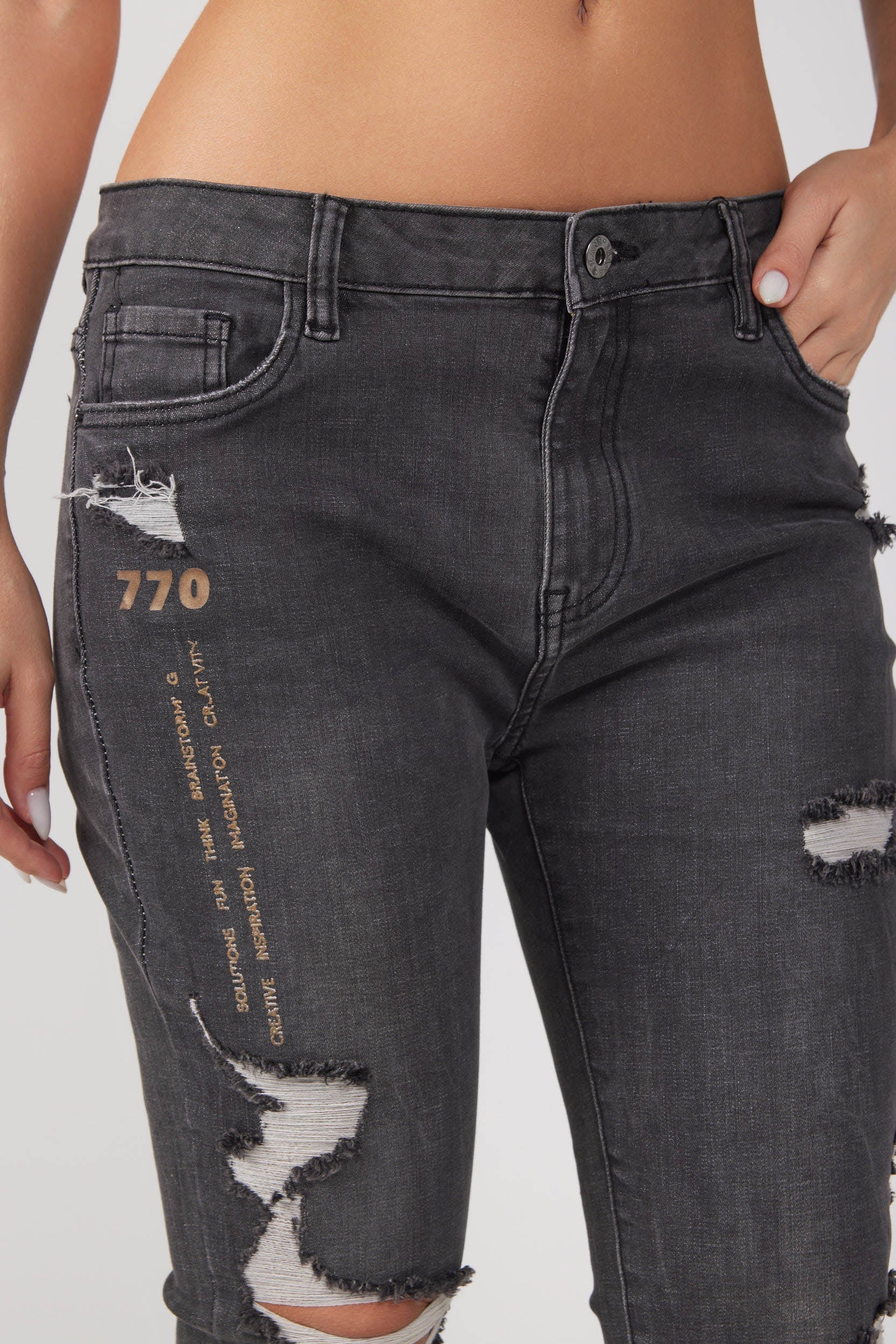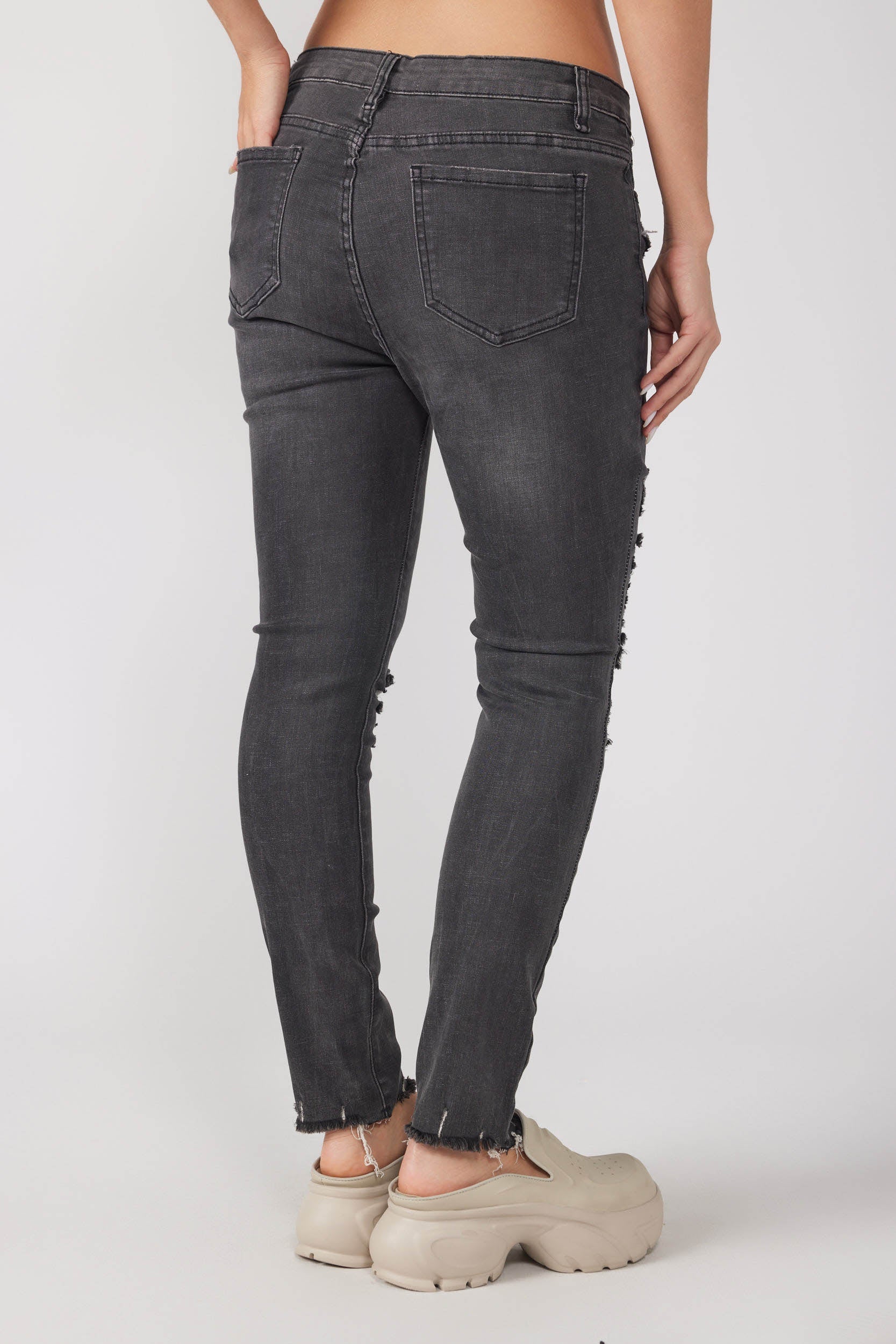 מכנסי ג'ינס בגזרת סקיני בד ג'ינס עם לייקרה קרעים משולבים בגזרה מידות : היקף מותניים בס"מ S: 70-78 M : 72-80 L : 84-96