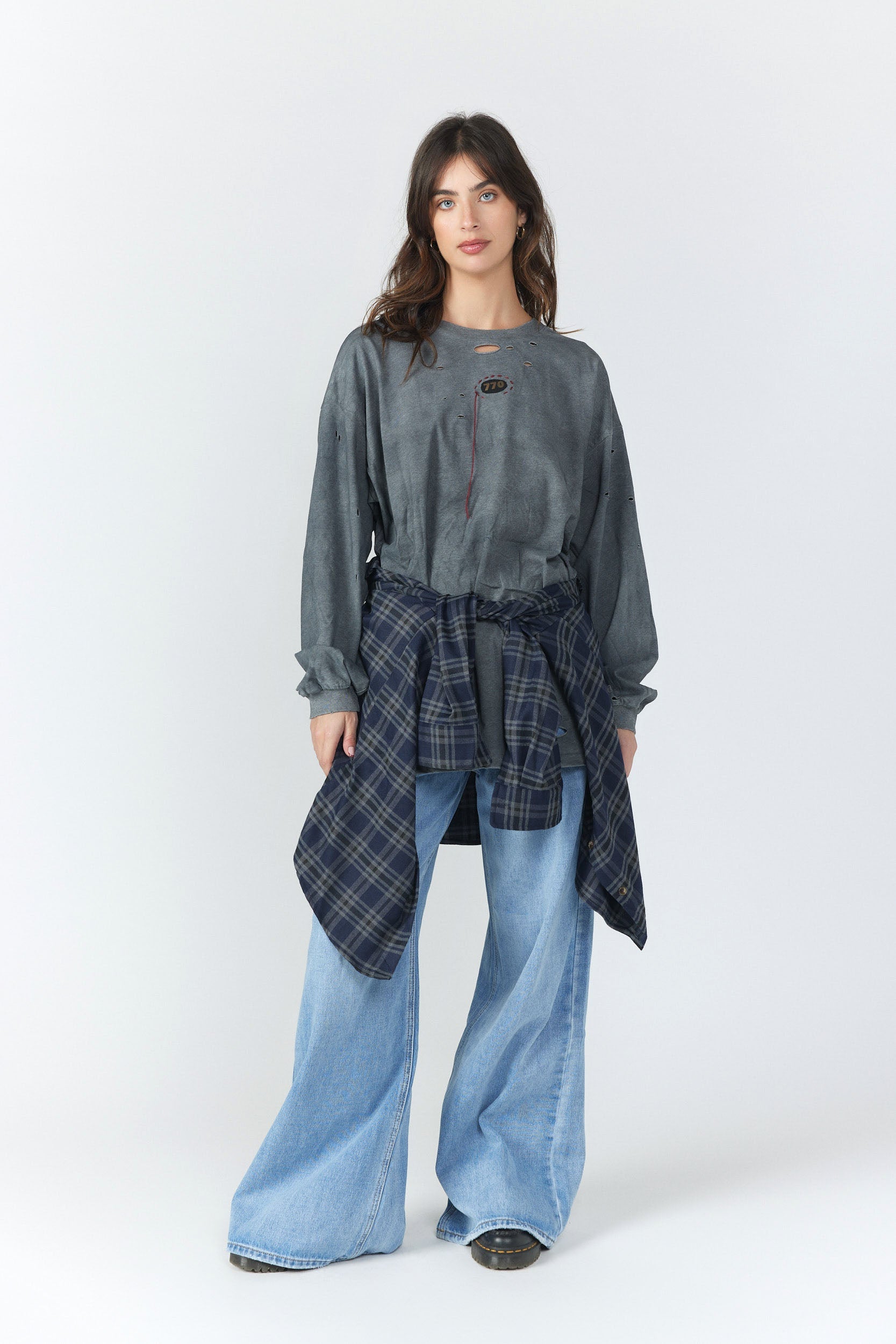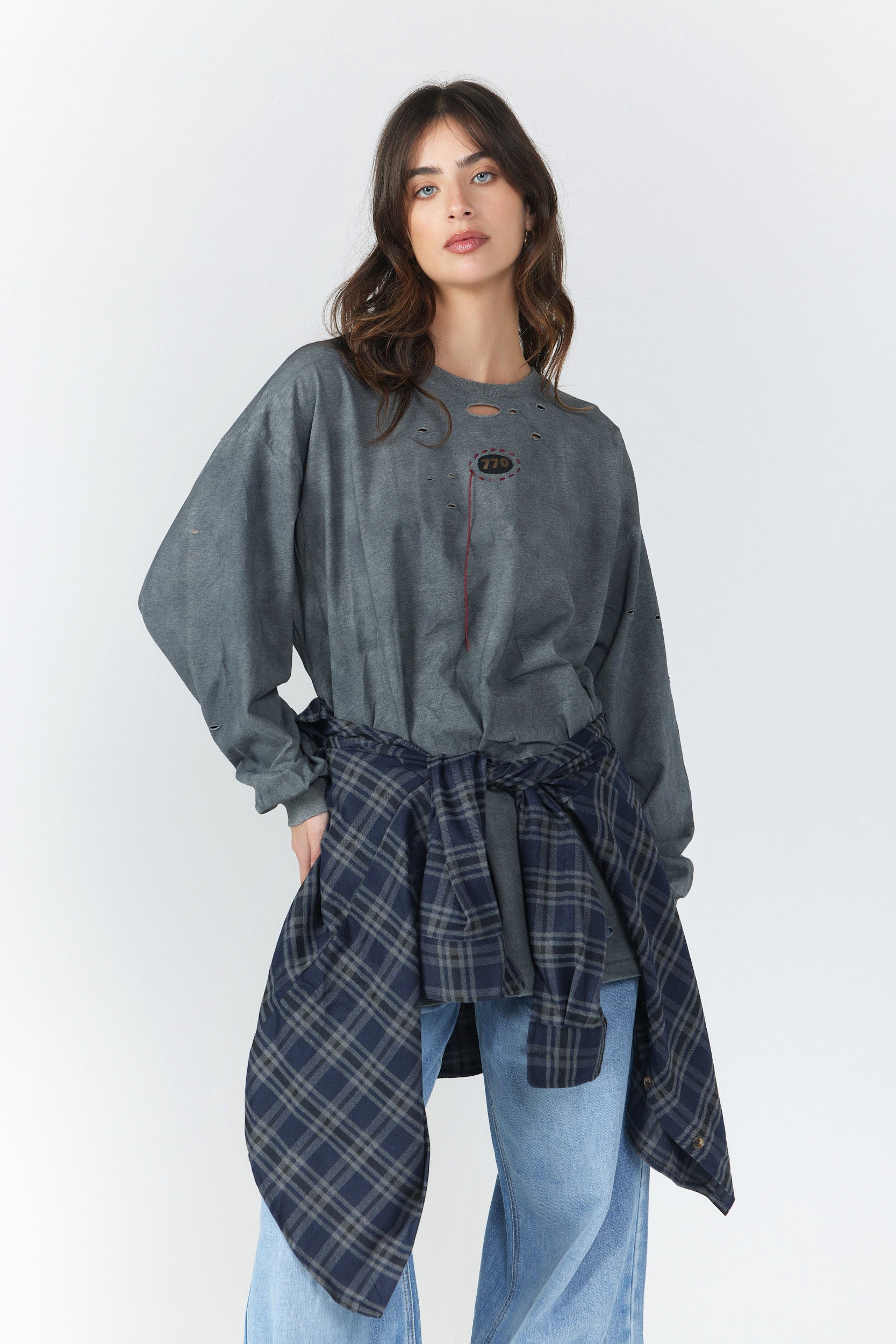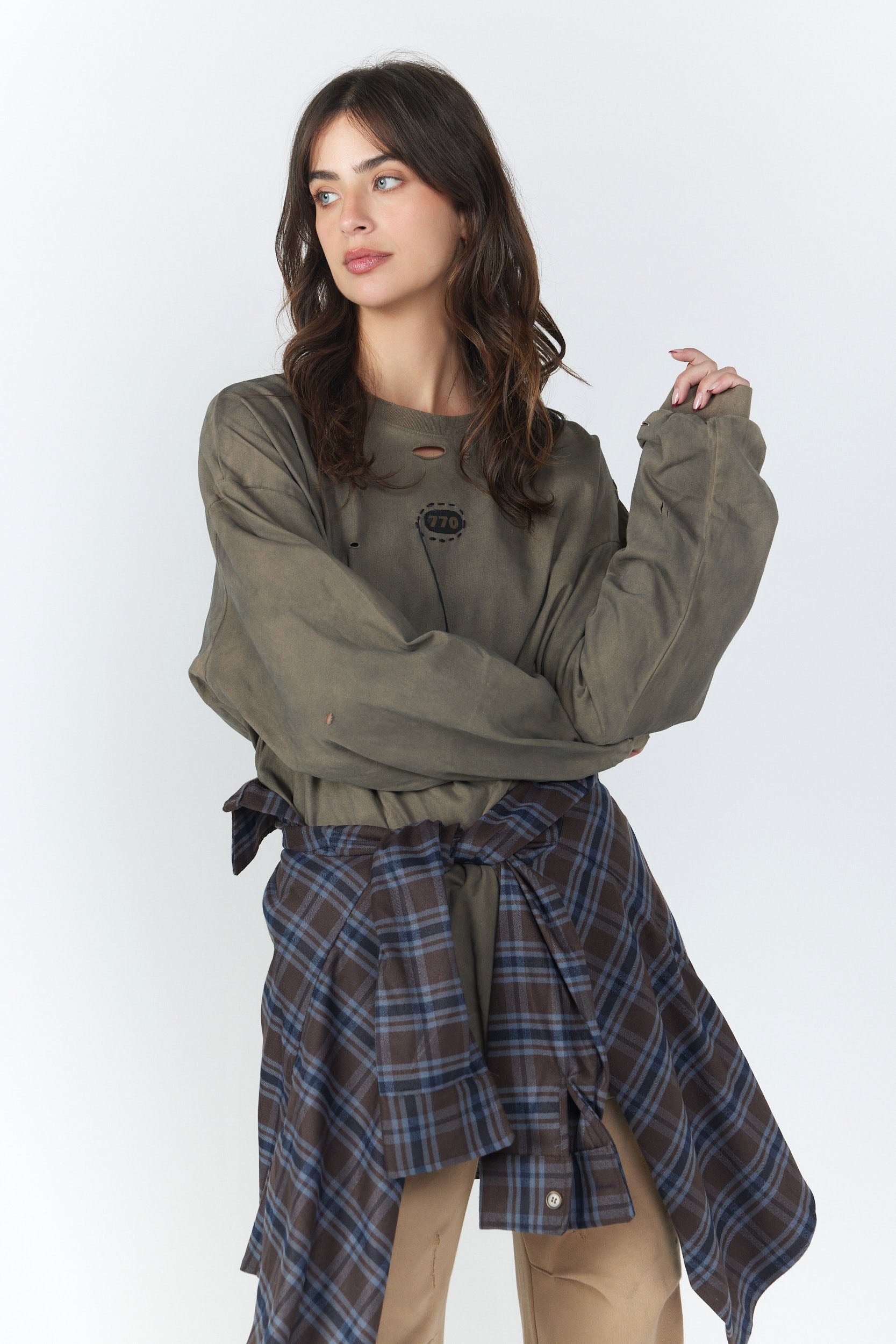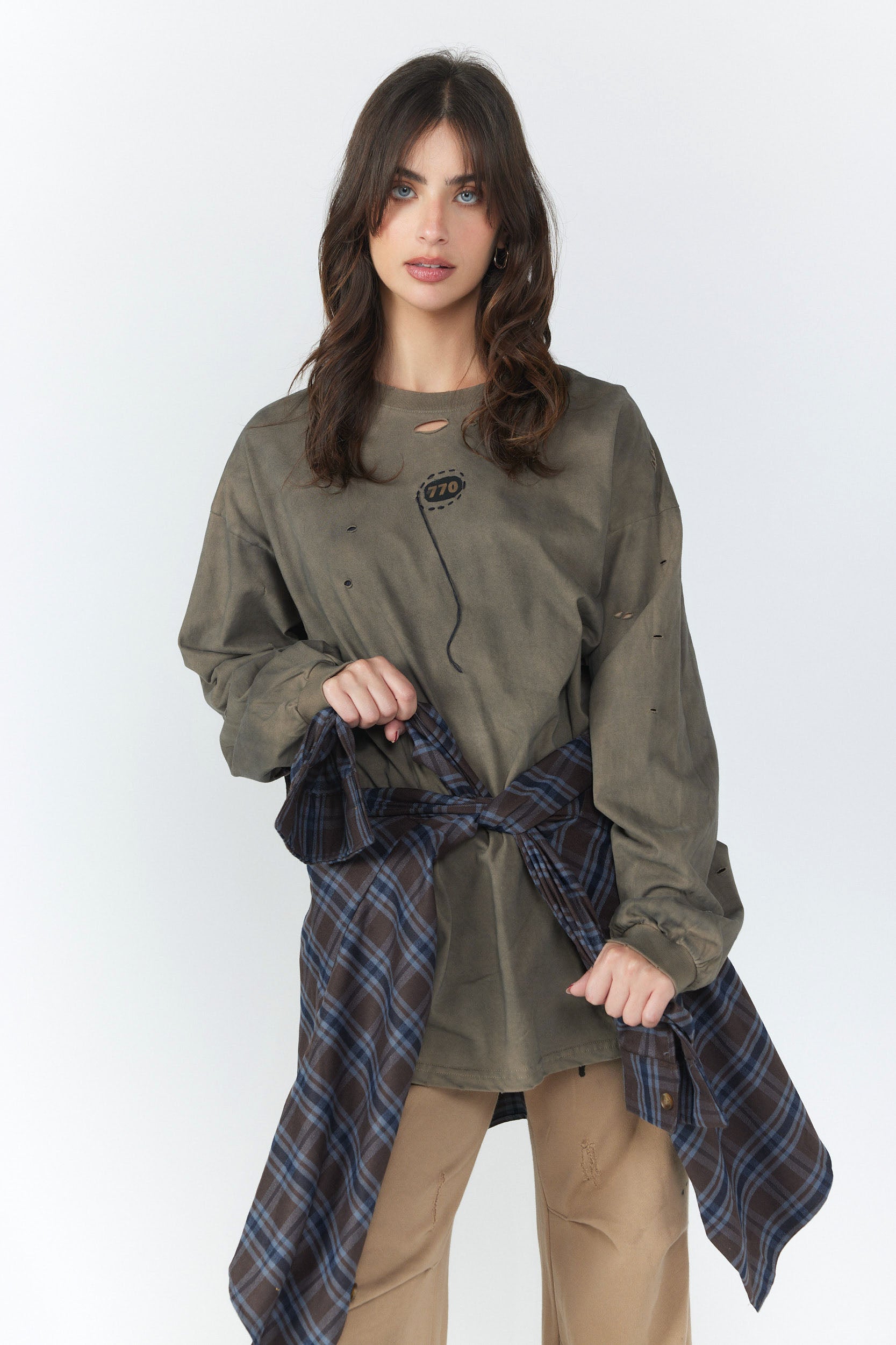 חולצת קשירה ארוכה שילוב 770