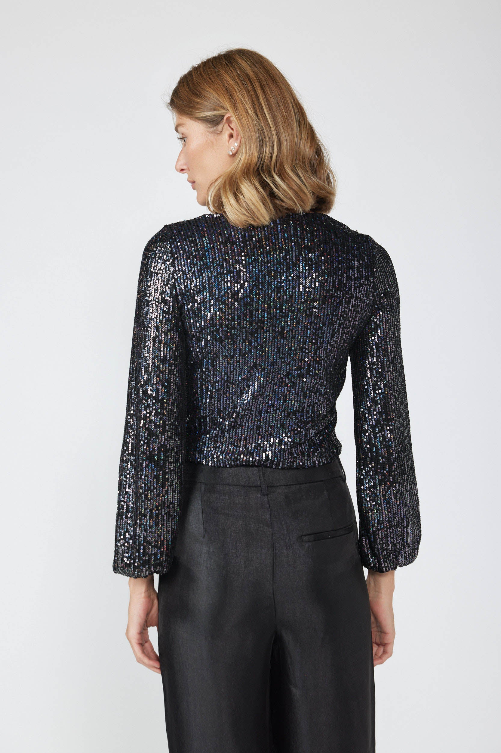 חולצה בגזרת קרופ כל הבד משובץ בפייטים בטנת כותנה עדינה בד נמתח קלות ONESIZE היקף חזה לפני מתיחה בס"מ 100