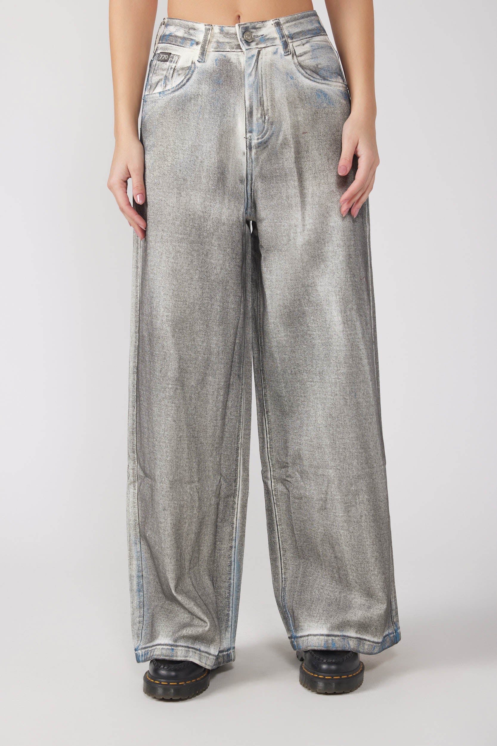 מכנסי ג'ינס ווש בגזרה ישרה ורחבה 770