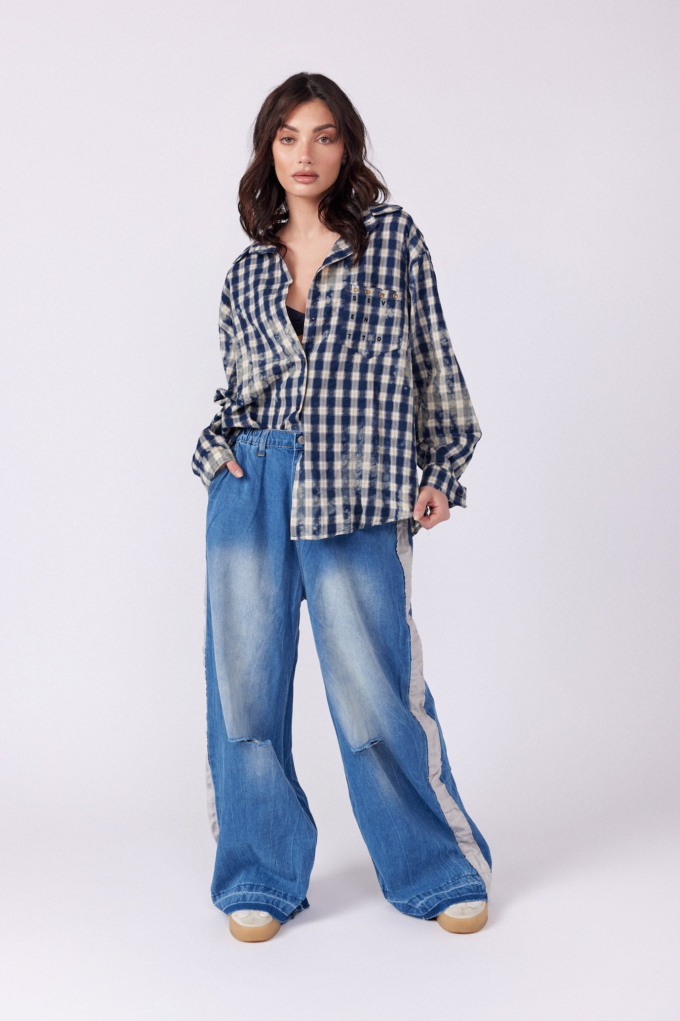 מכנסי ג'ינס דק בגזרה רחבה SEVEN