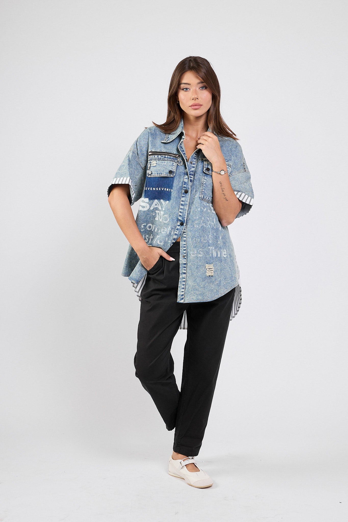מכנסיים מכותנה בגזרת מאם קיפול 770