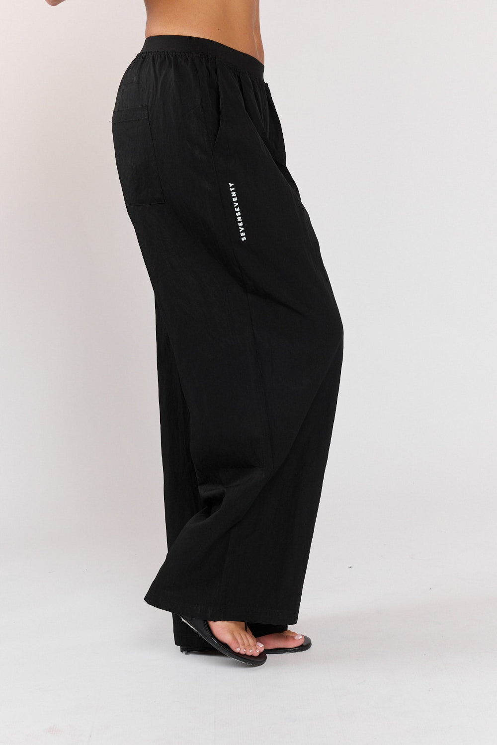 מכנס ויסקוזה בגזרה ישרה, גומי אלסטי במותניים. היקף בס"מ לפני מתיחה
