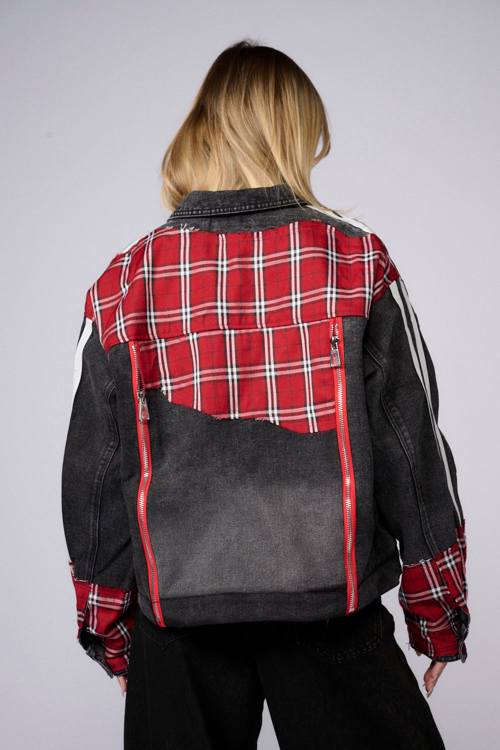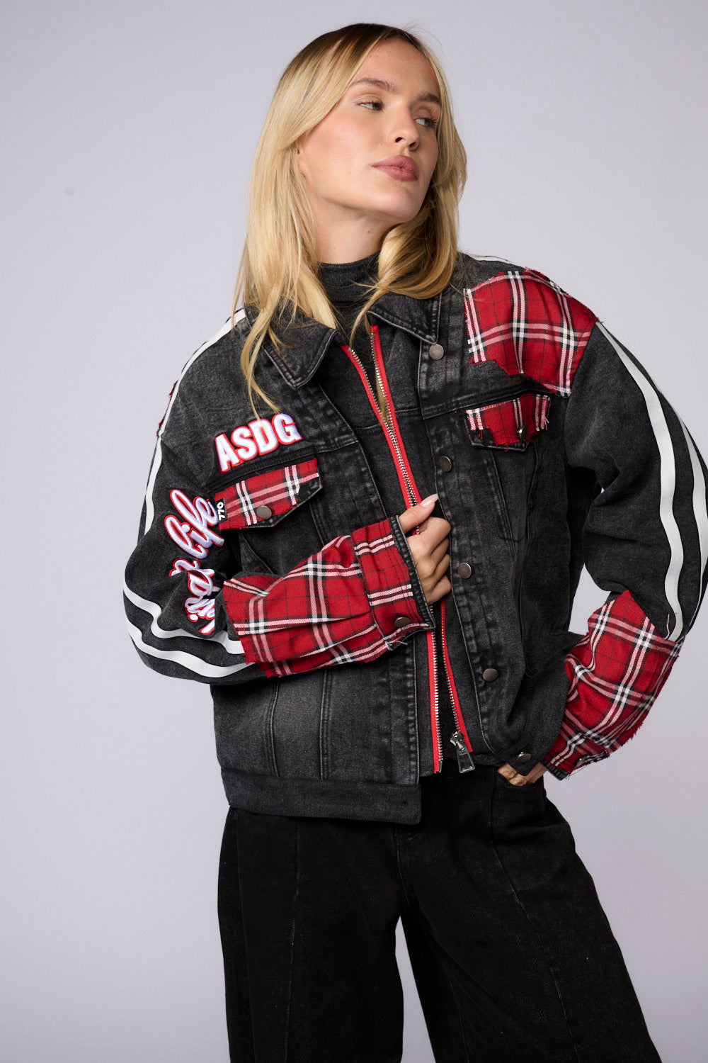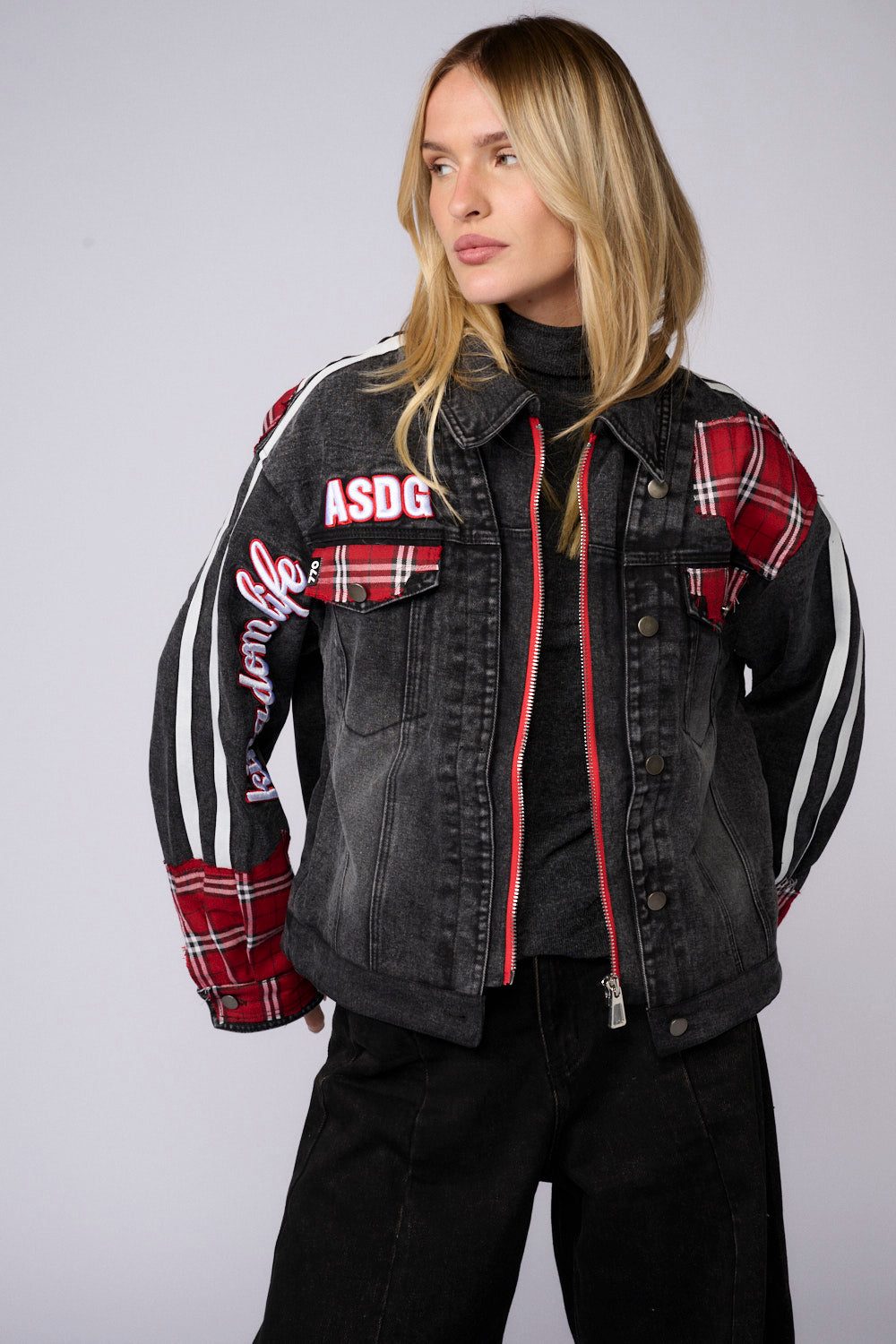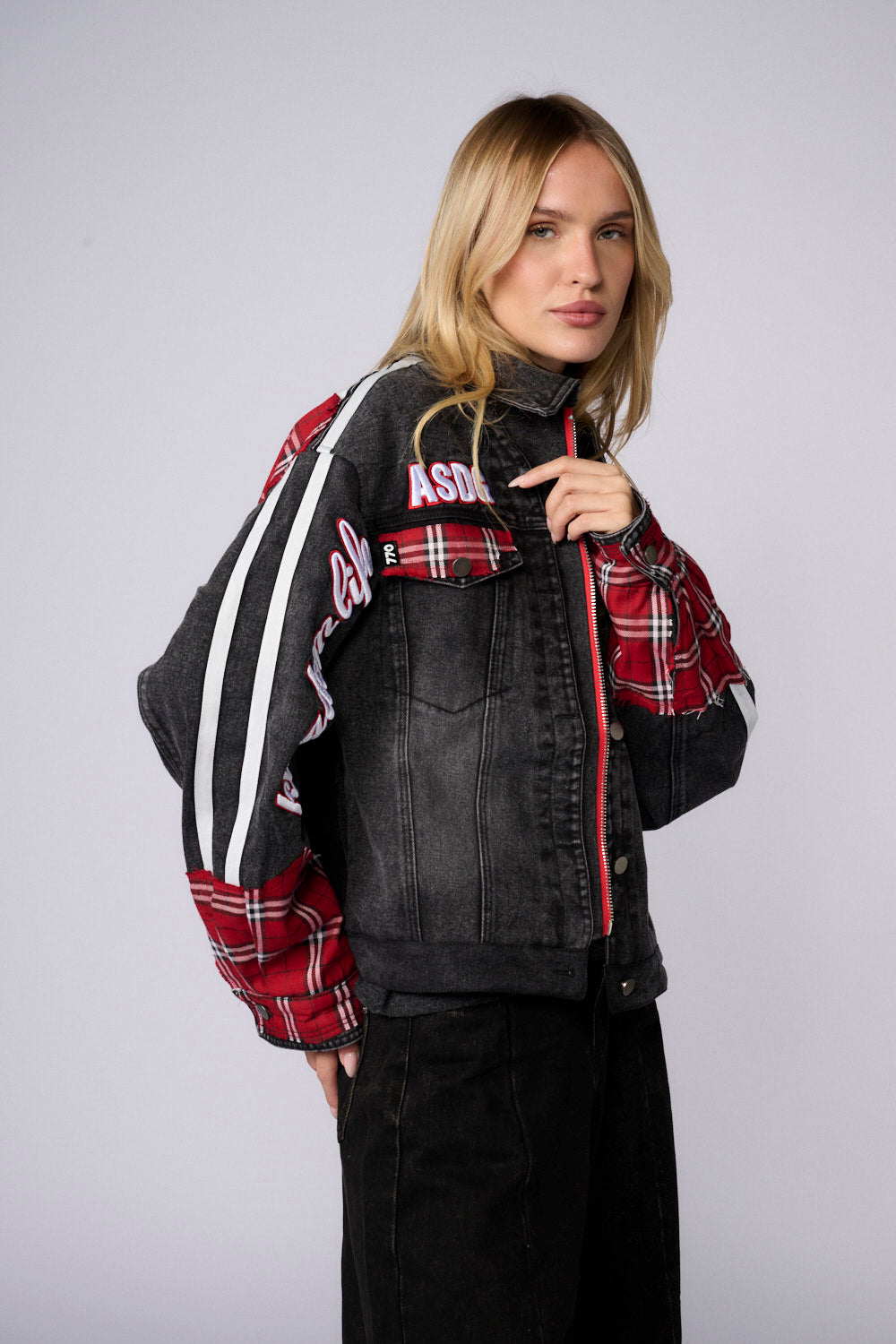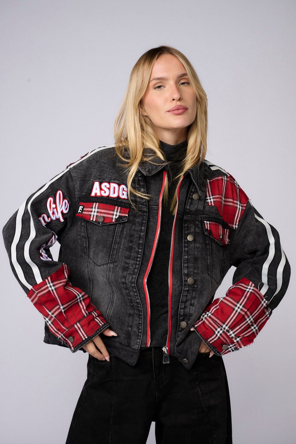 ג'קט ג'ינס ספורטיבי שילוב משובץ