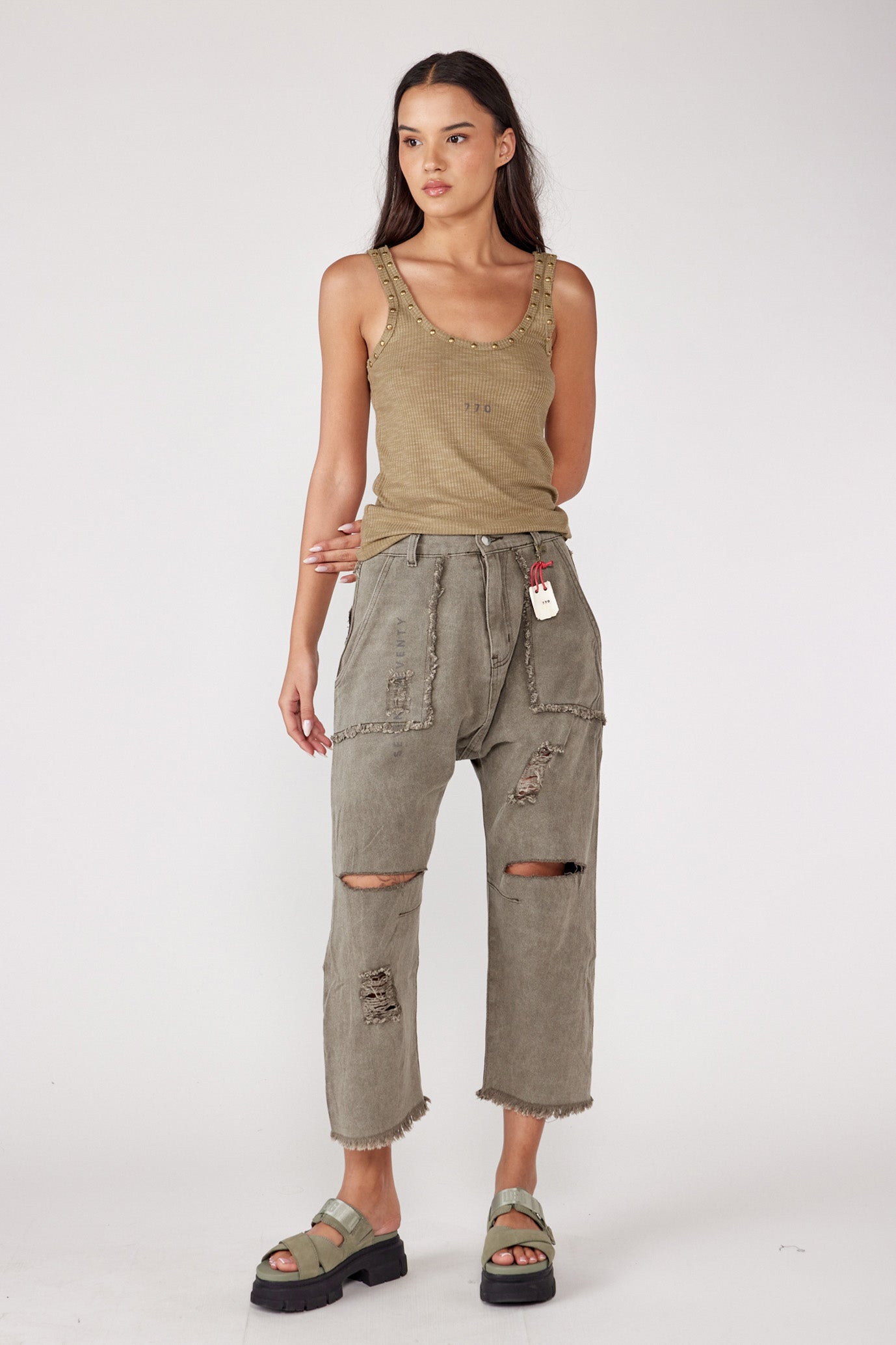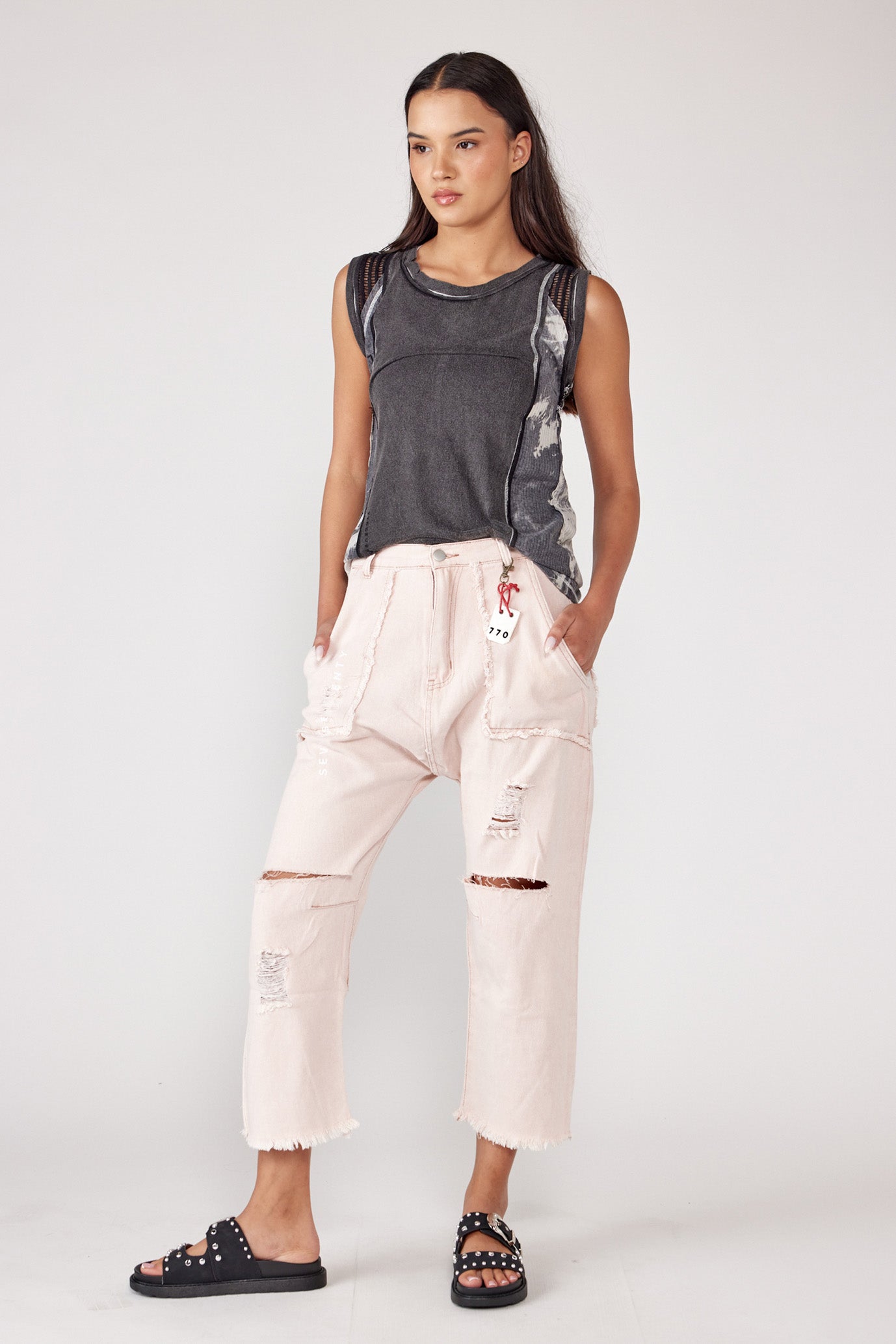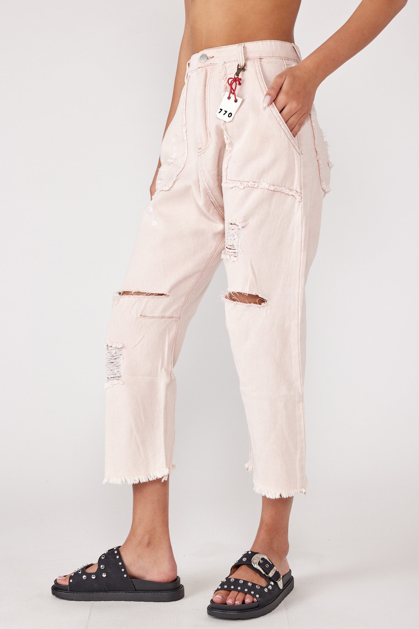 מכנסי ג'ינס 7/8 קרעים STREET LOOK