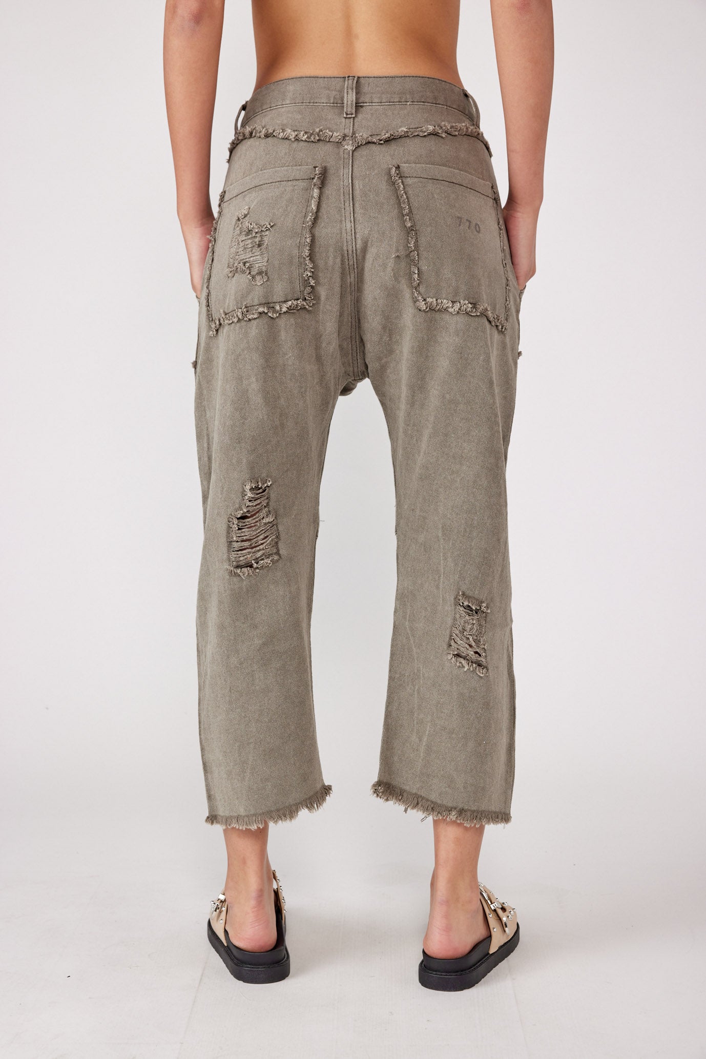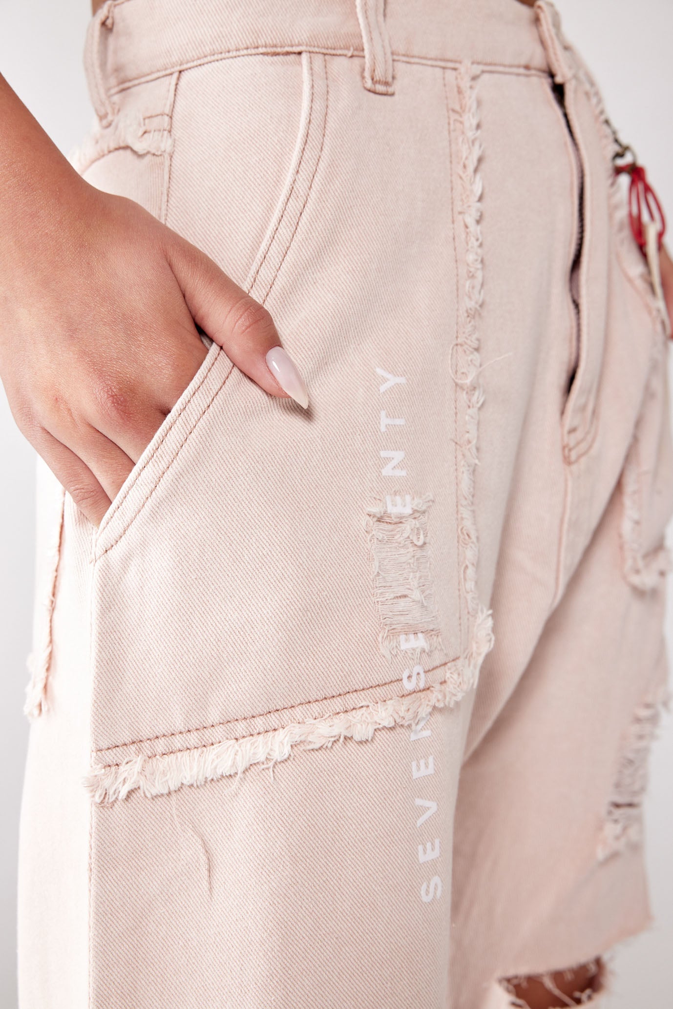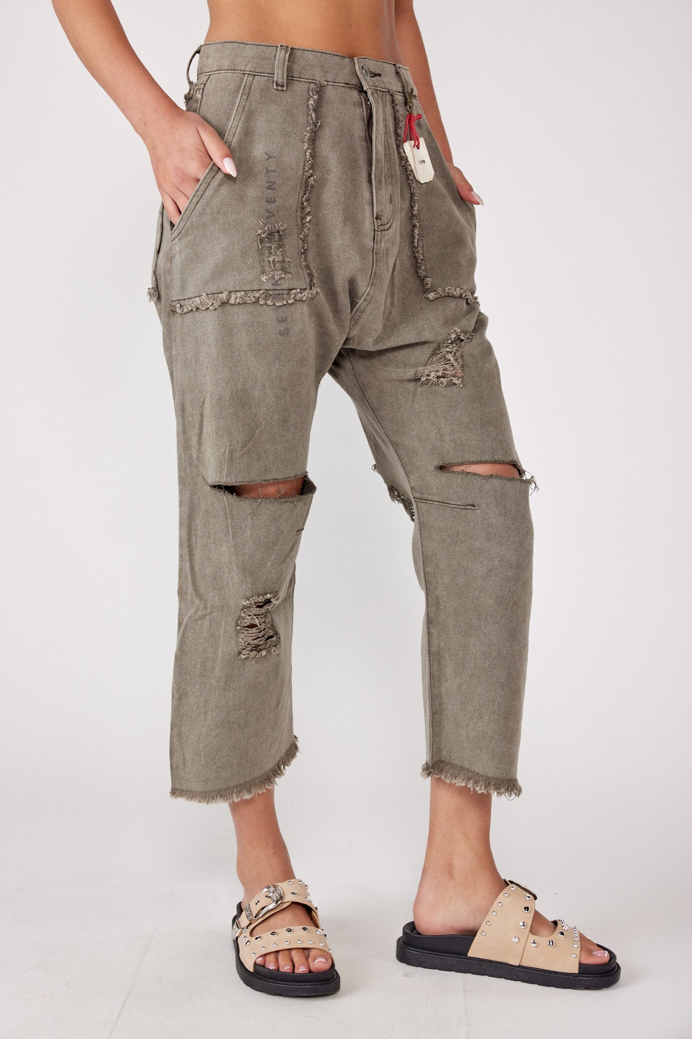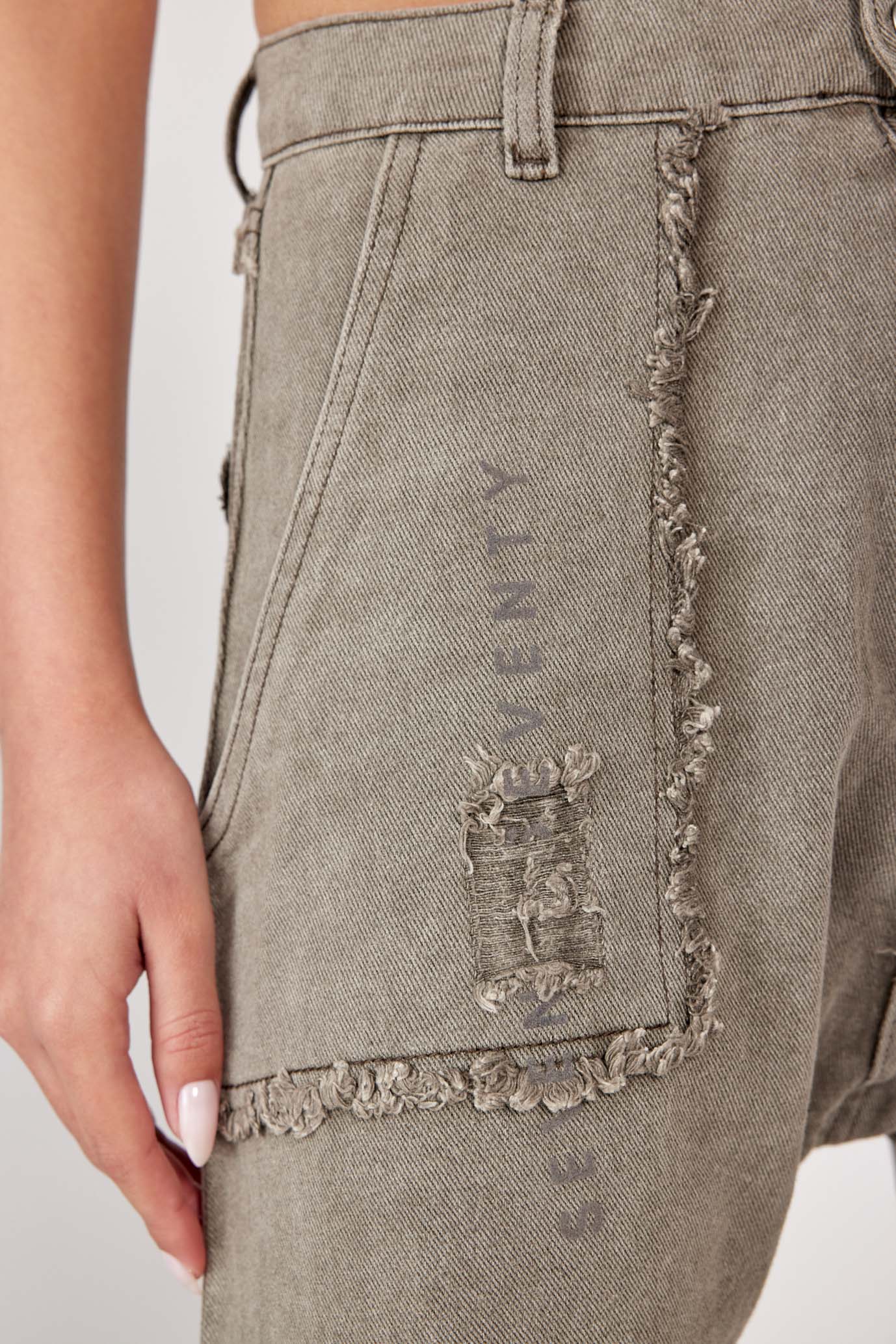 מכנסי ג'ינס בגזרת 7/8 שקי קרעים וקצוות פרומים בד ג'ינס ללא מתיחה מידות : היקף מותניים בס"מ S : 76 M: 80 L : 86