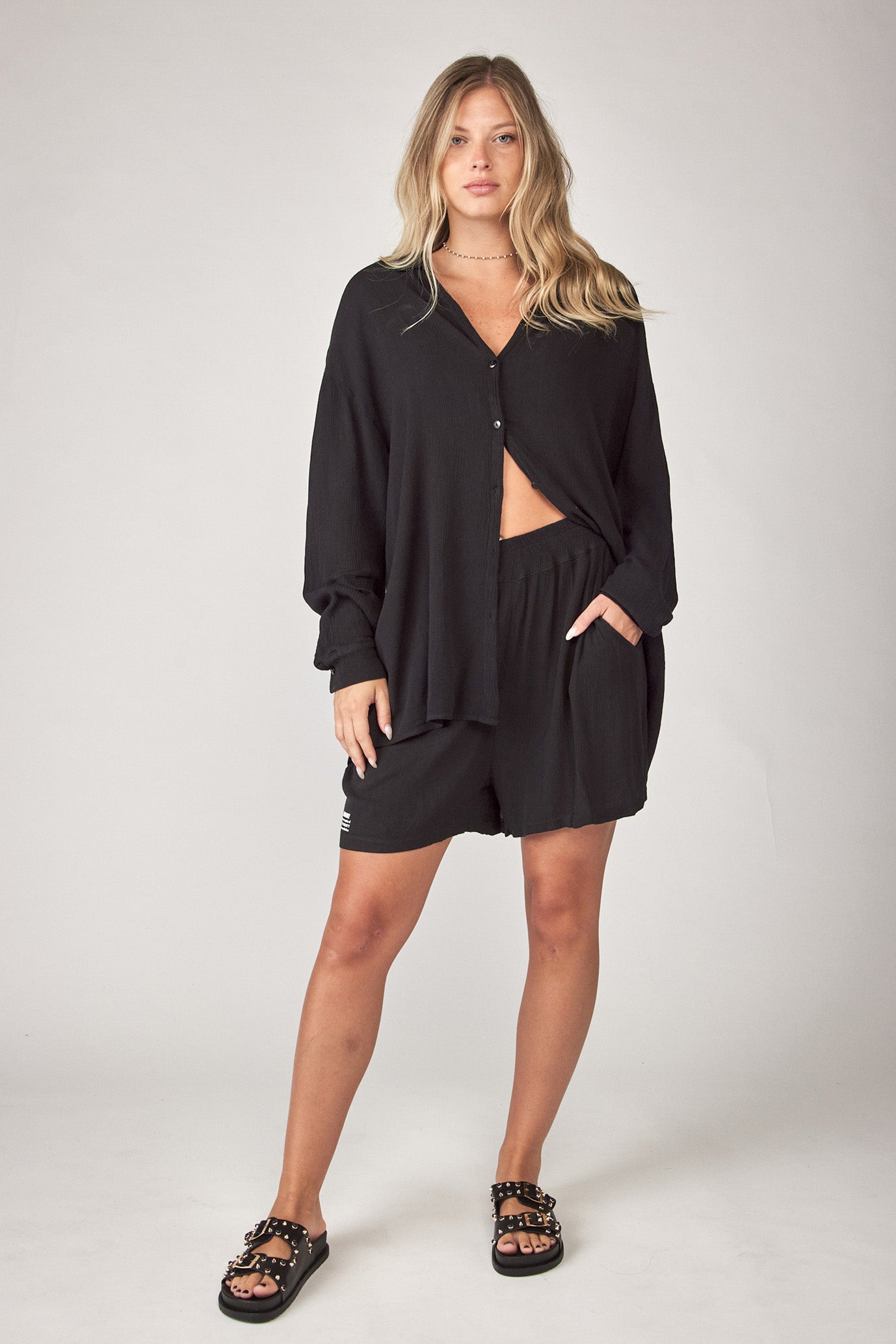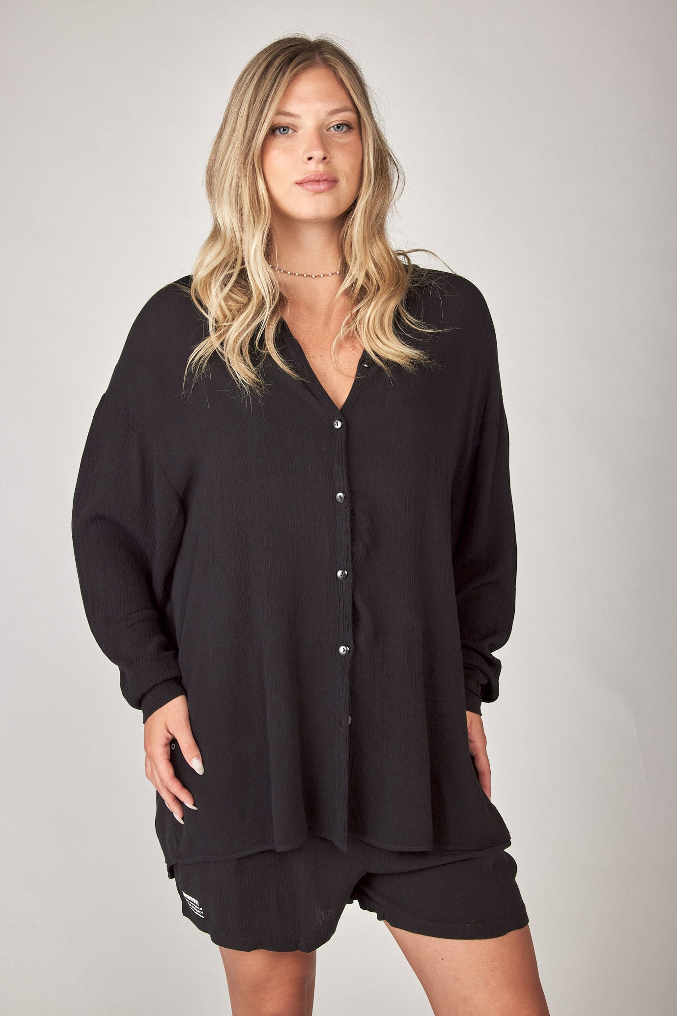סט קרפ מכופתרת ומכנסיים קצרים ATTITUDE