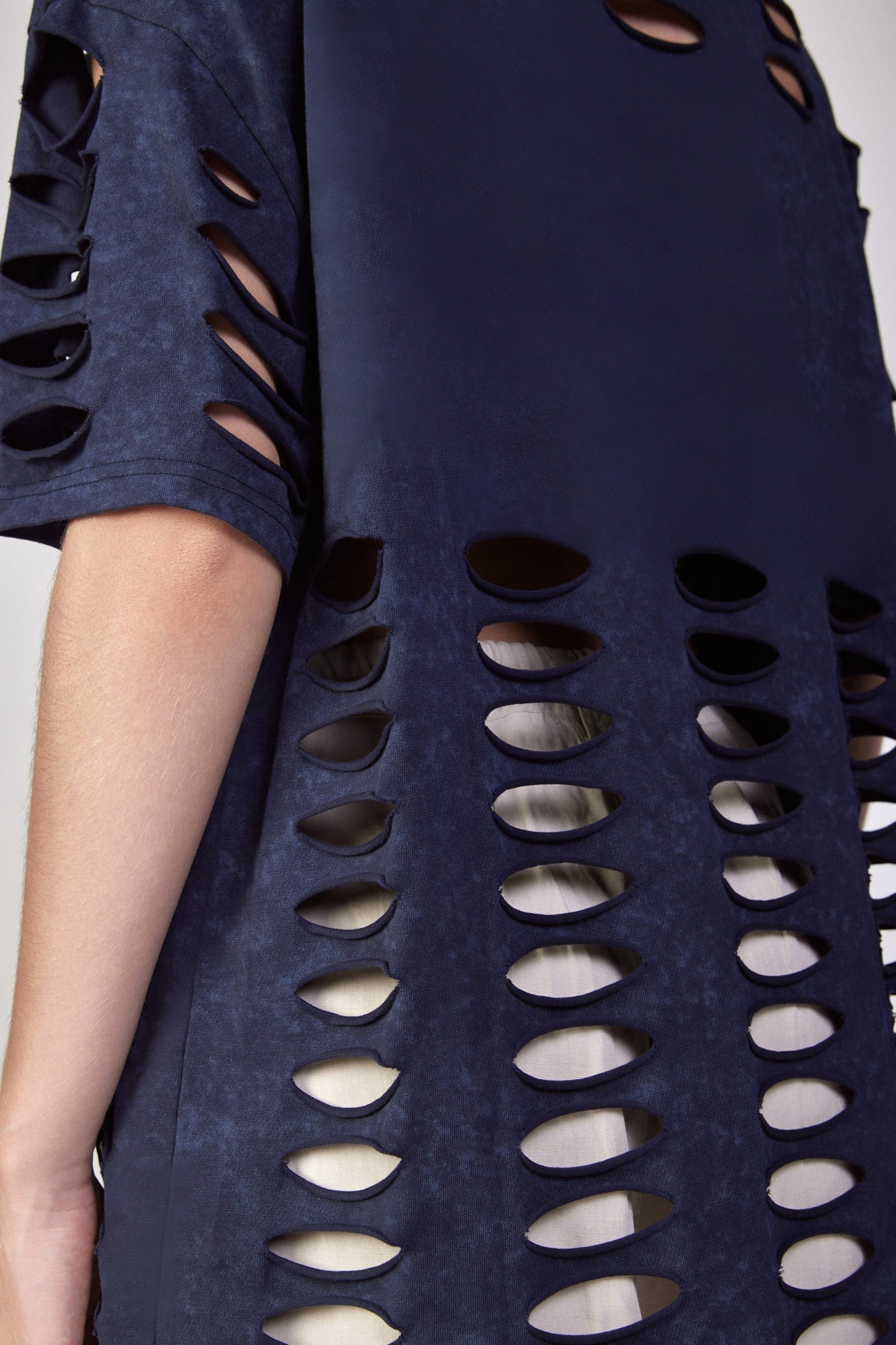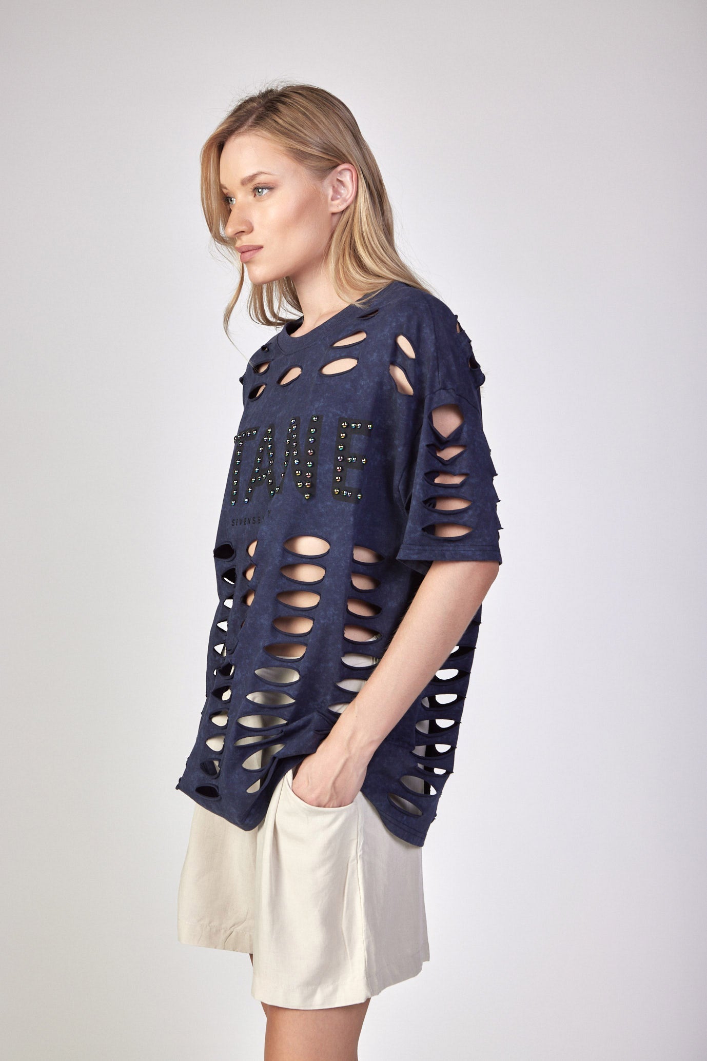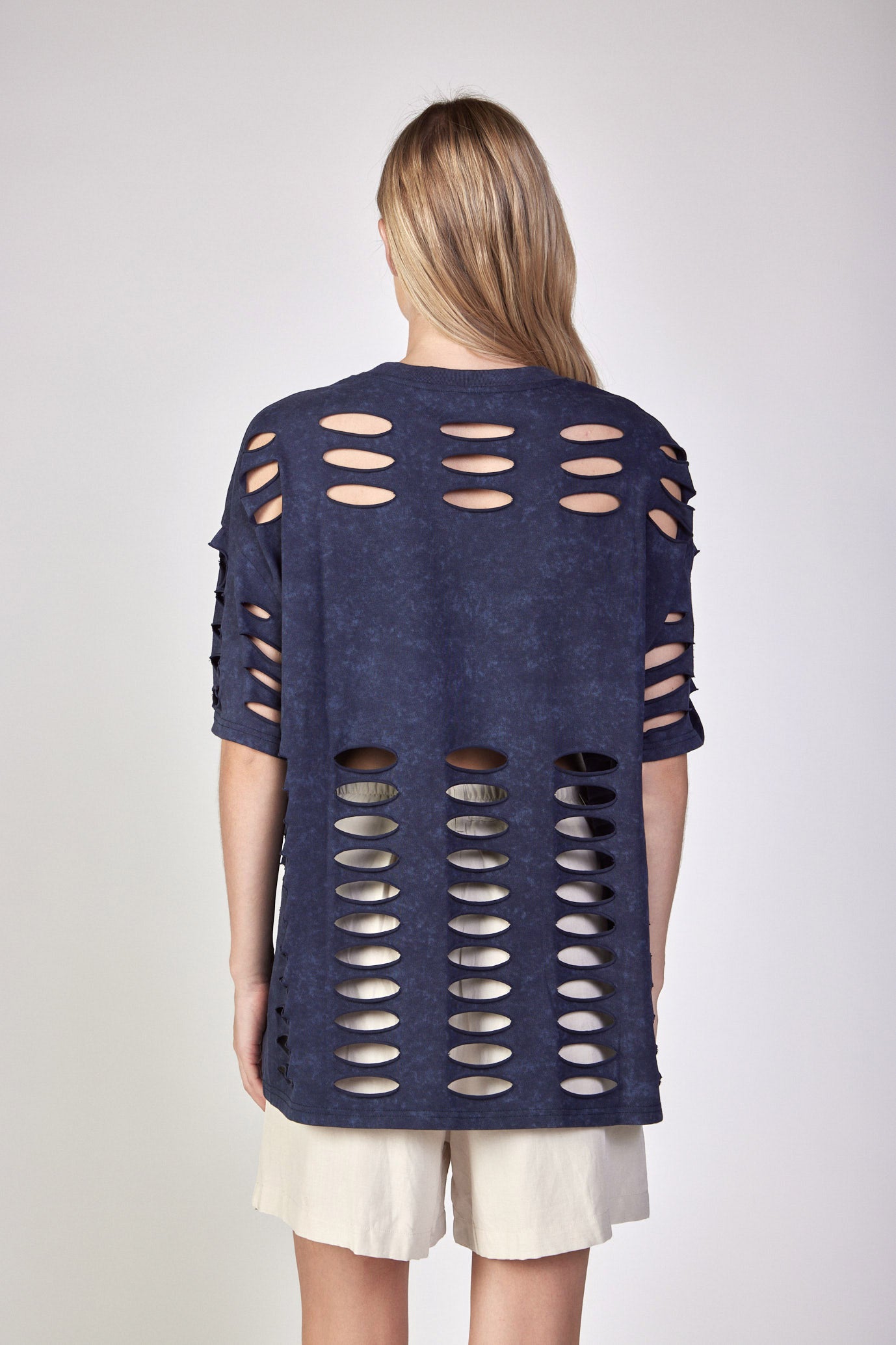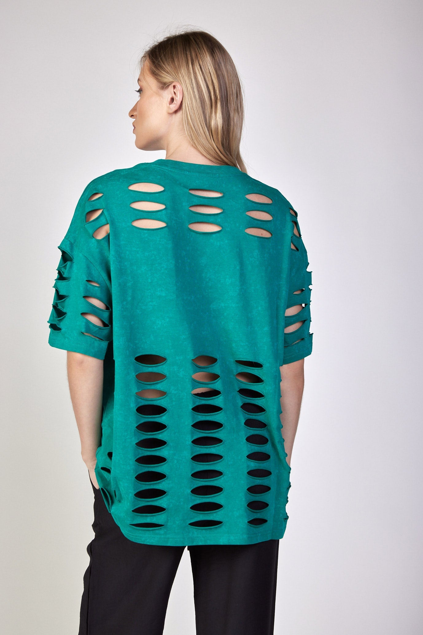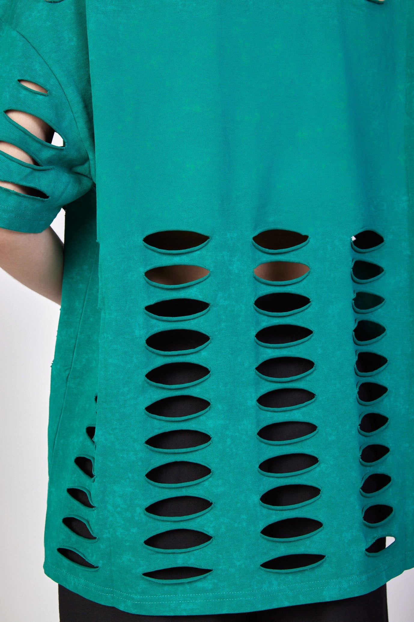 חולצת טי קרעים בגזרת אובר סייז בד כותנה עבה OVER SIZE היקף חזה בס"מ: 168