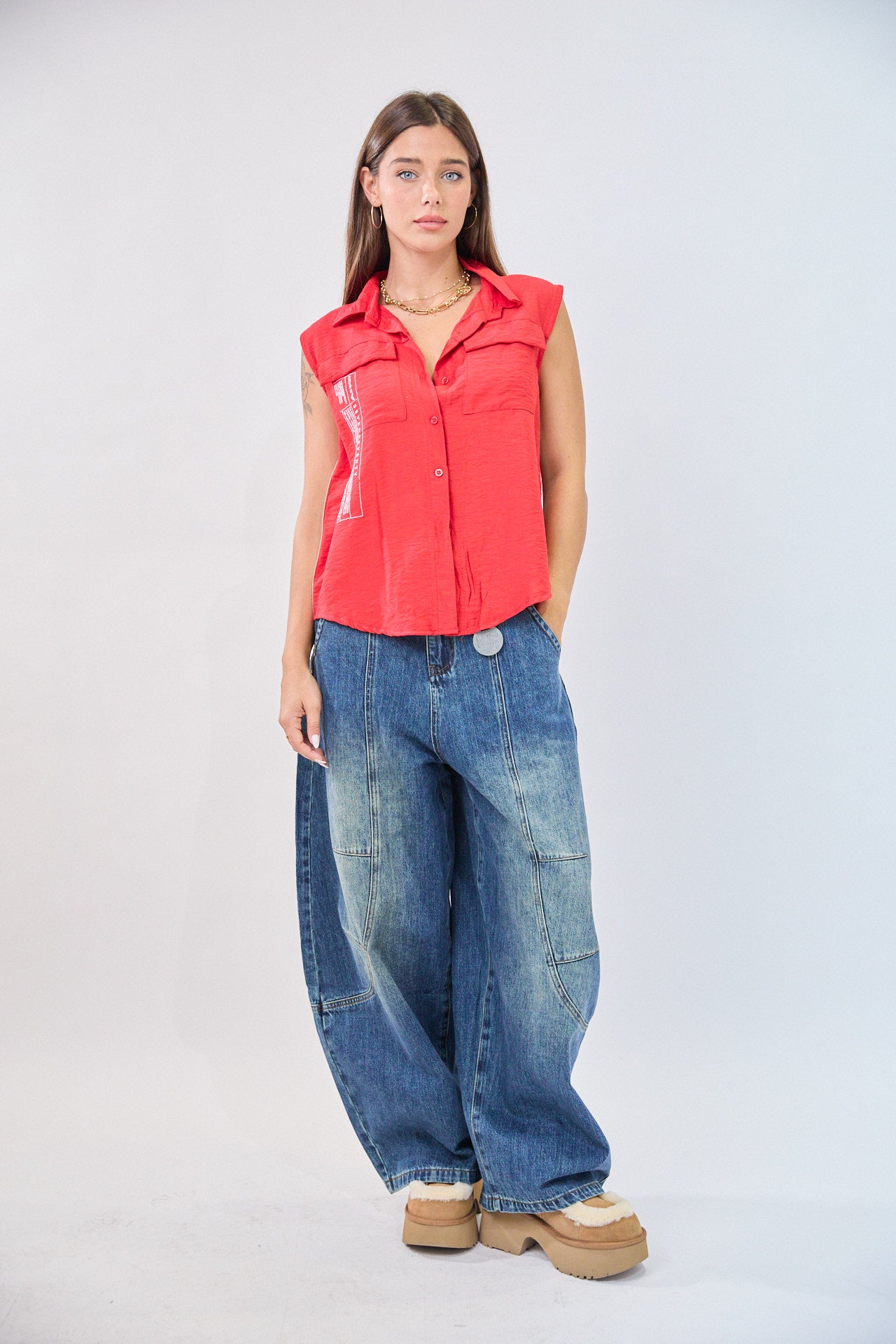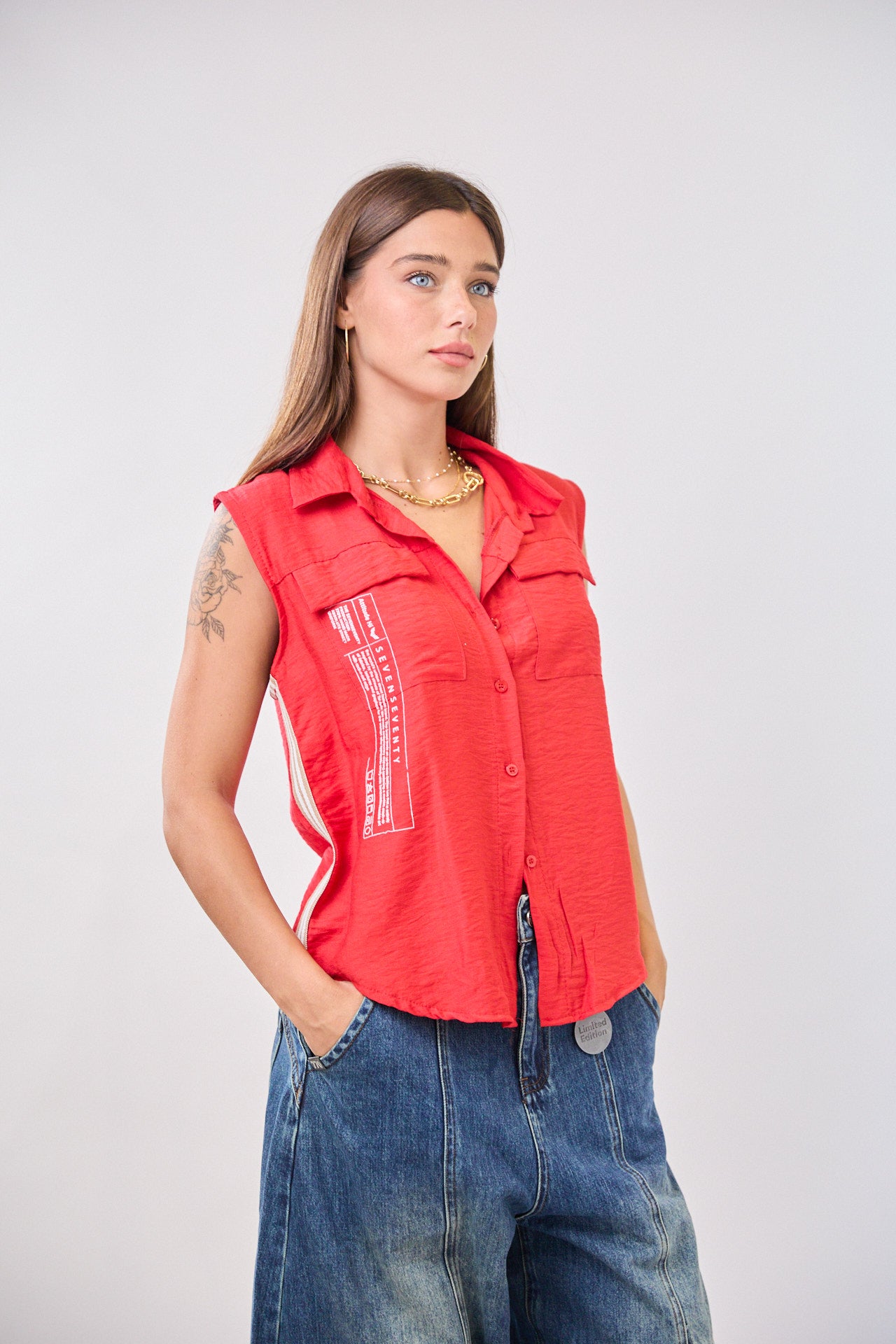 חולצה מכופתרת ללא שרוולים LIMITED