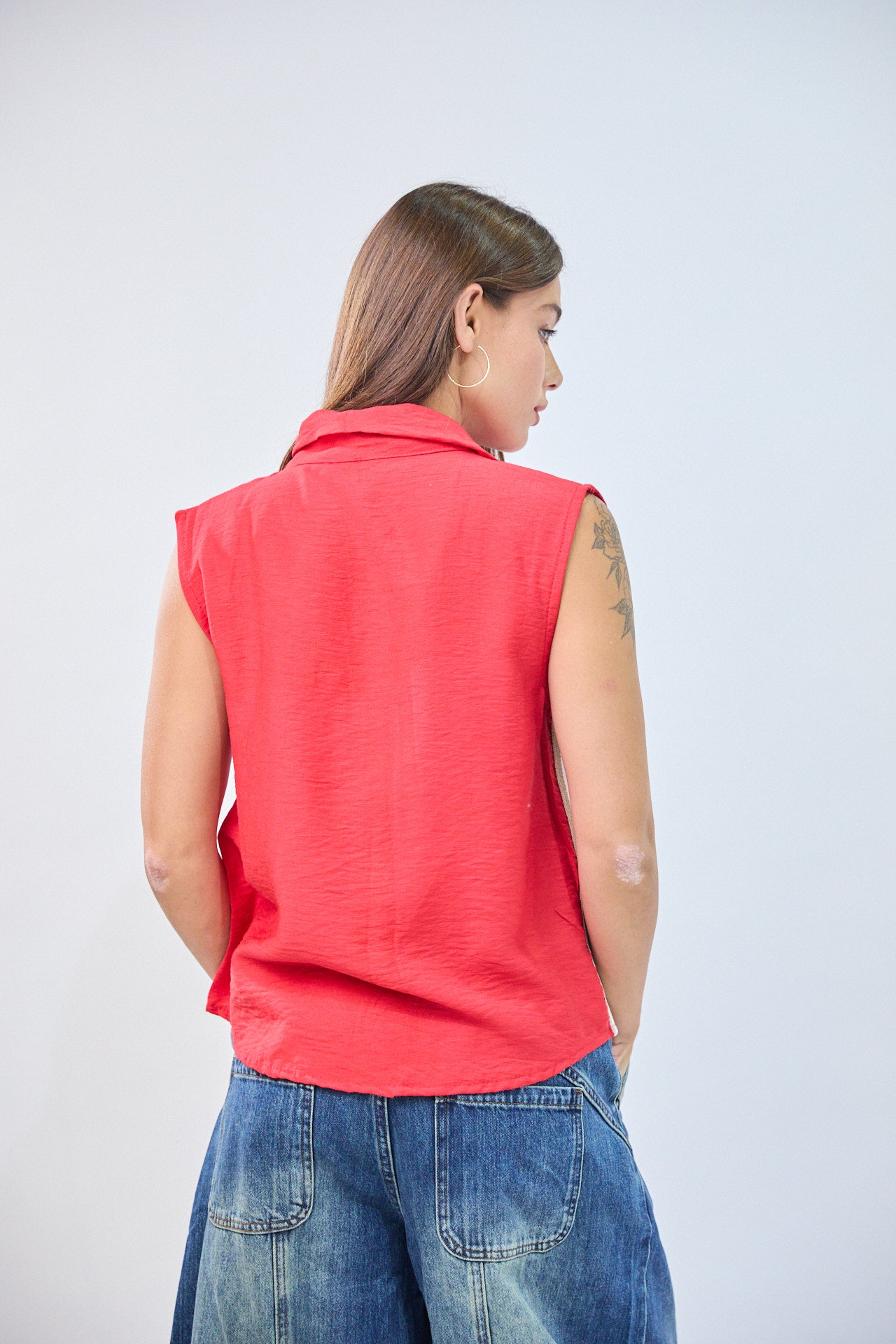 חולצה מכופתרת ללא שרוולים