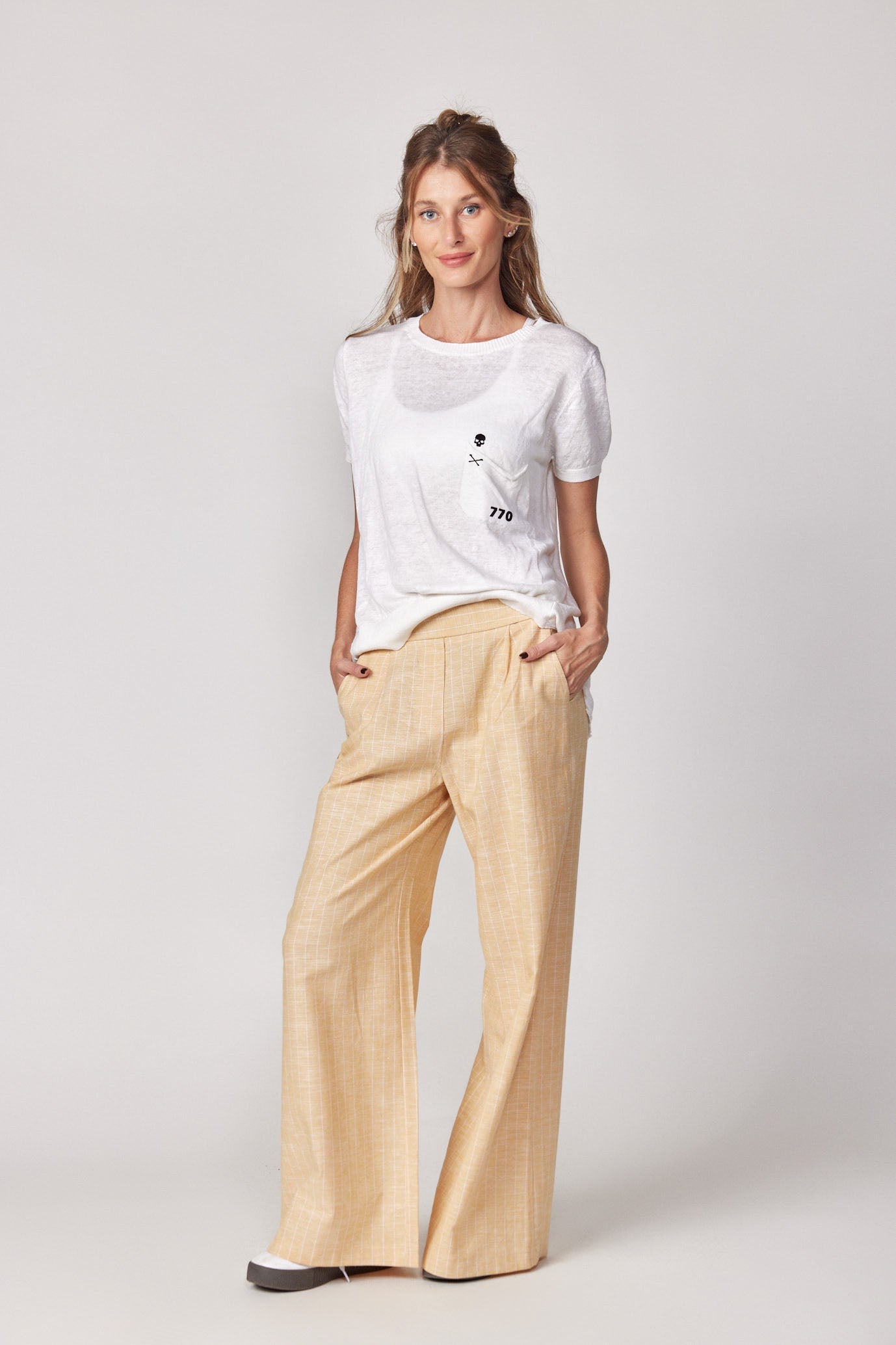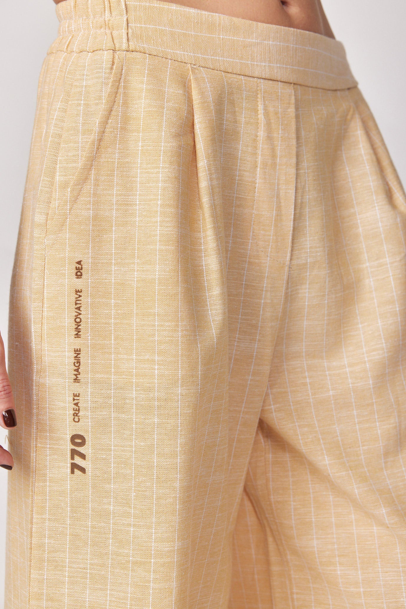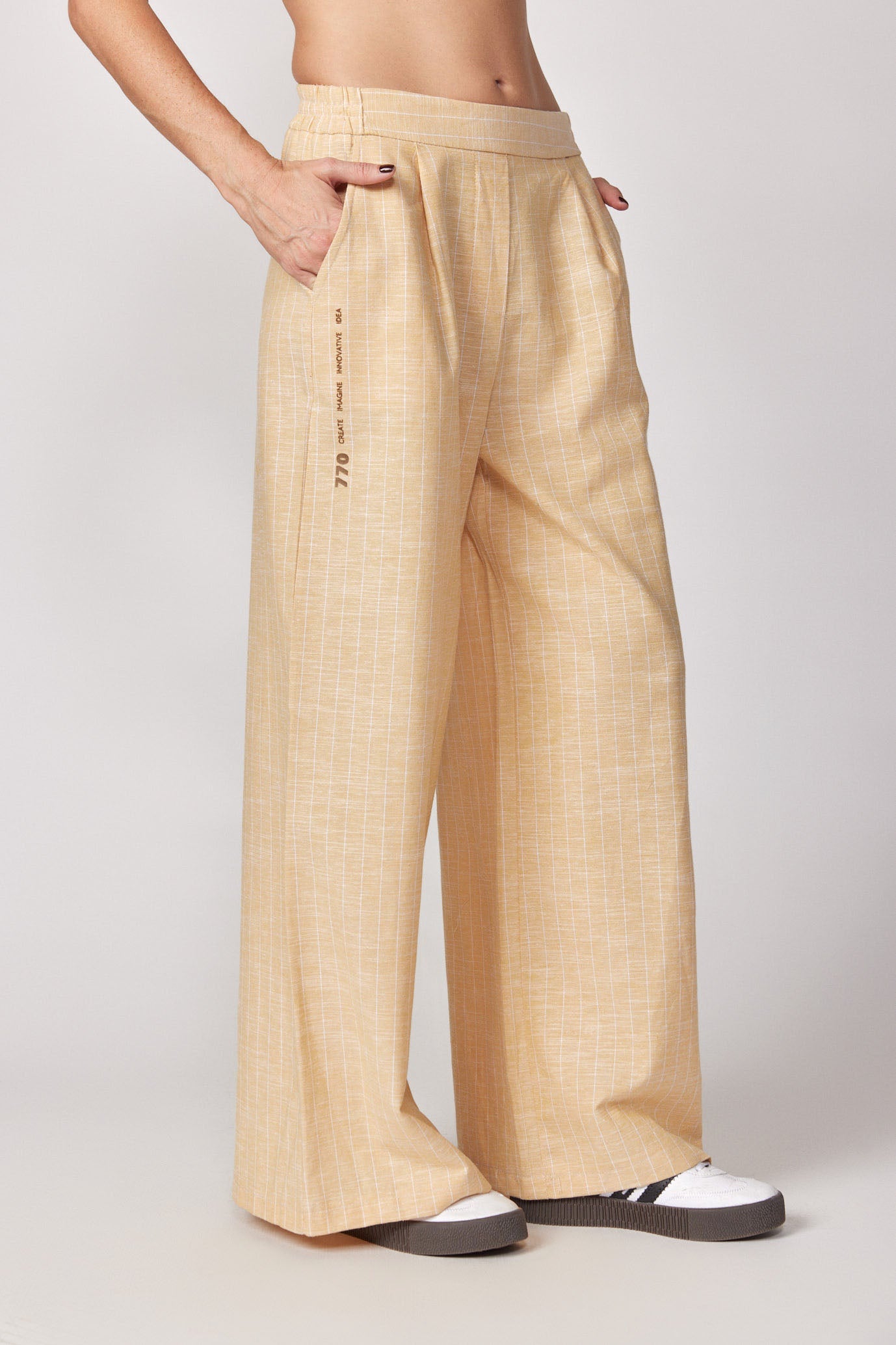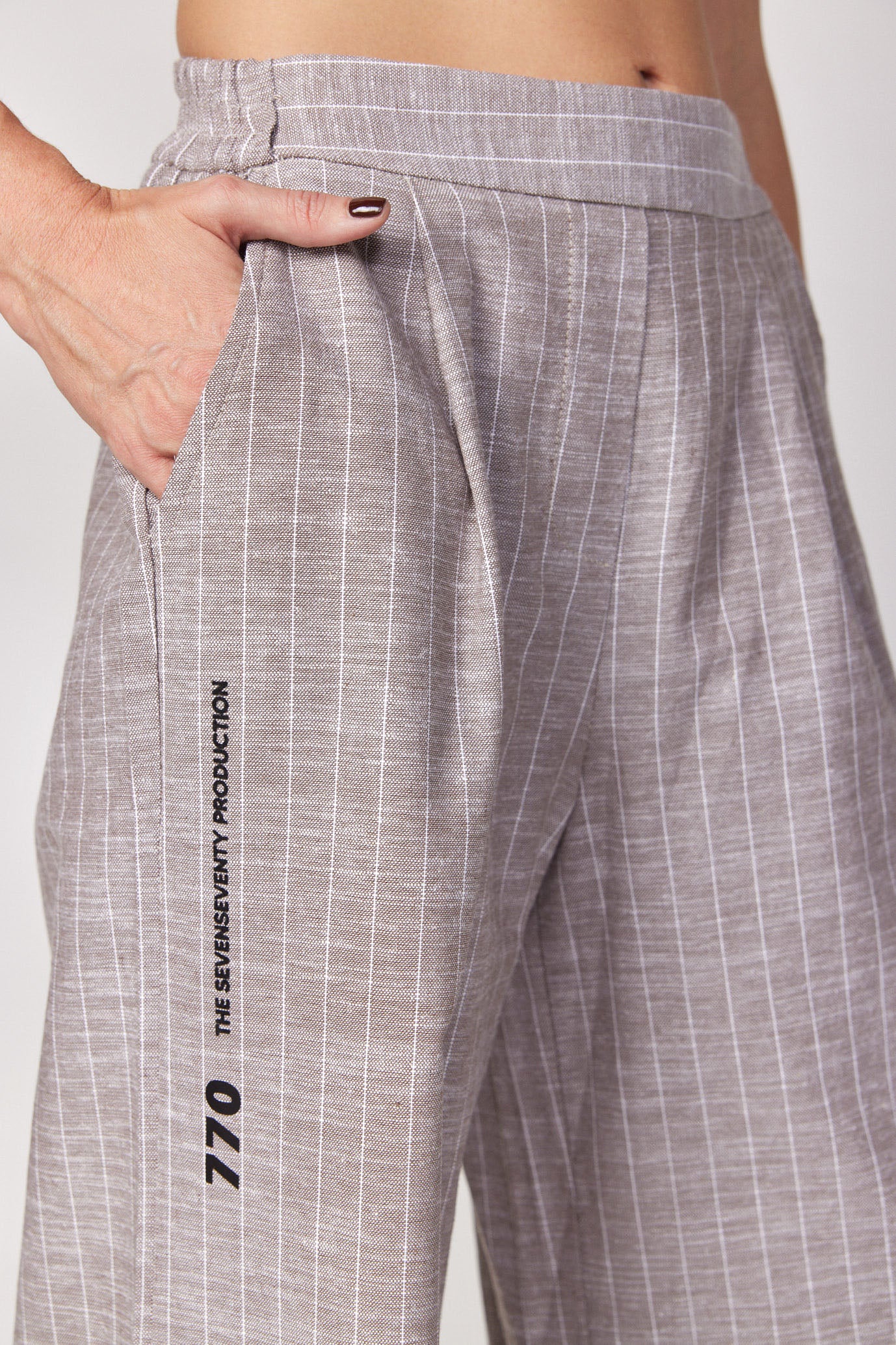 מכנסי פשתן מתרחבים פסים PRODUCTION