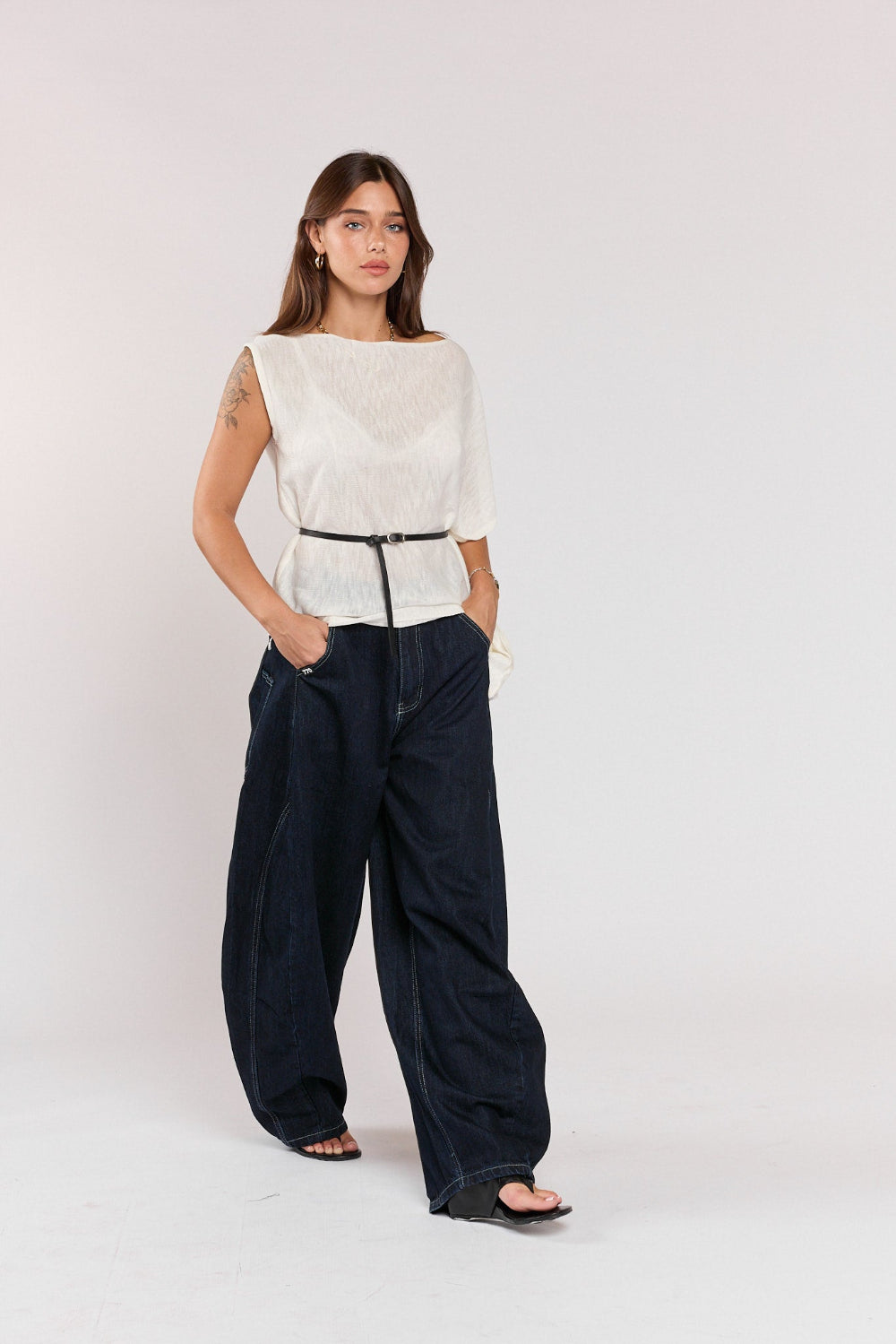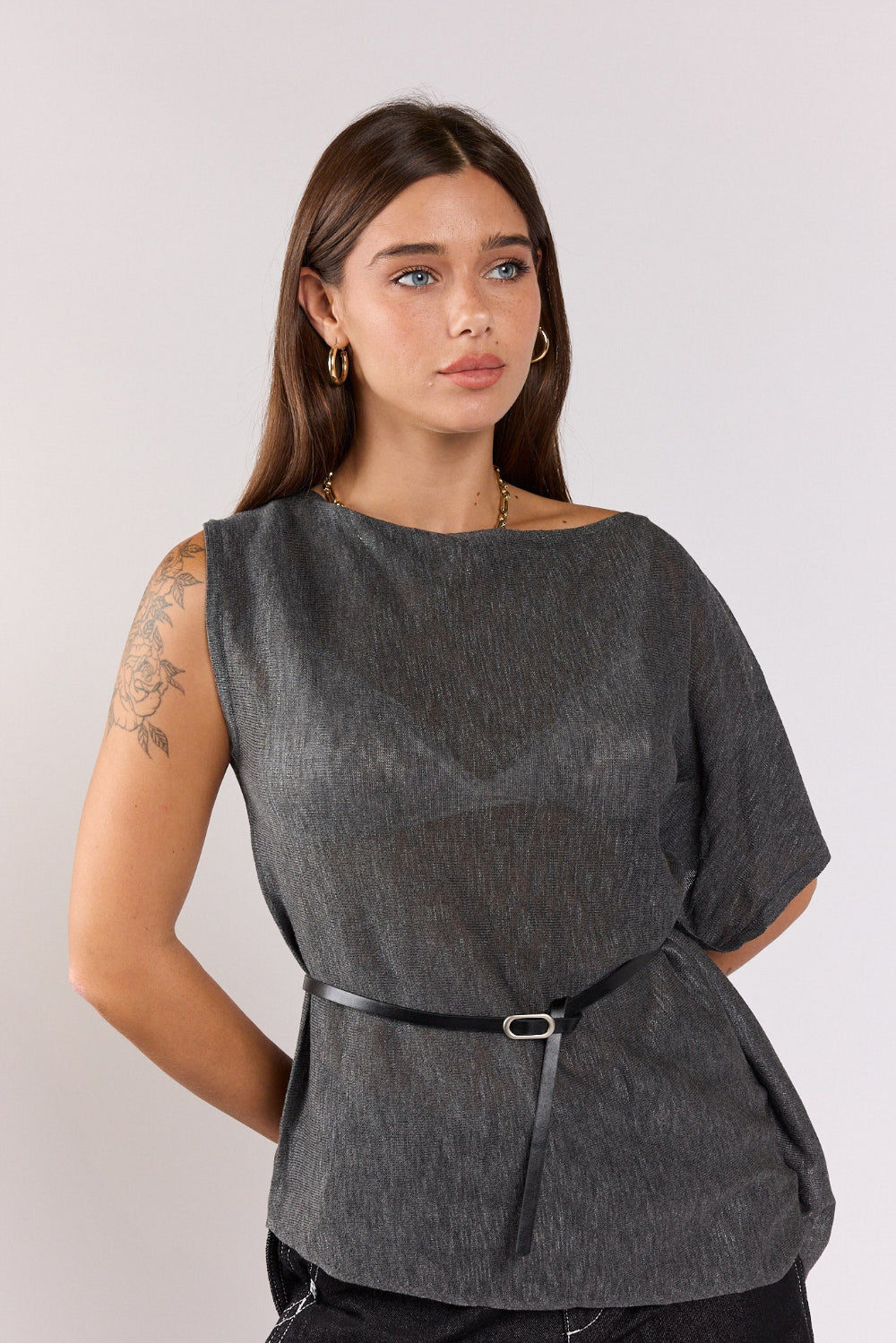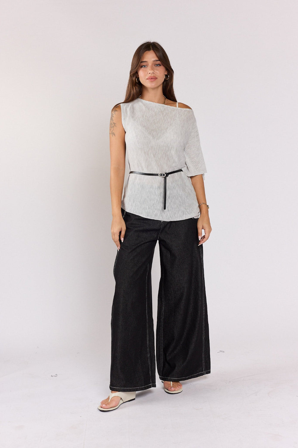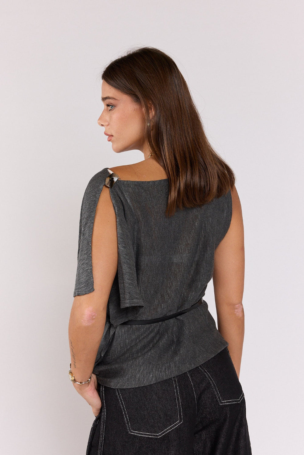 חולצה אסימטרית כפתור כתף SEVEN