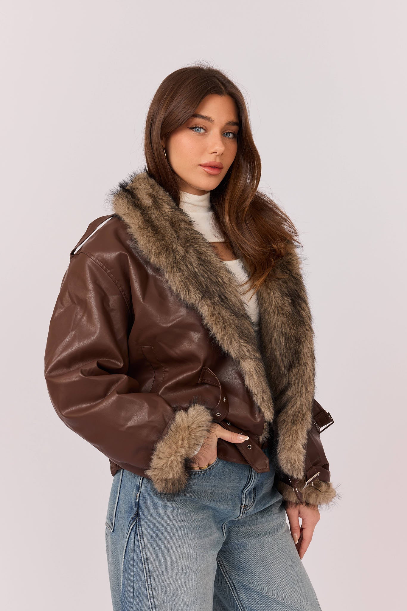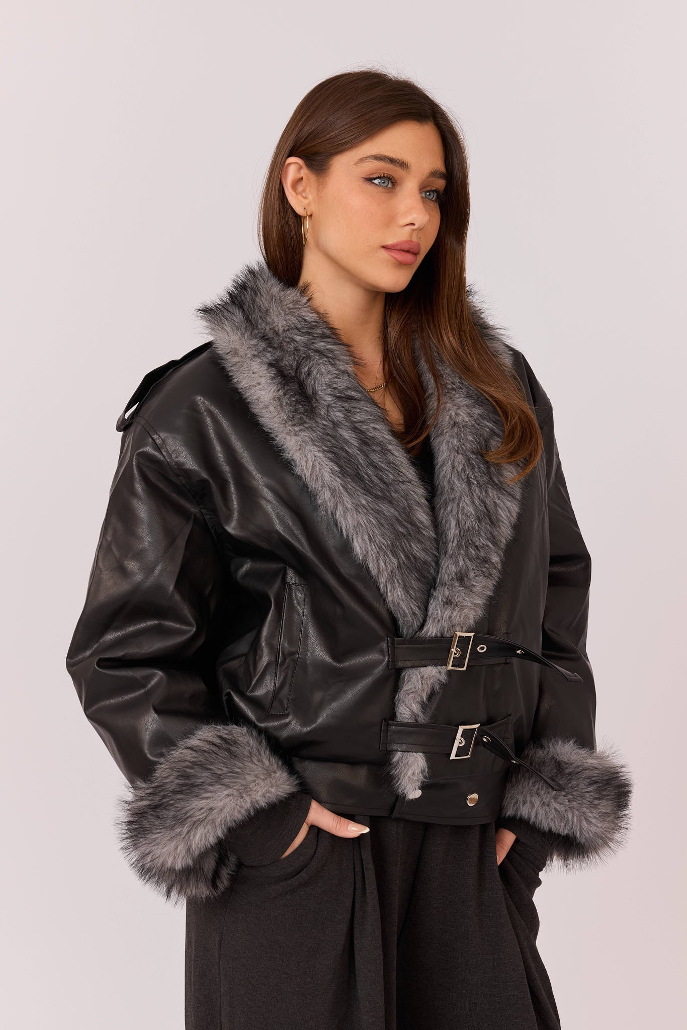 ג'קט דמוי עור בשילוב פרווה