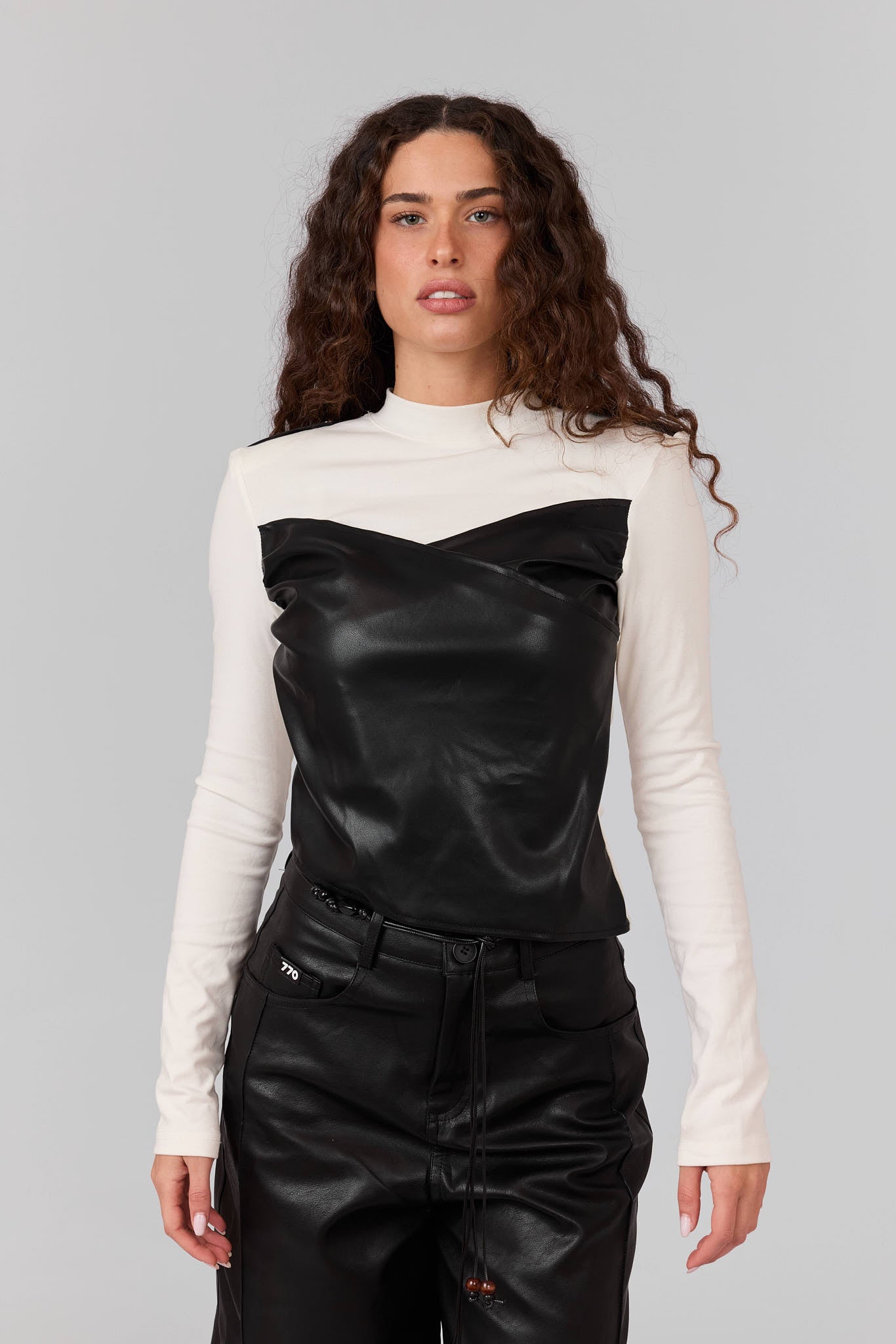 חולצה שילוב דמוי עור