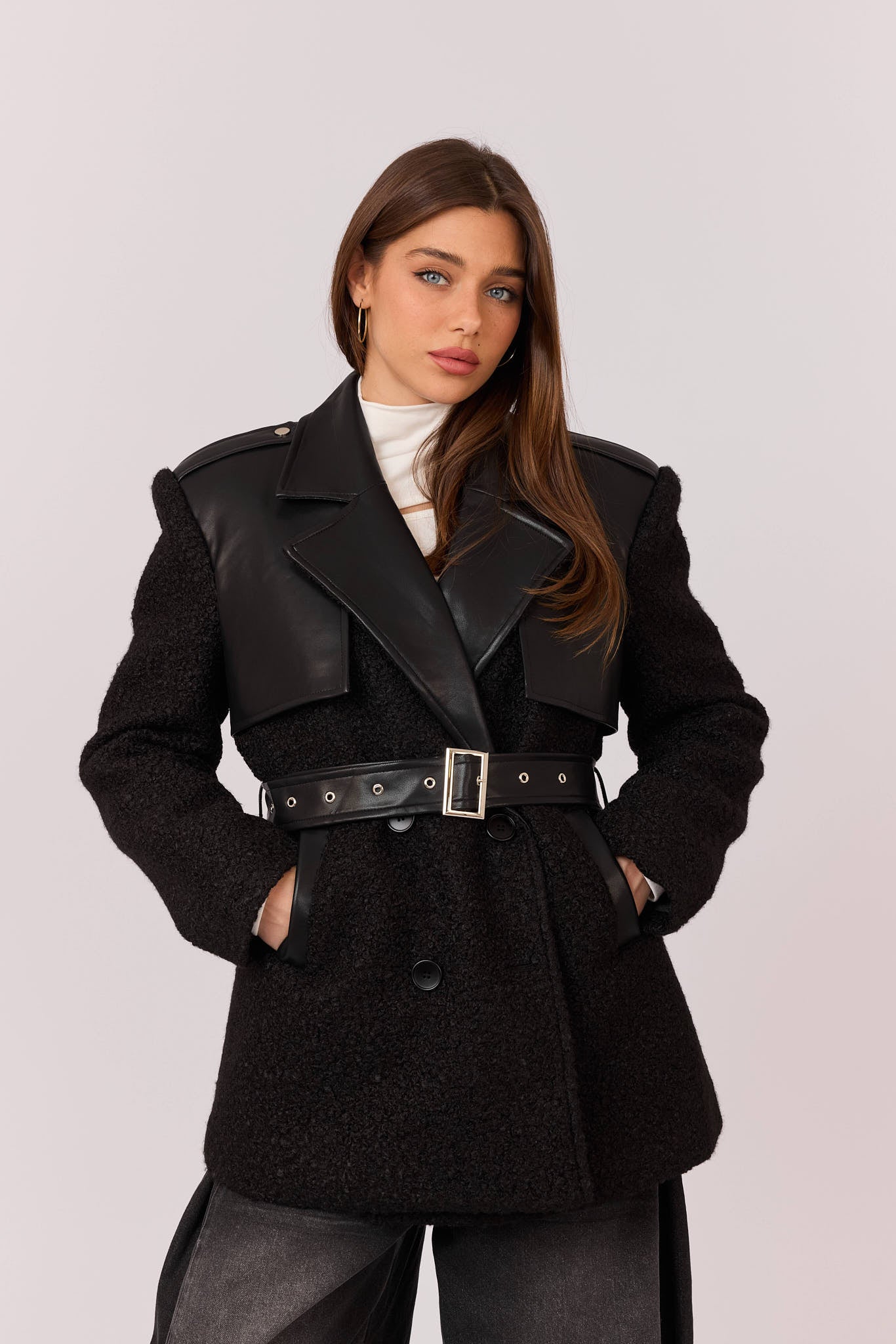 ג'קט צמר שילוב דמוי עור