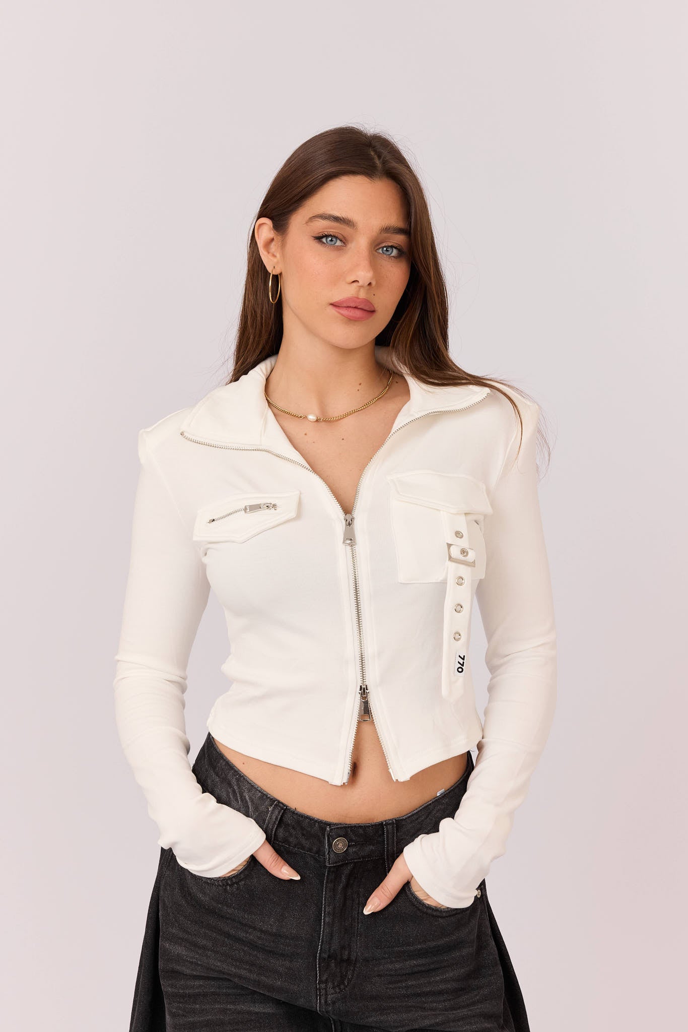 חולצת קרופ כיס רצועה