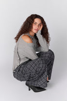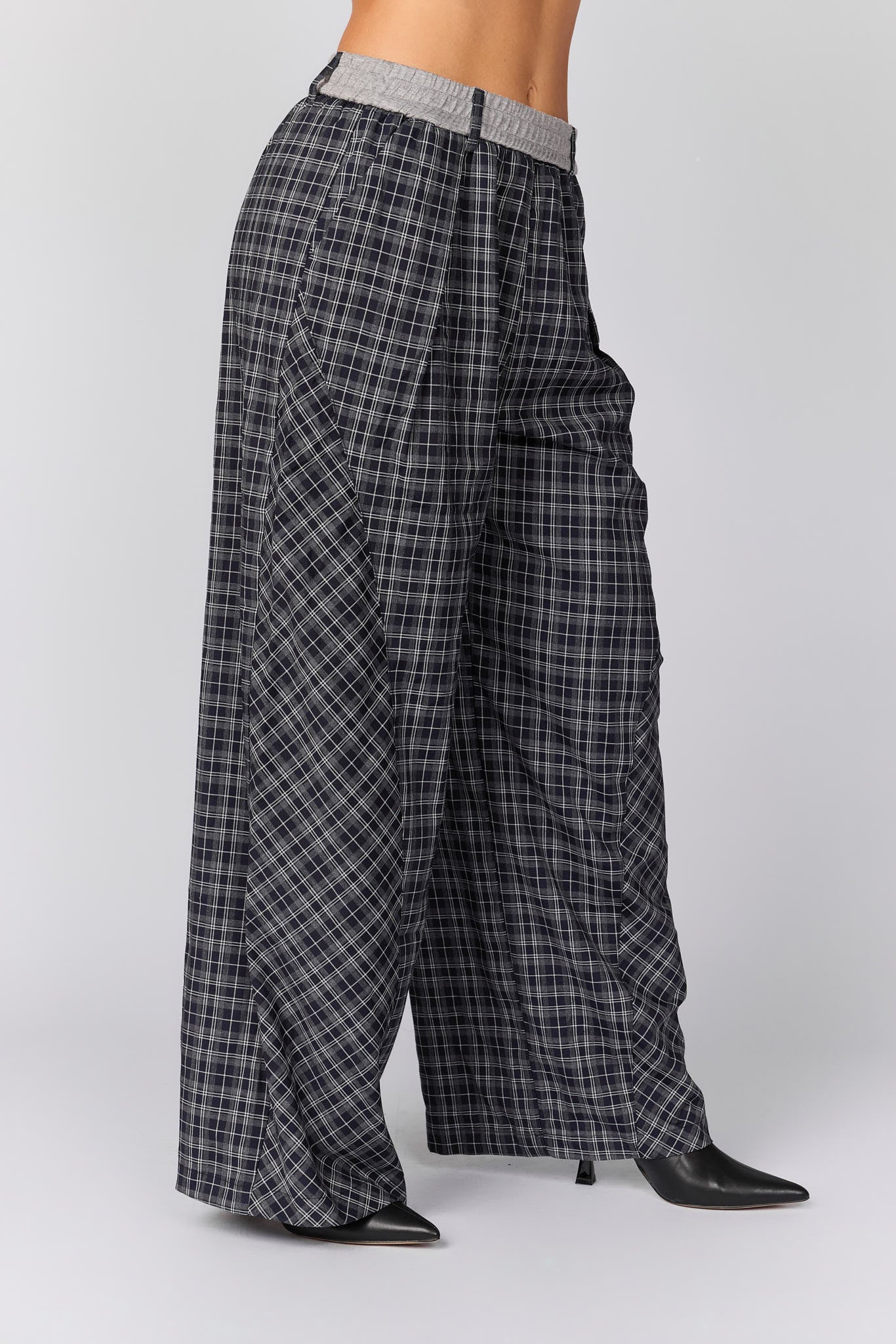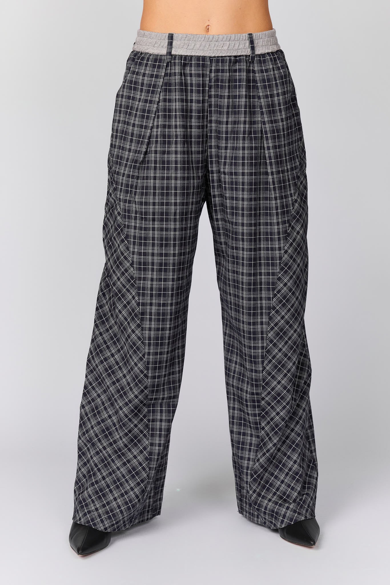 מכנסיים קלילים משובצים עם גומי אלסטי במותניים