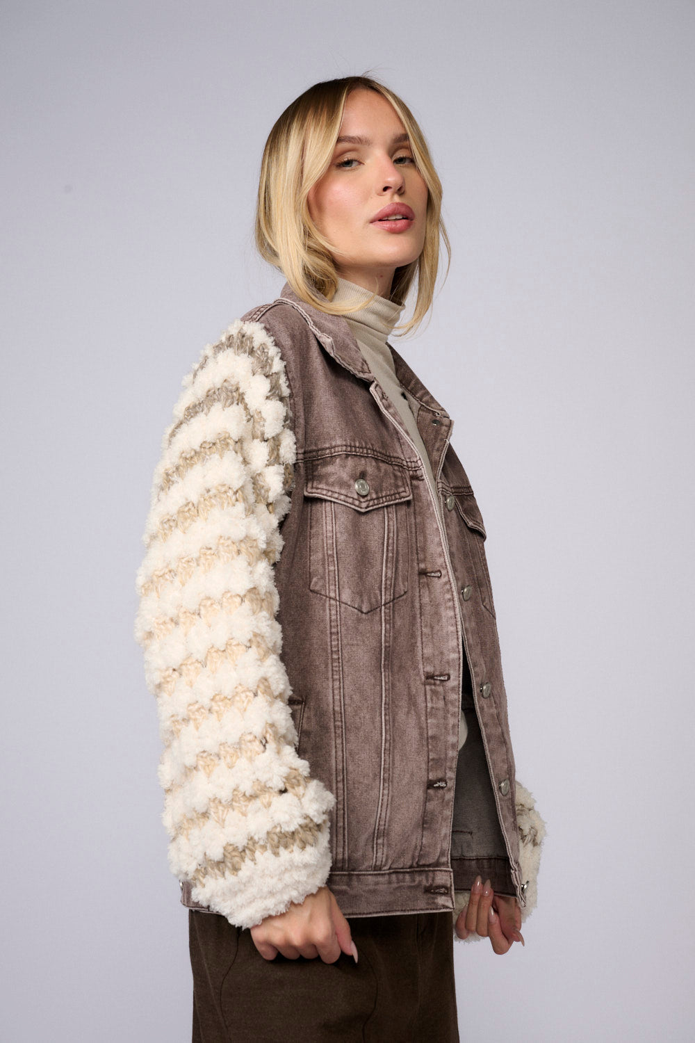 ג'קט ג'ינס שילוב צמר רך ונעים למגע