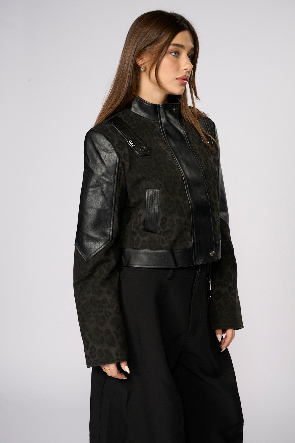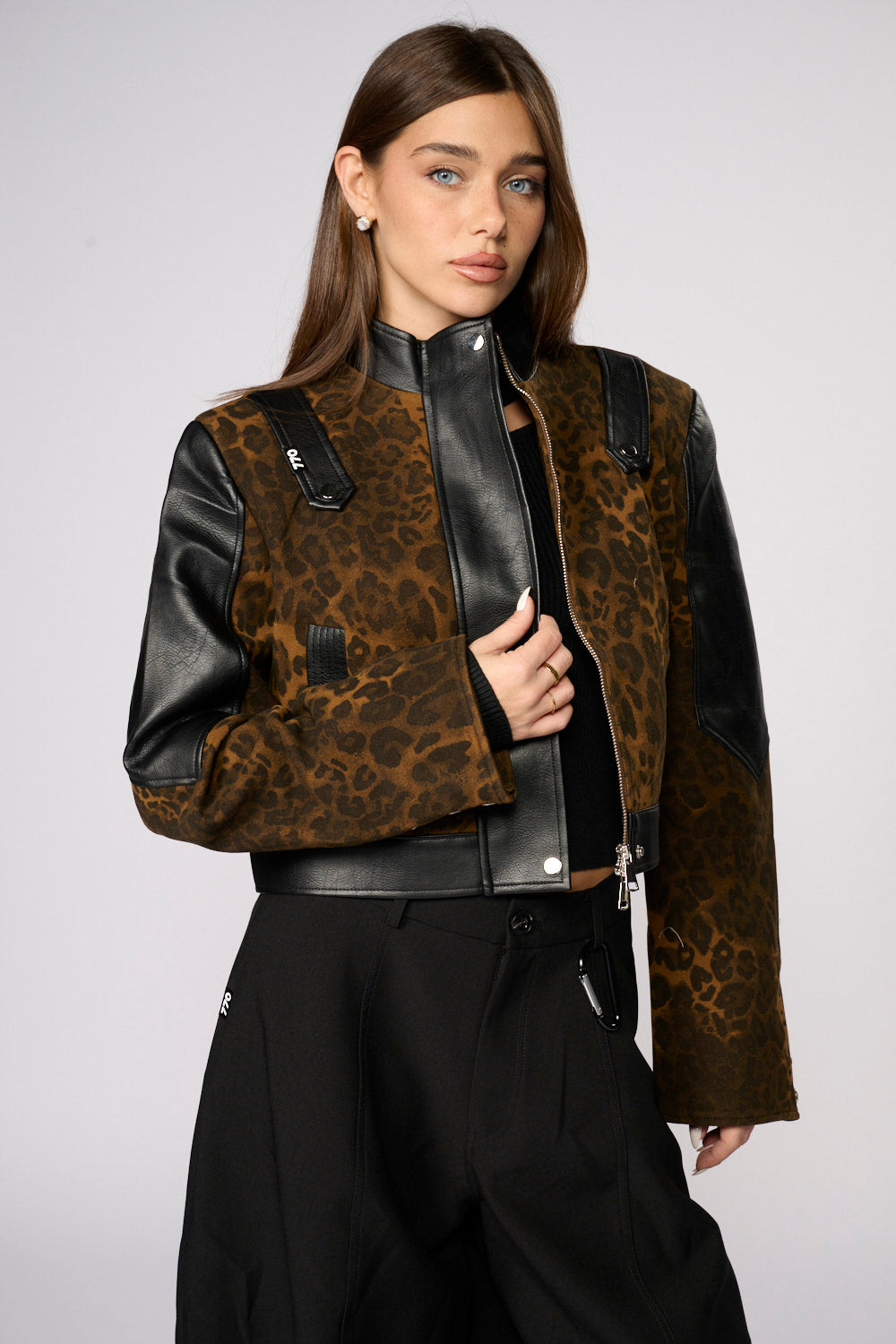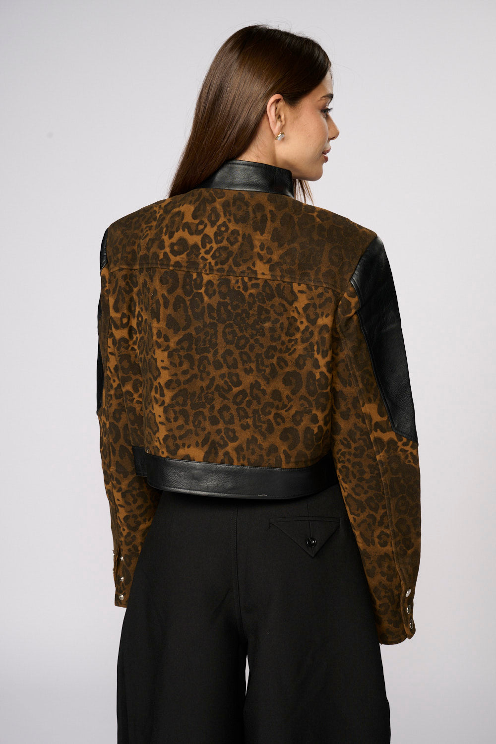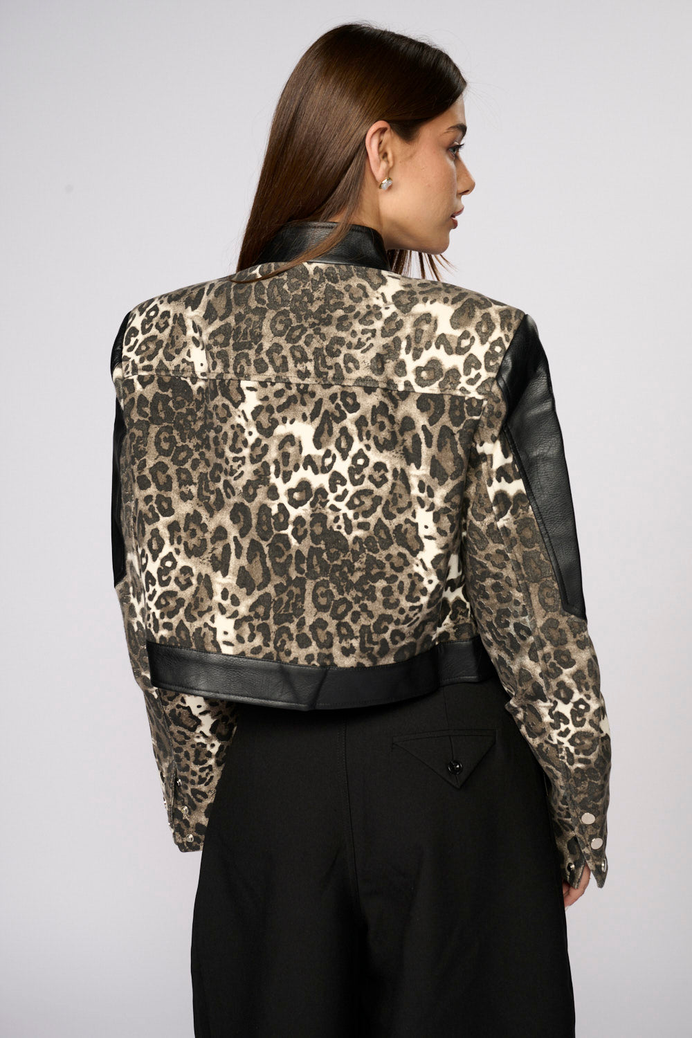 ג'קט דמוי עור מנומר עם ביטנת ניילון.