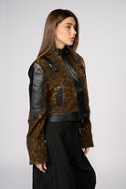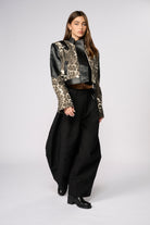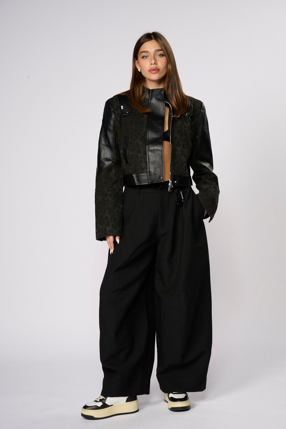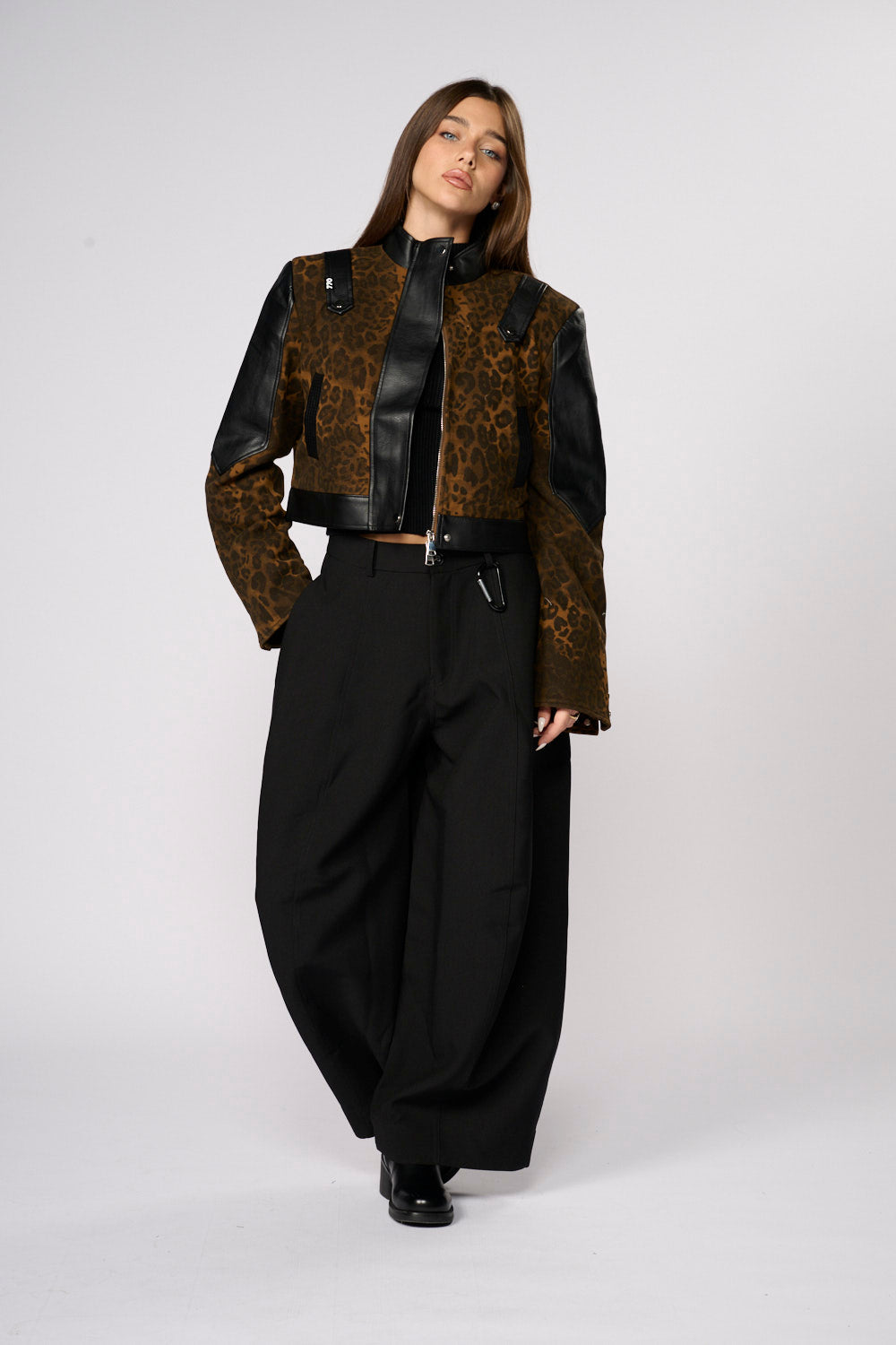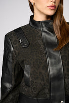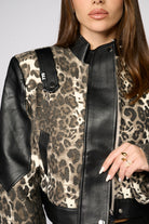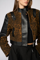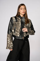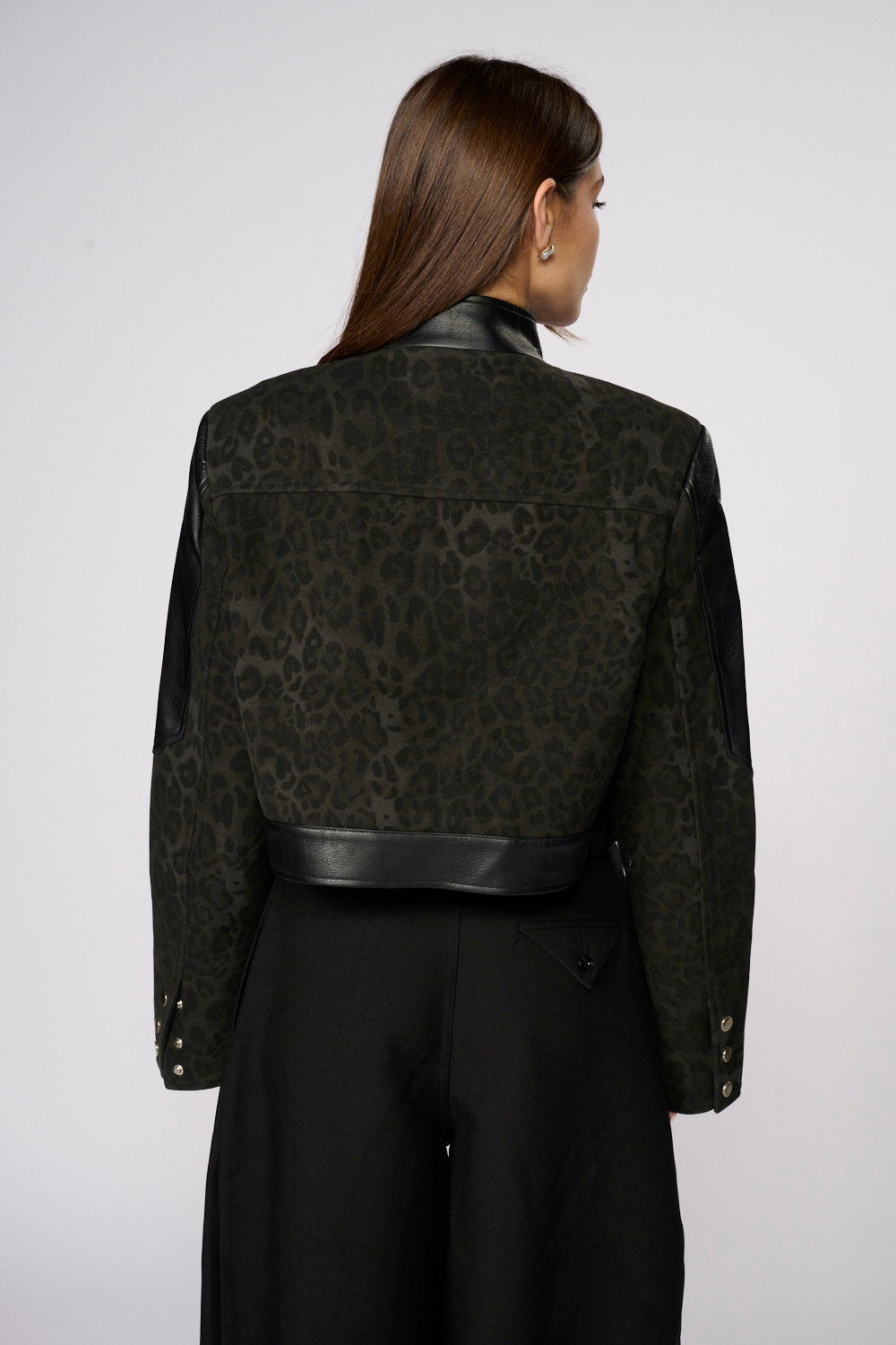 ג'קט דמוי עור מנומר עם ביטנת ניילון.
