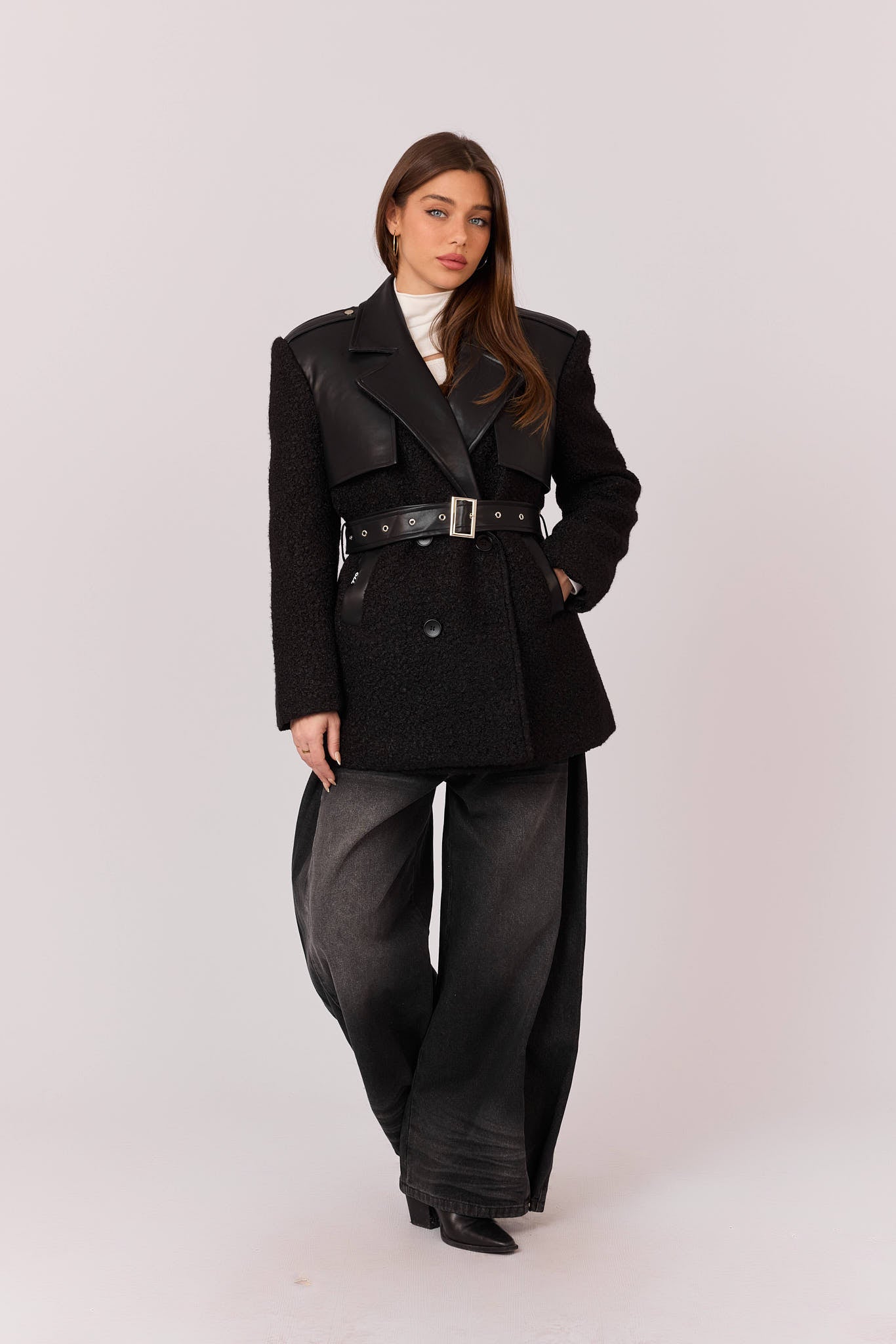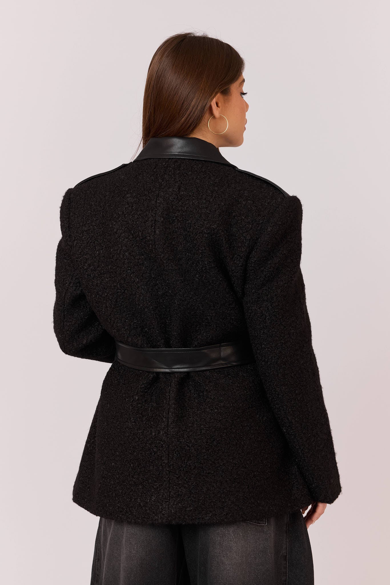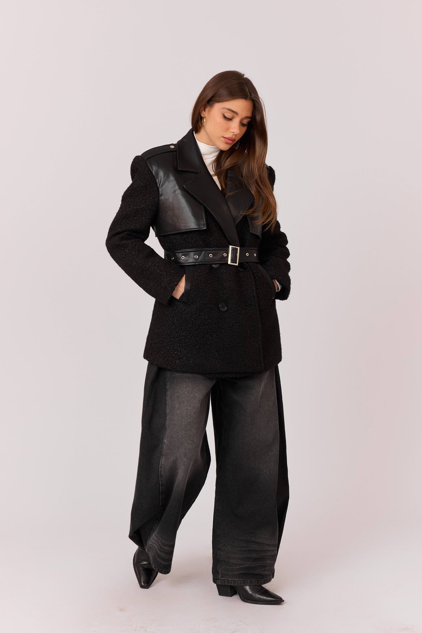 ג'קט צמר שילוב דמוי עור