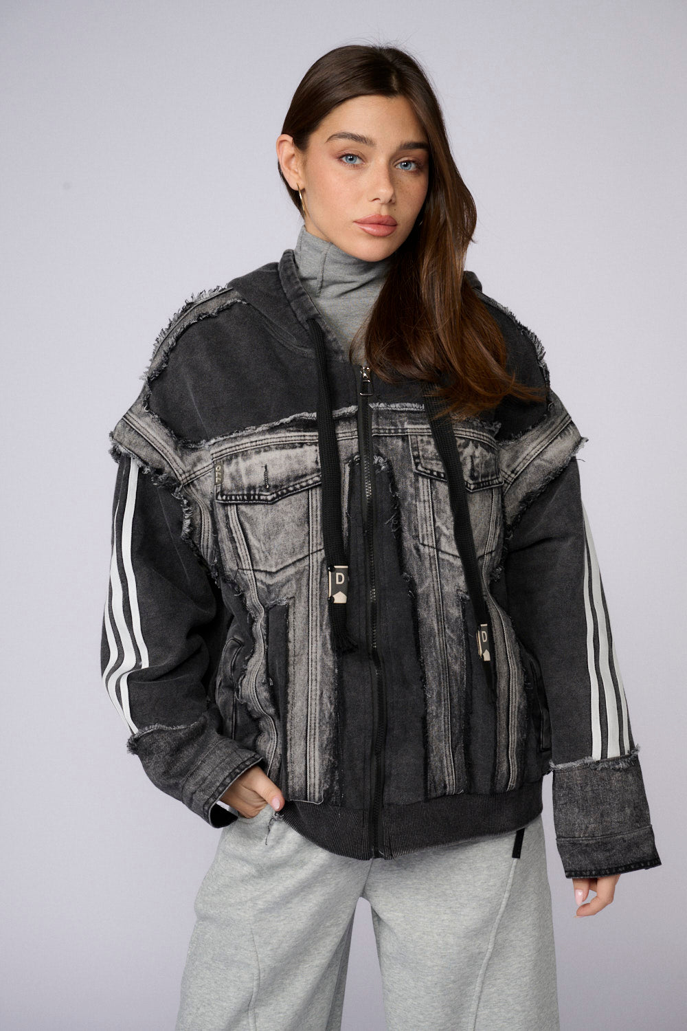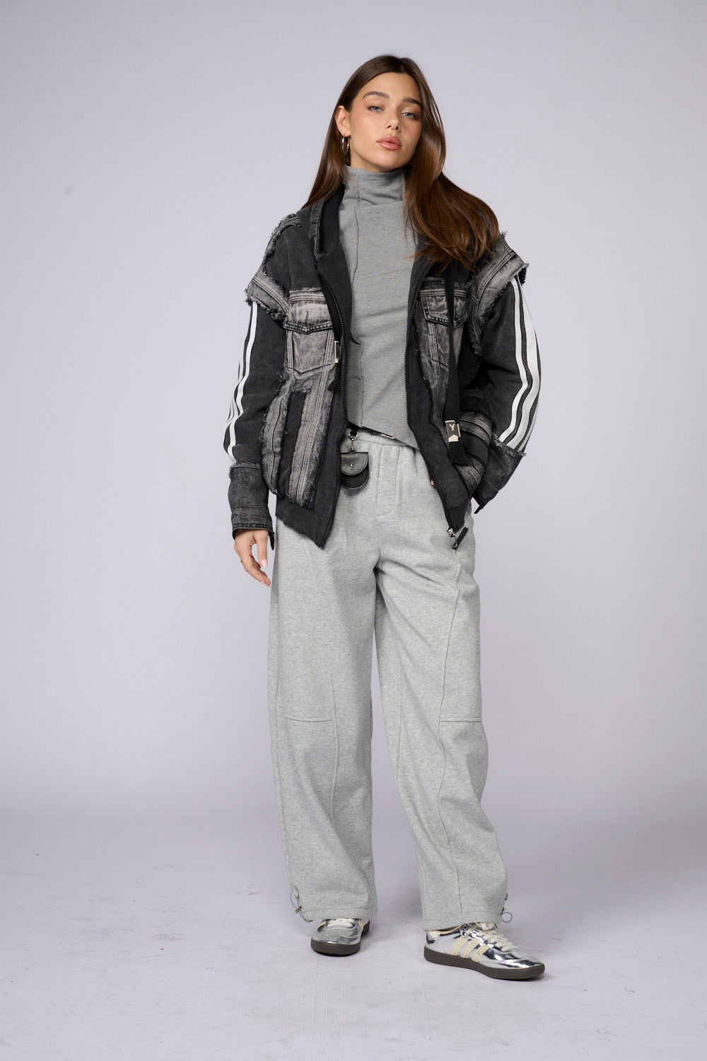 ג'קט קפוצ'ון שילוב ג'ינס ספורטיבי