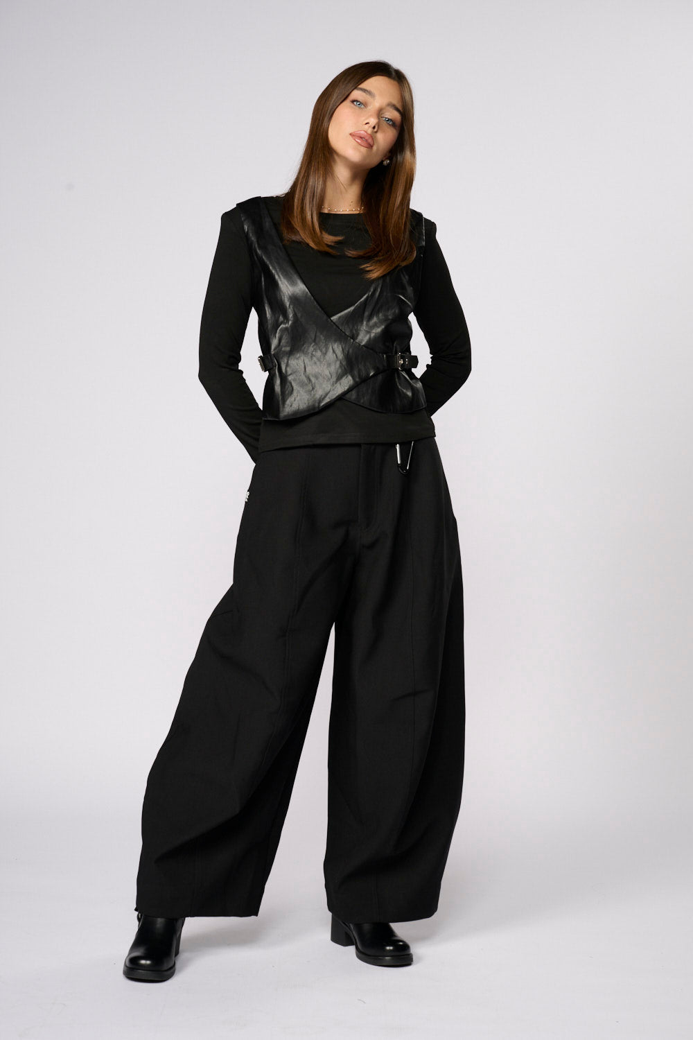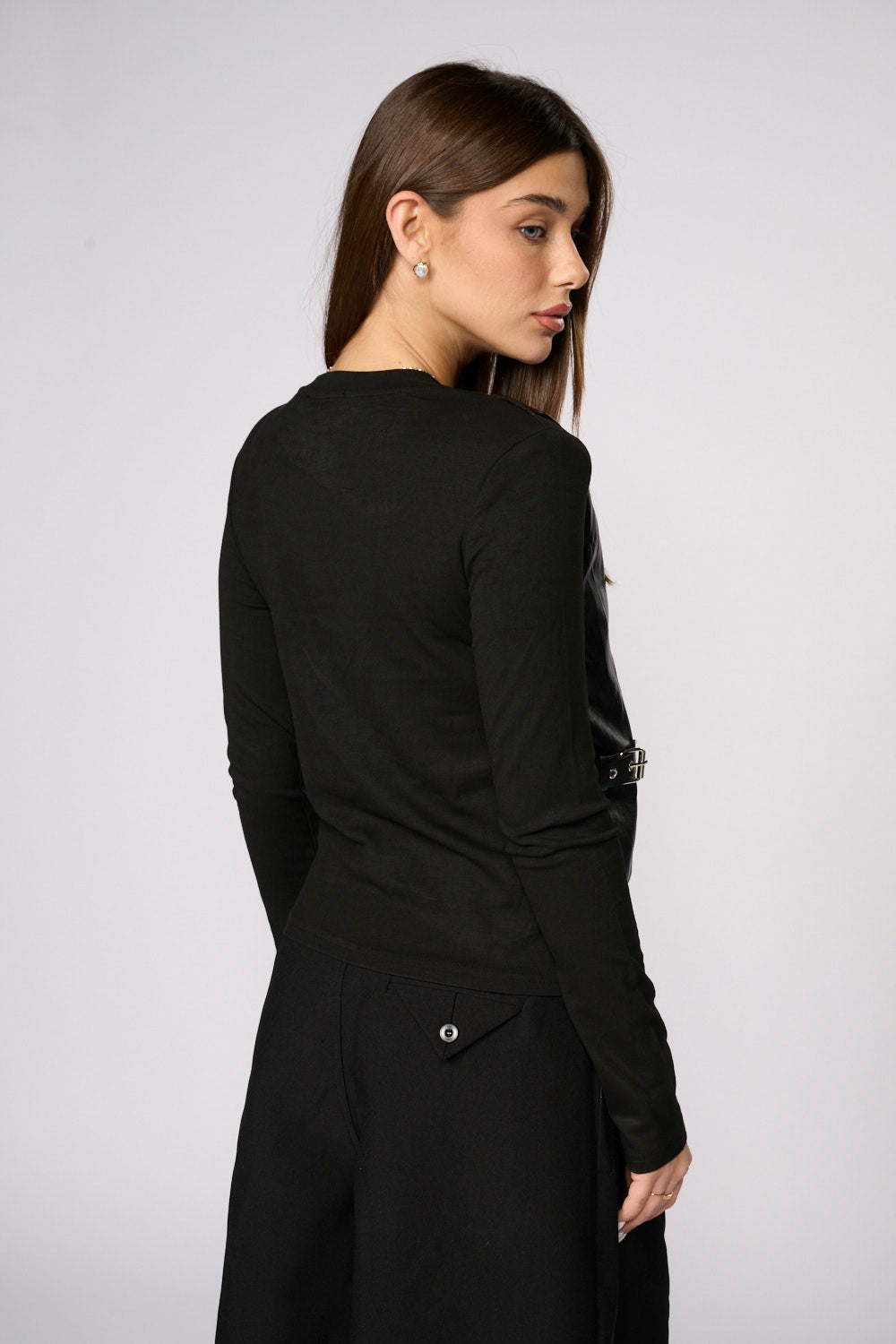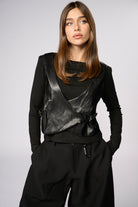 חולצה בשילוב וסט דמוי עור רצועות