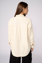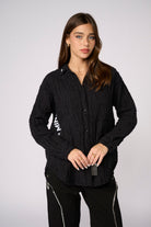 חולצה מכופתרת דקה מבד כותנה עם טקסטורת קרעים. גזרה רחבה.