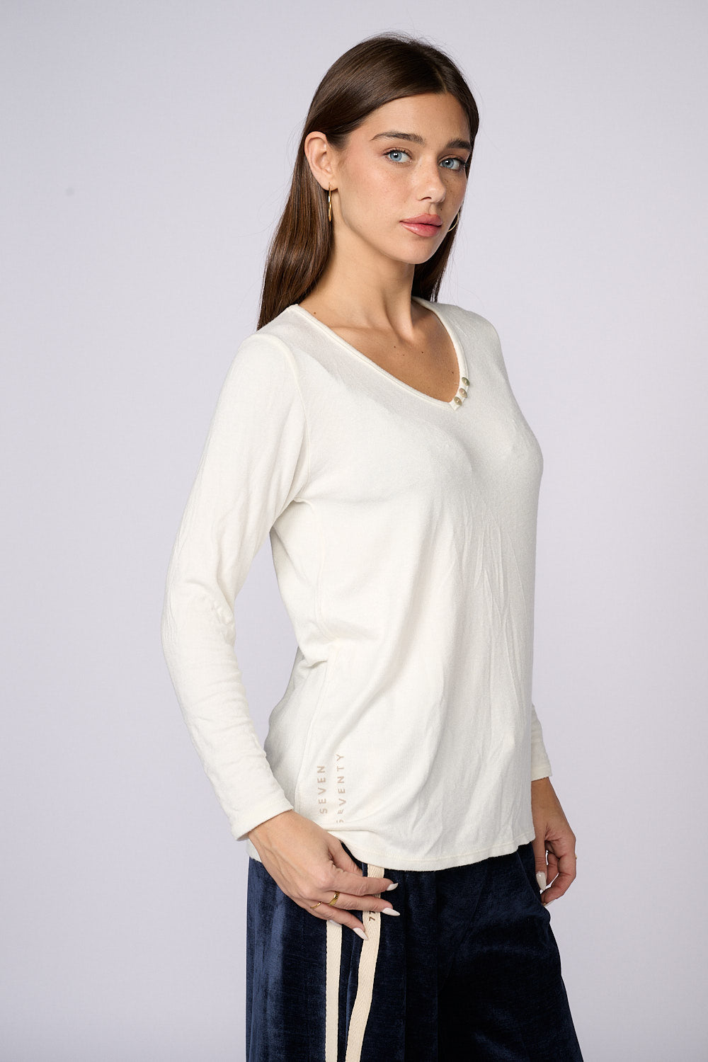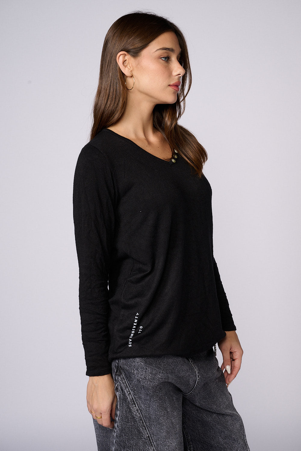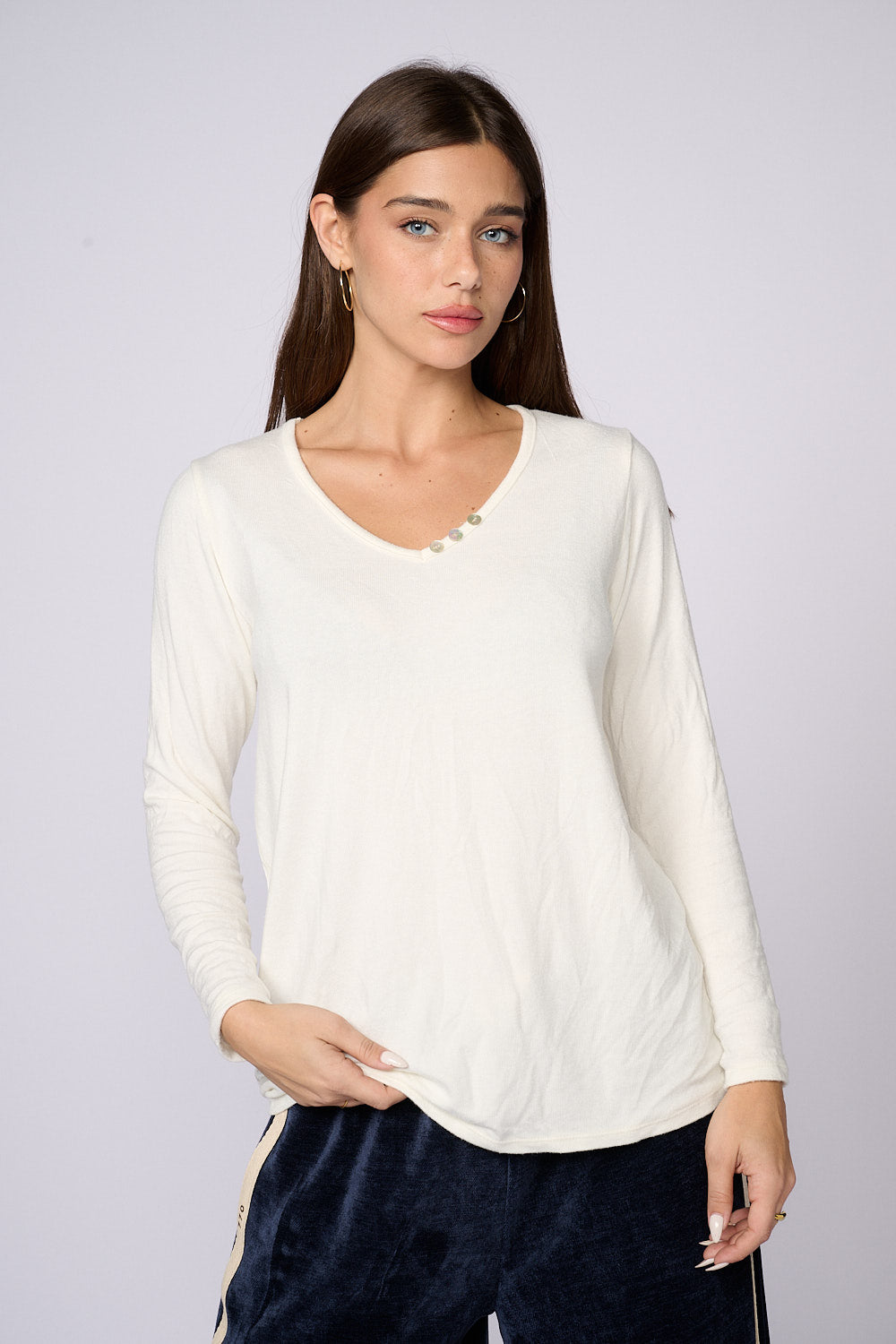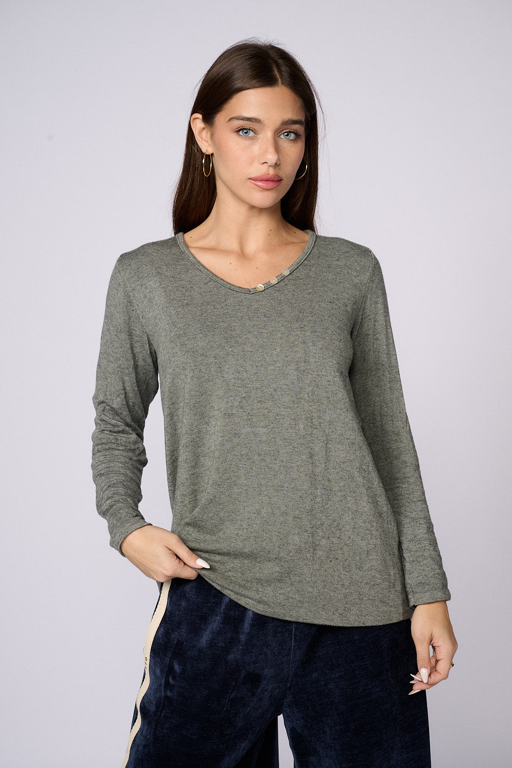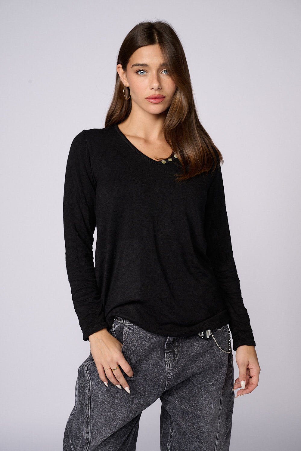 חולצת סריג ביסייק, בשילוב כפתורים בצווארון , מבד נמתח.