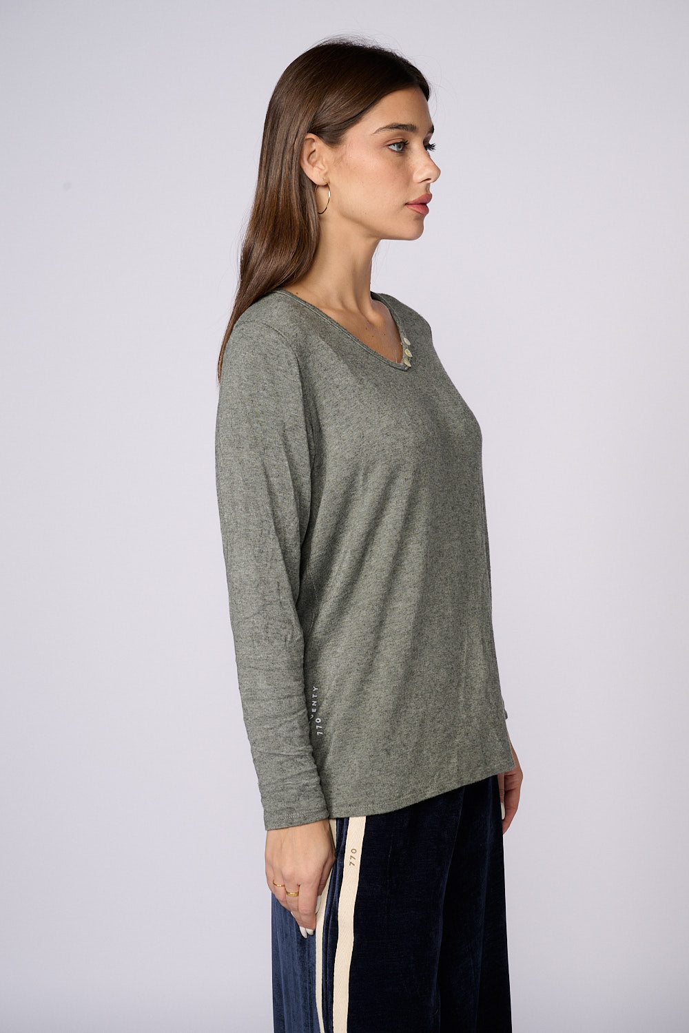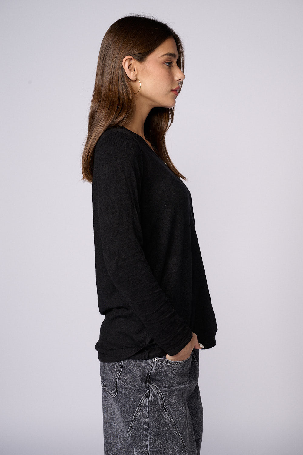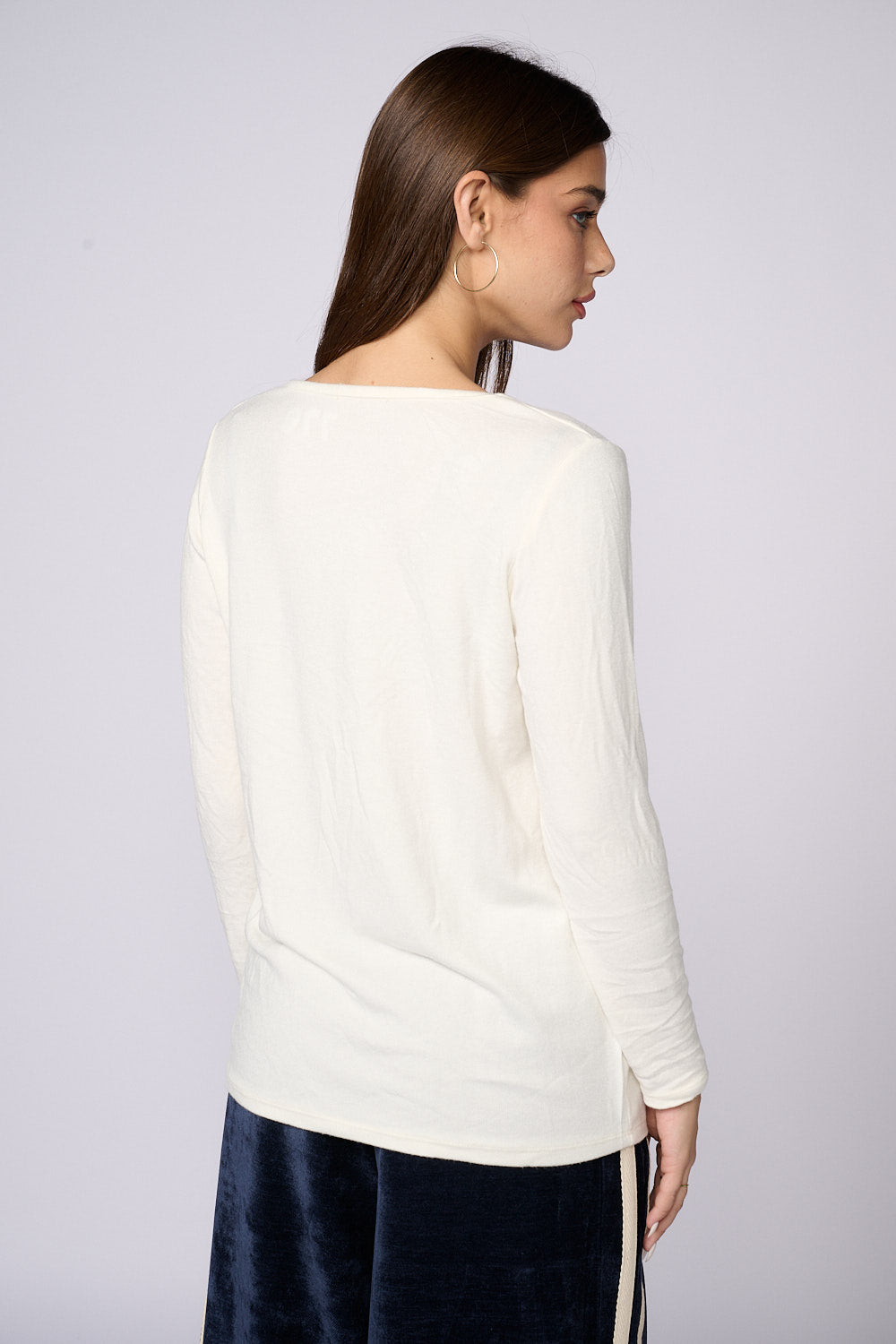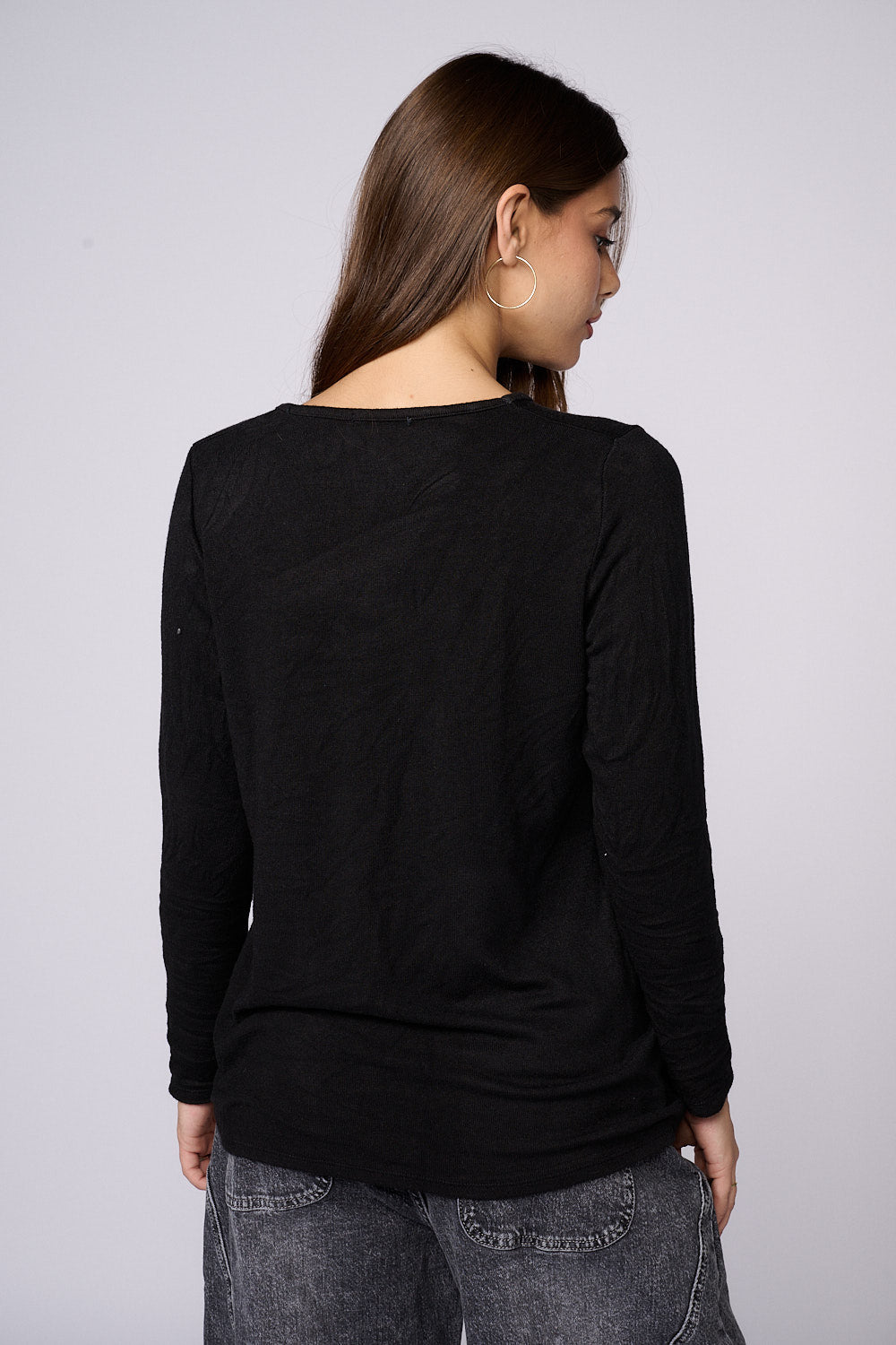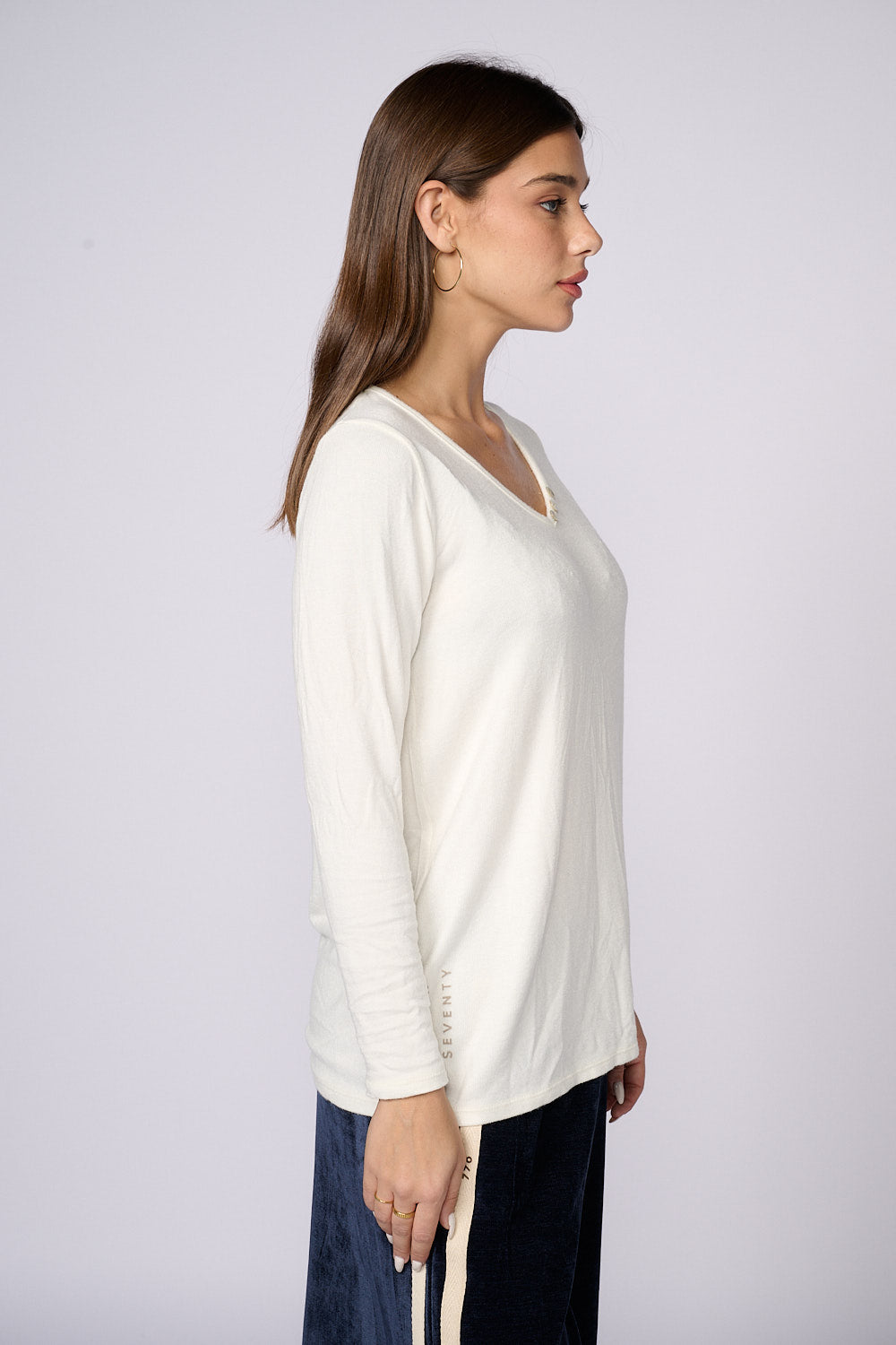 חולצת סריג ביסייק, בשילוב כפתורים בצווארון , מבד נמתח.