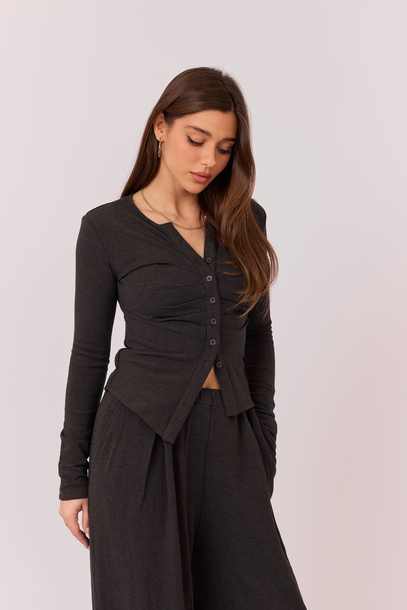 סט חולצת כפתורים וכיווץ