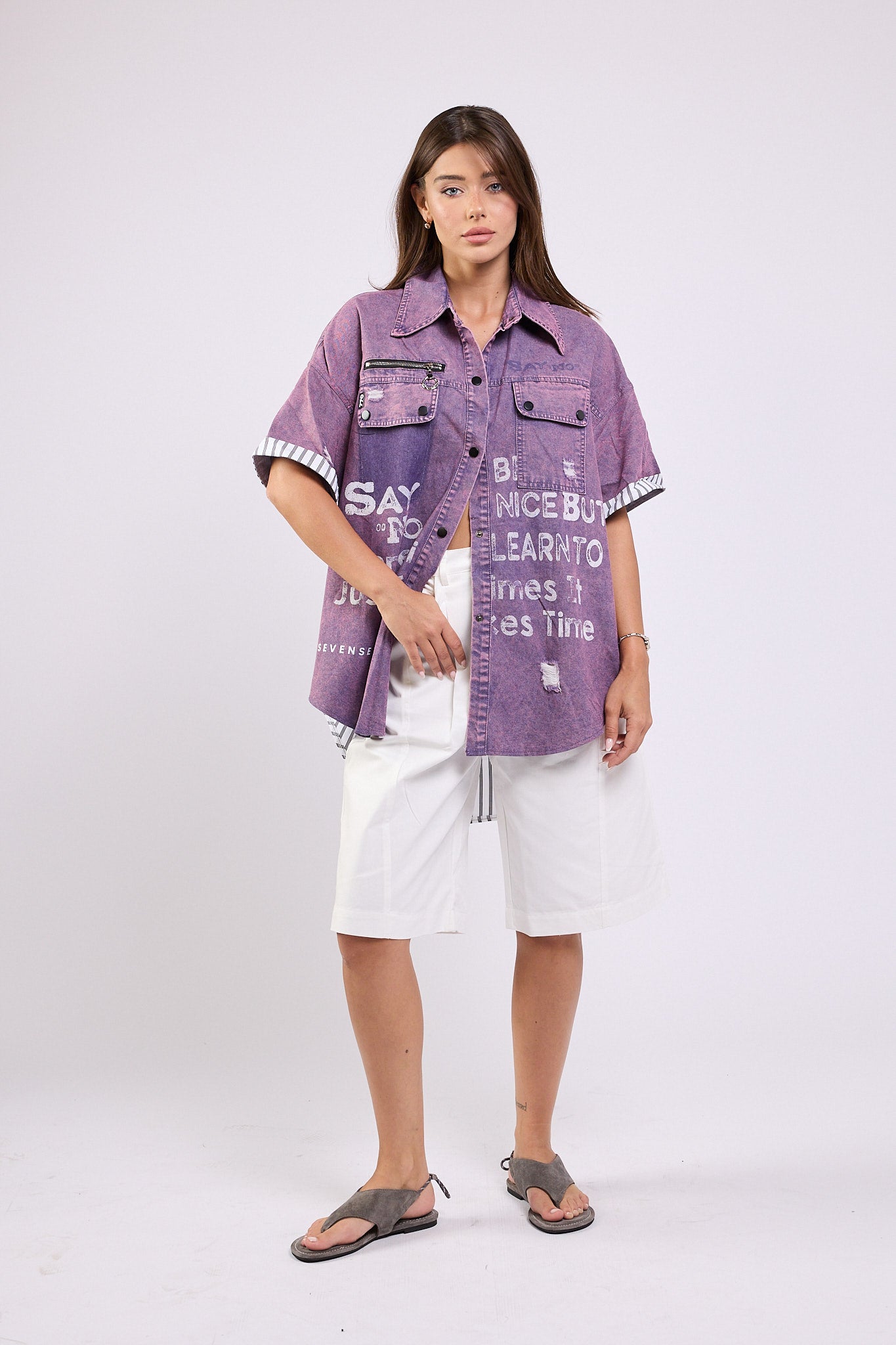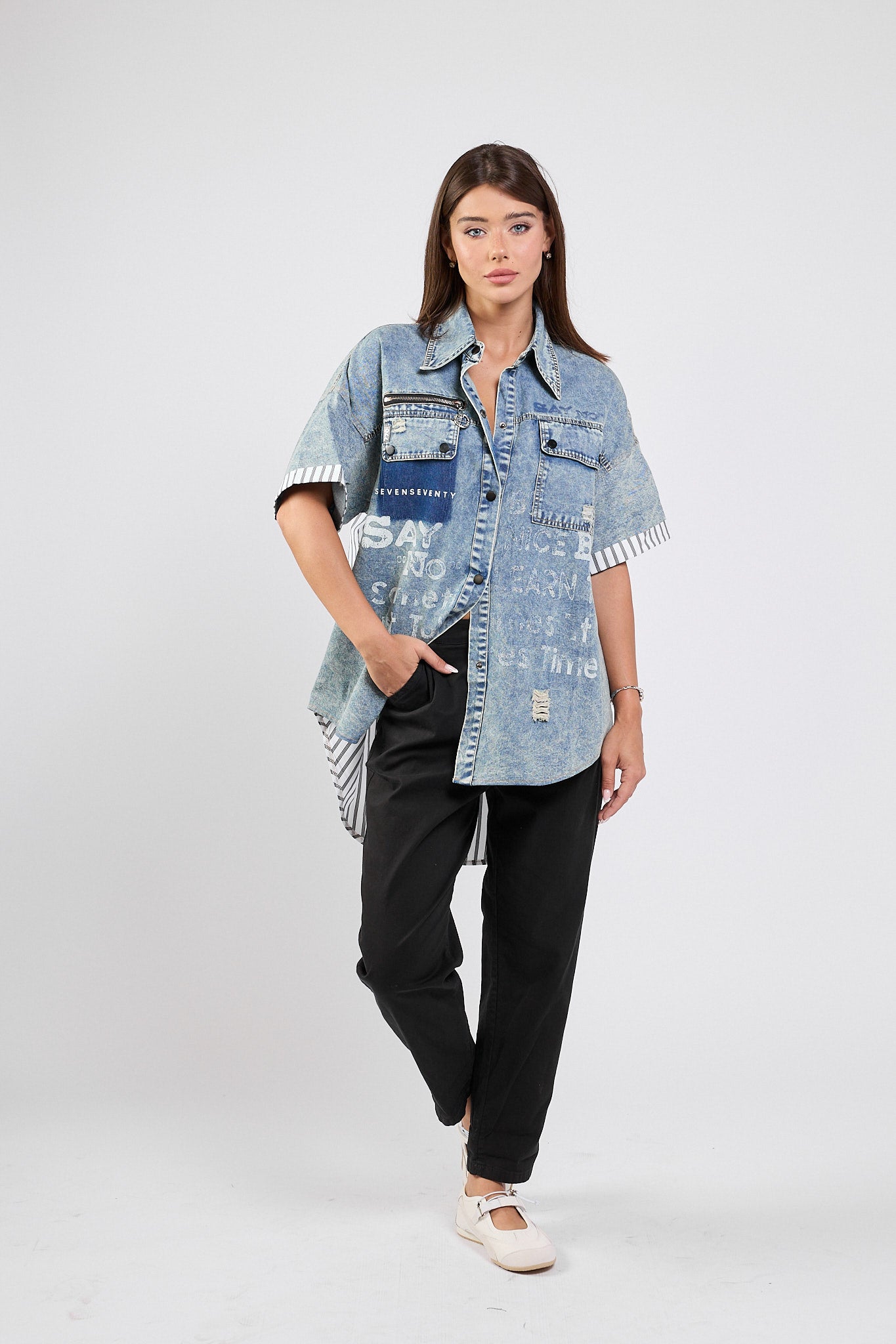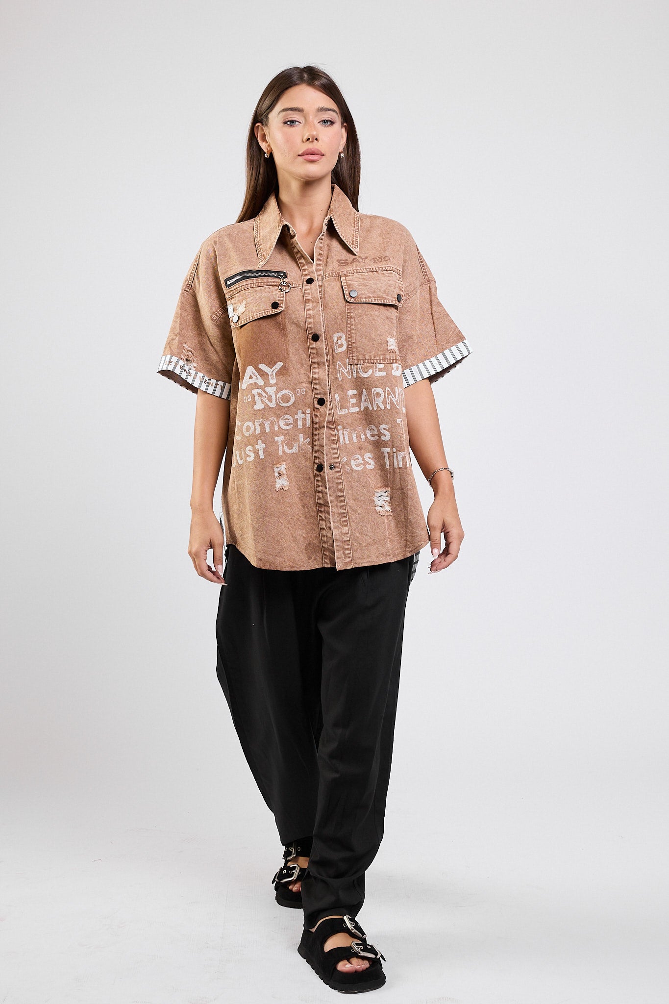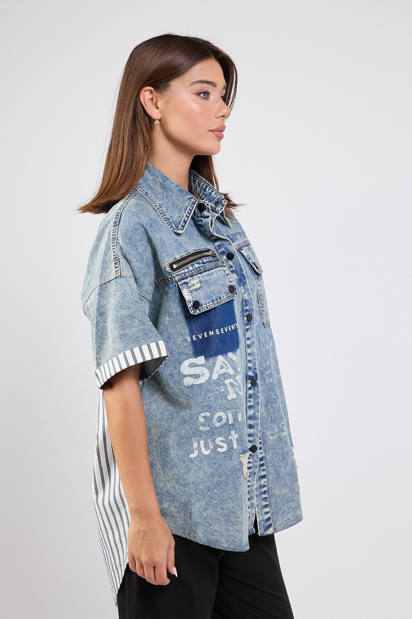 חולצה מכופתרת שילוב SAY
