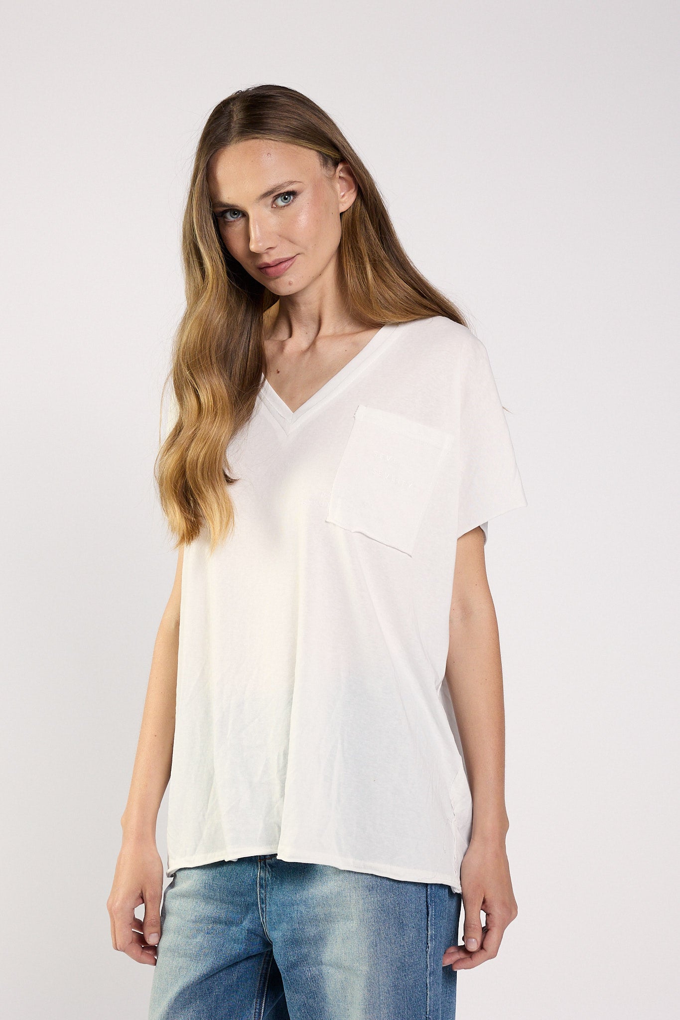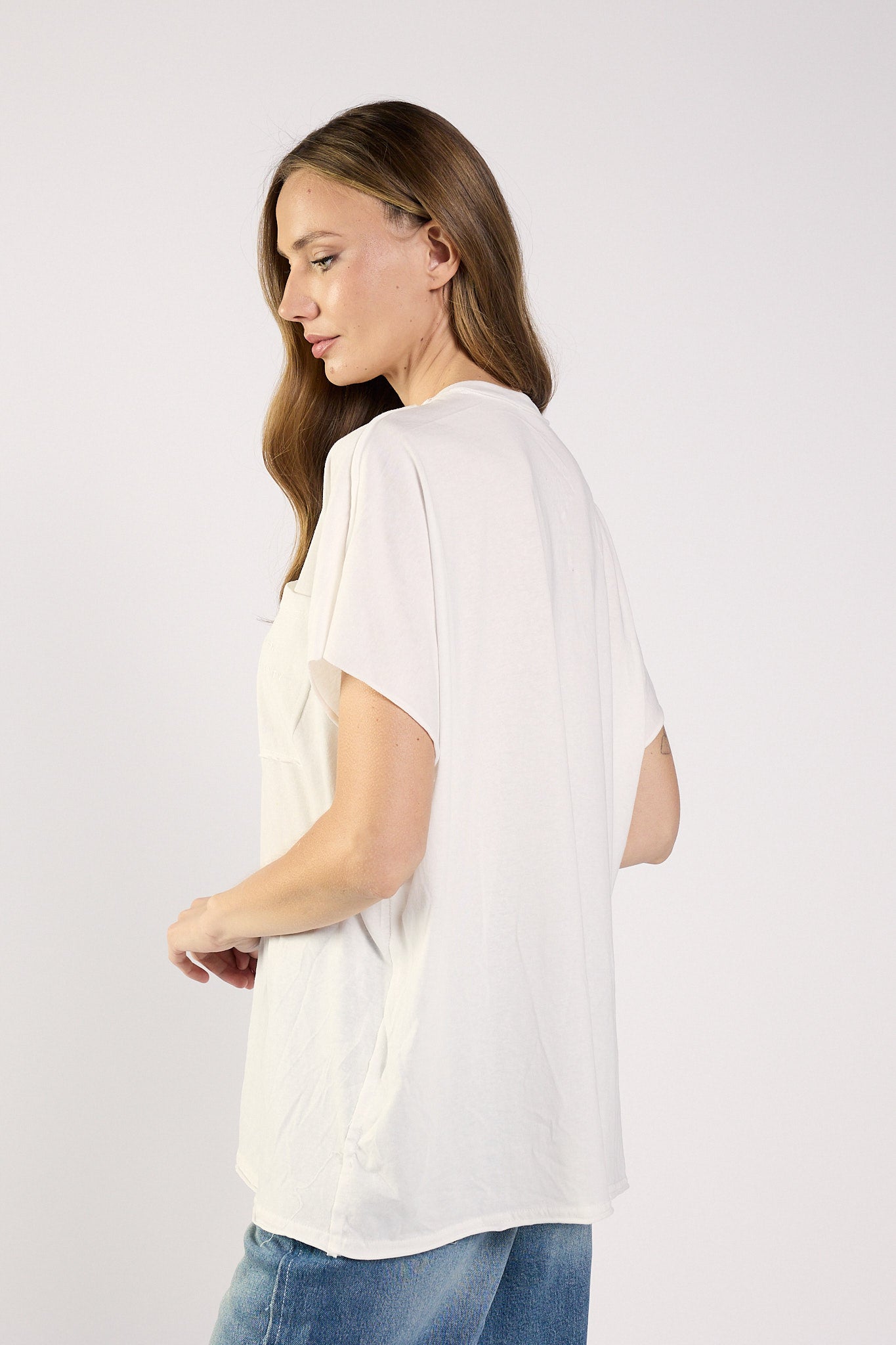 חולצת טי רחבה כיס בשקיפות קלה HANDMADE