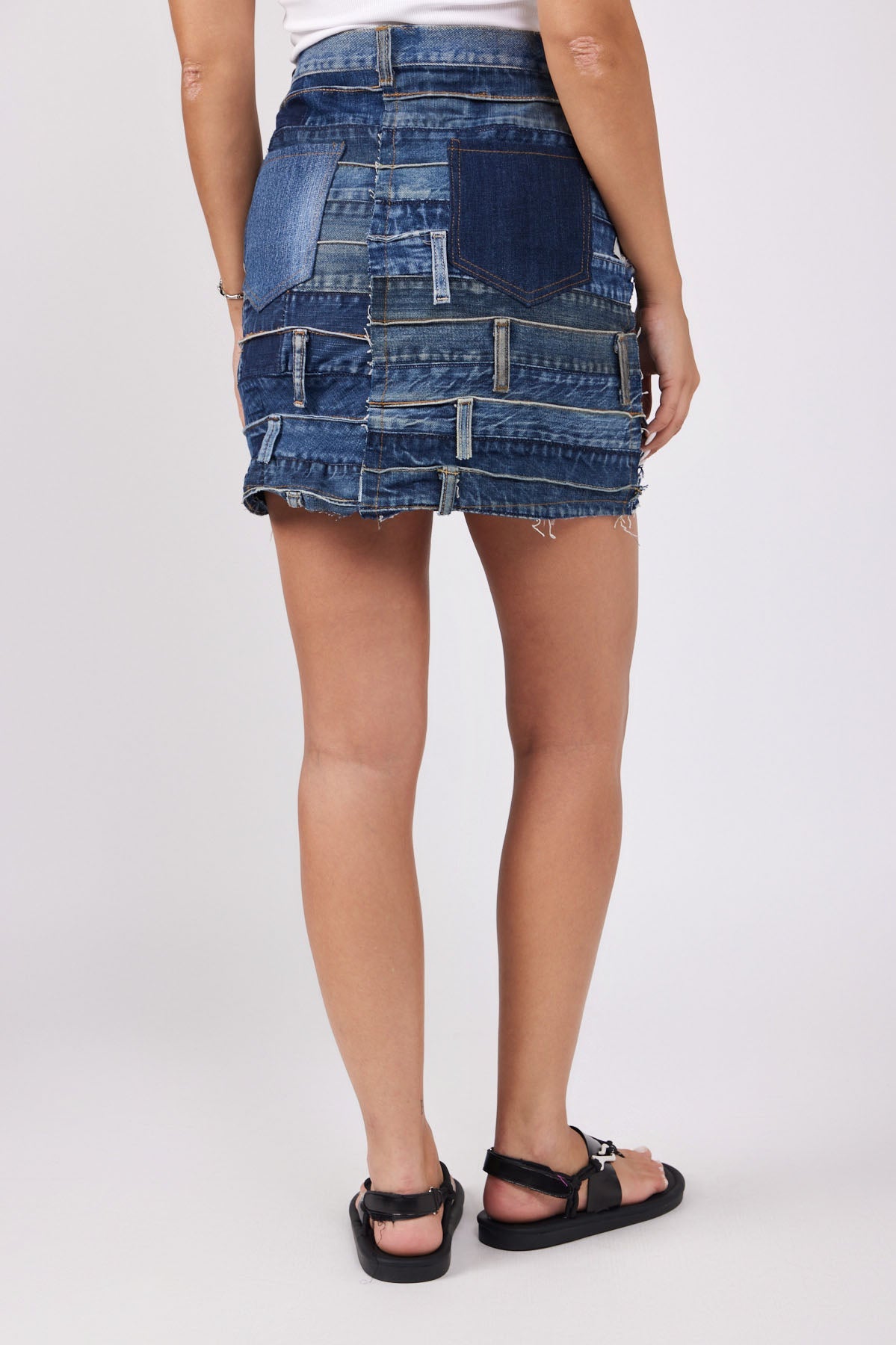 עשויה מגזרי מכנסי ג'ינס וינטאג'