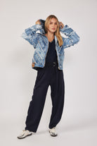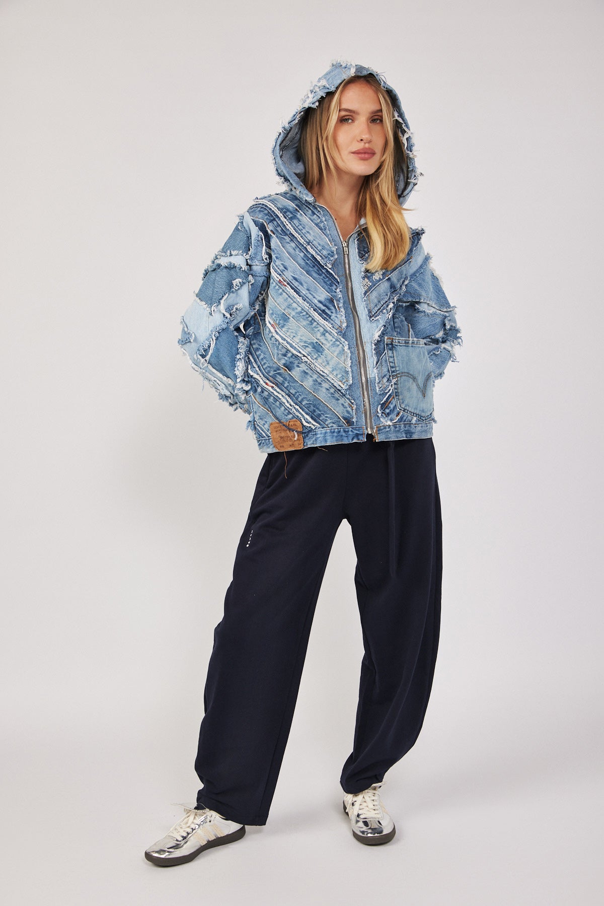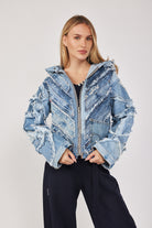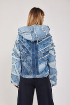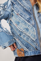 ג'קט ג'ינס בעבודת יד ועיצוב ייחודי, עשוי מגזרי מכנסי וינטג'.