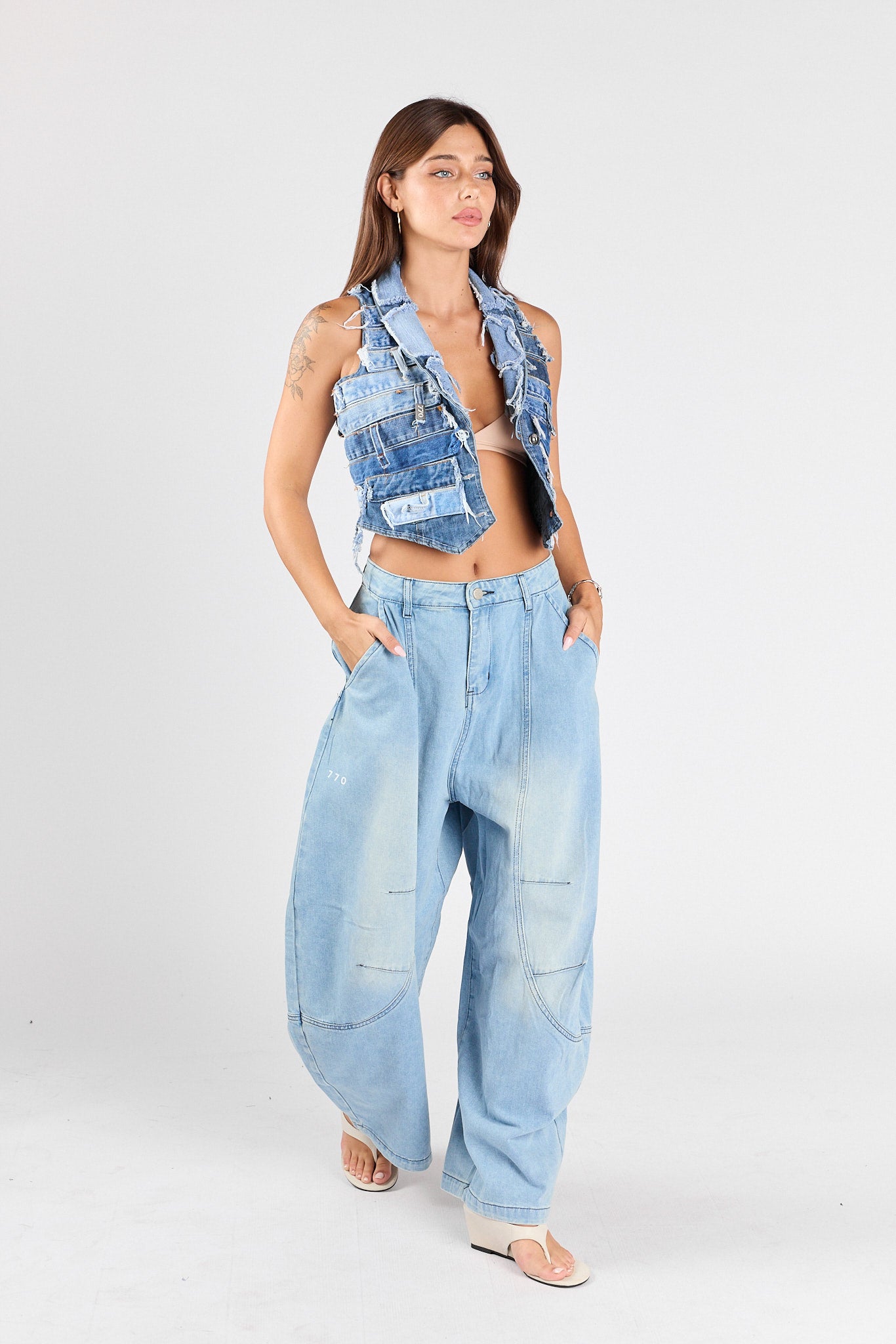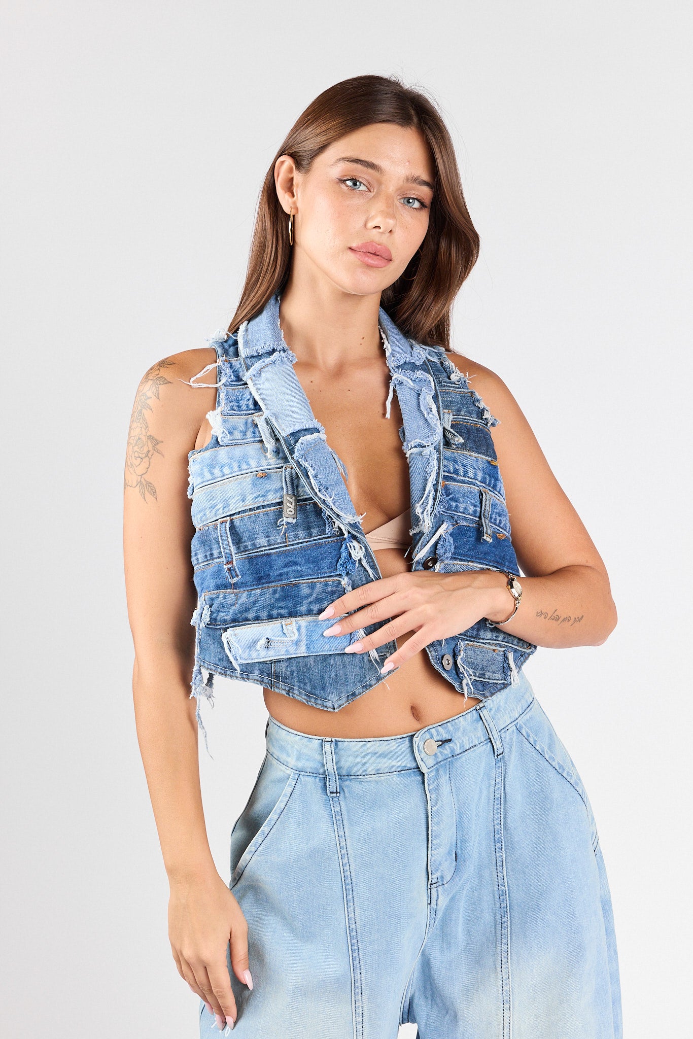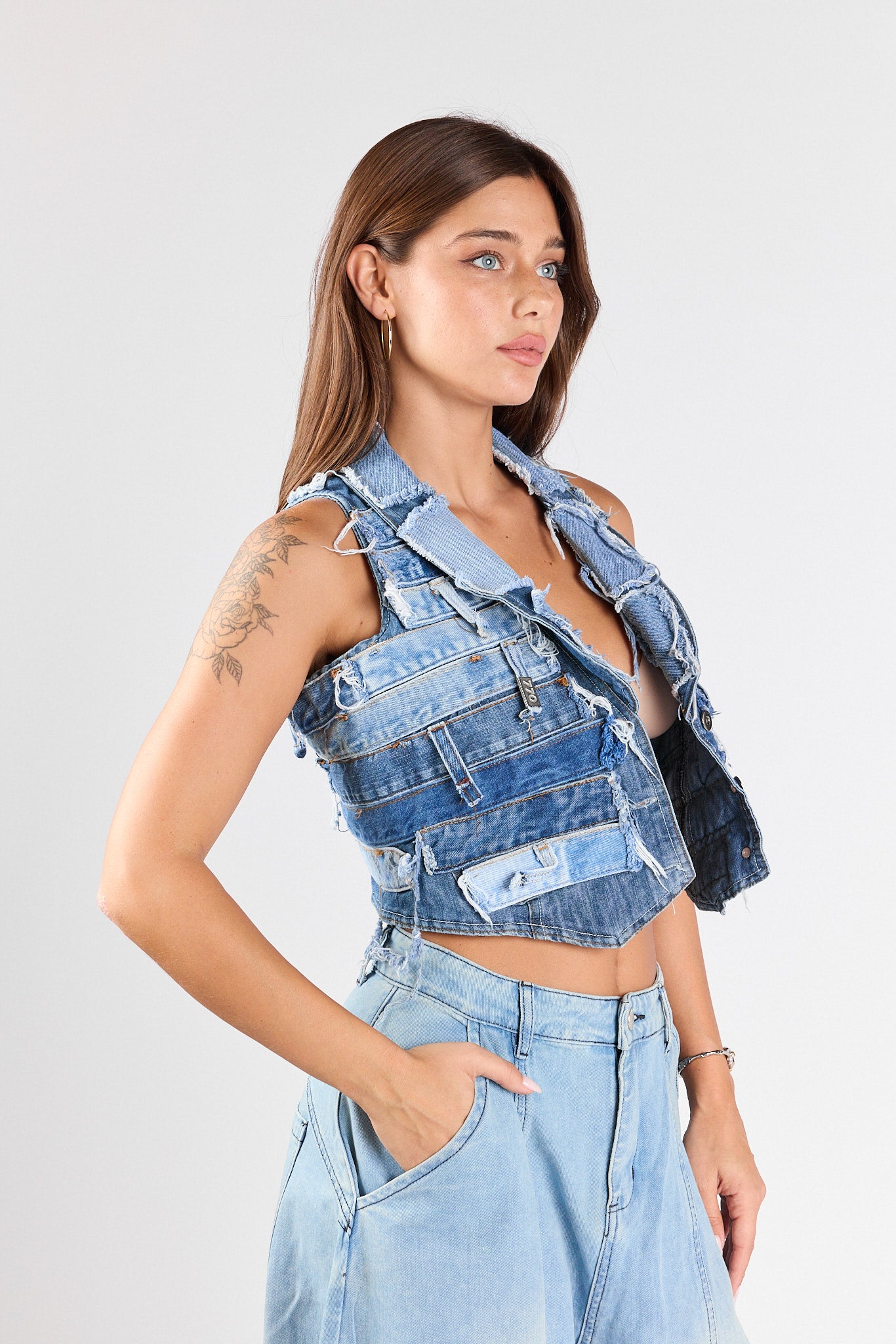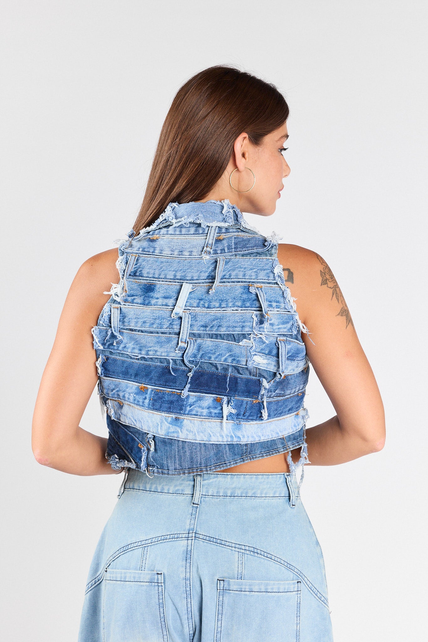 Patchwork denim vest