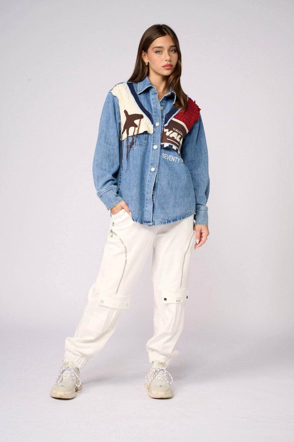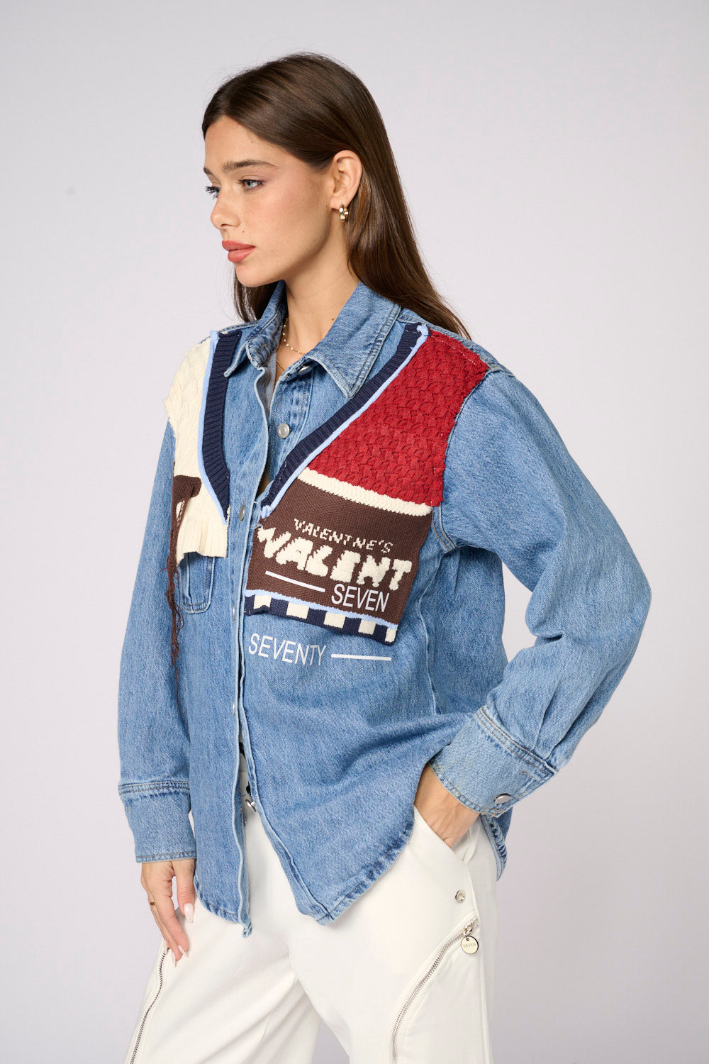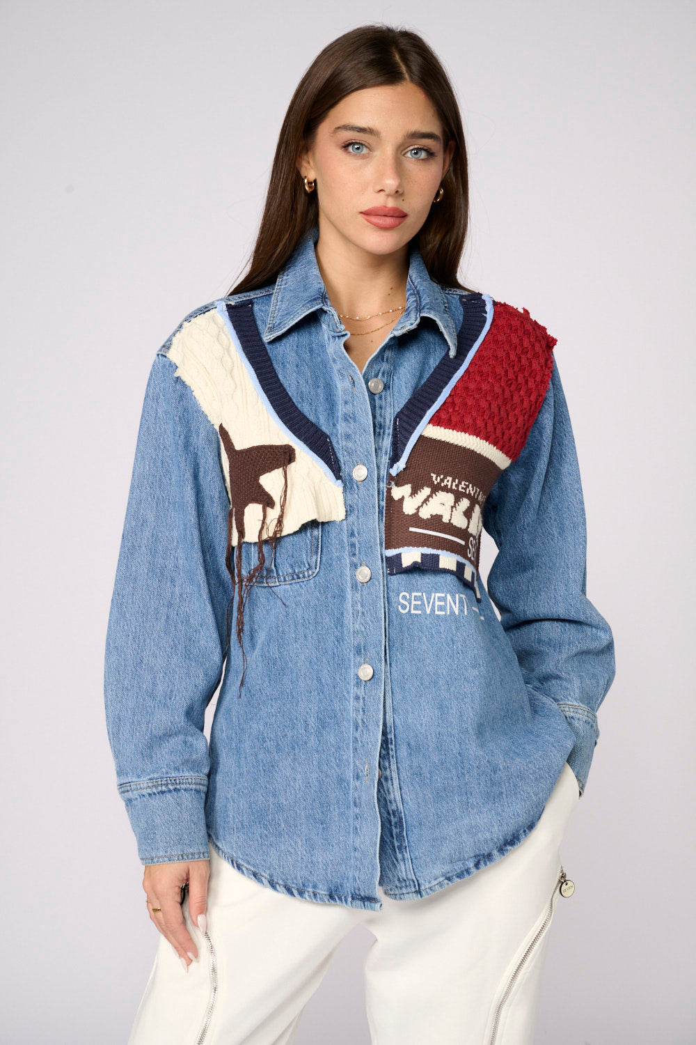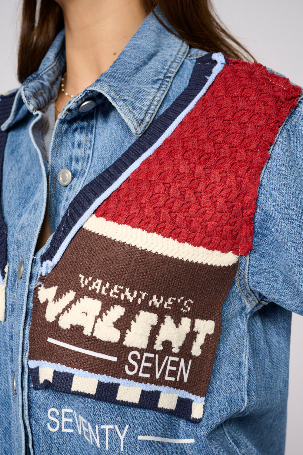 Denim jacket shirt combined with knit START