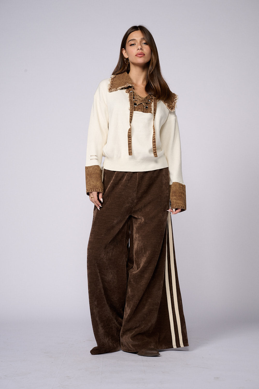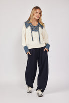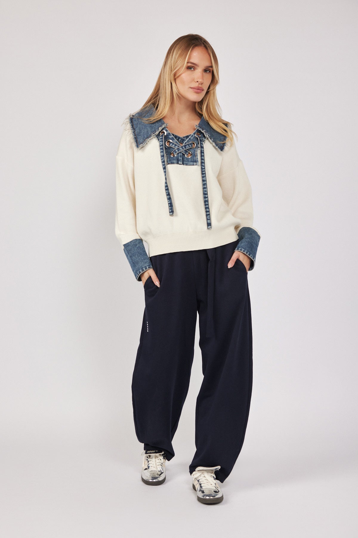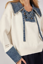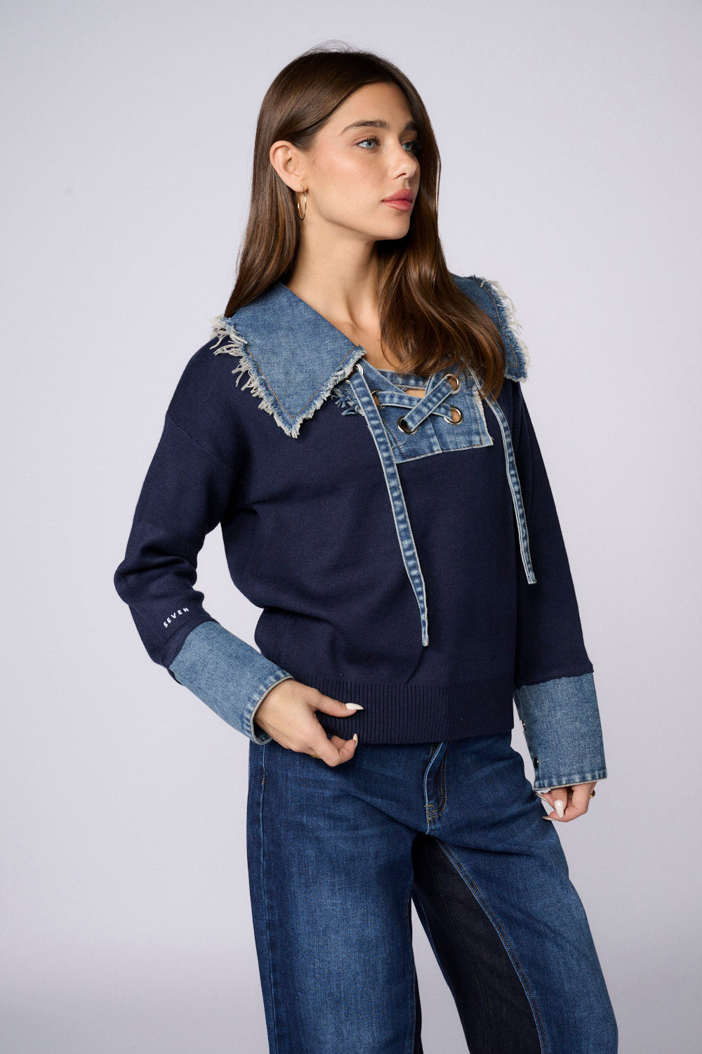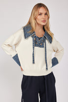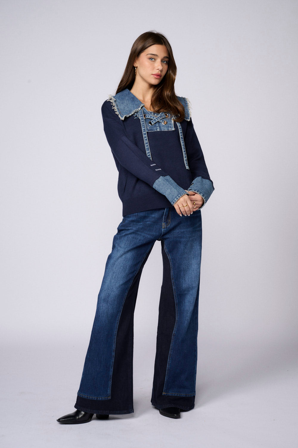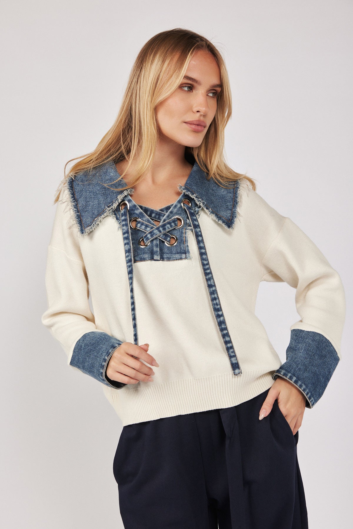 חולצת סריג שילוב ג'ינס שרוך
