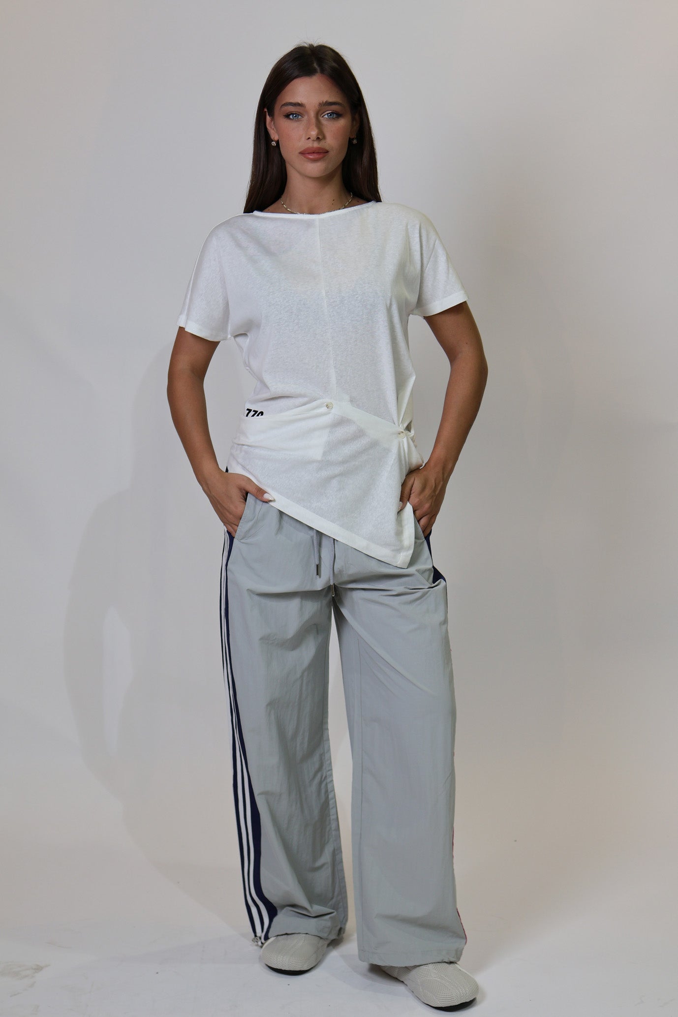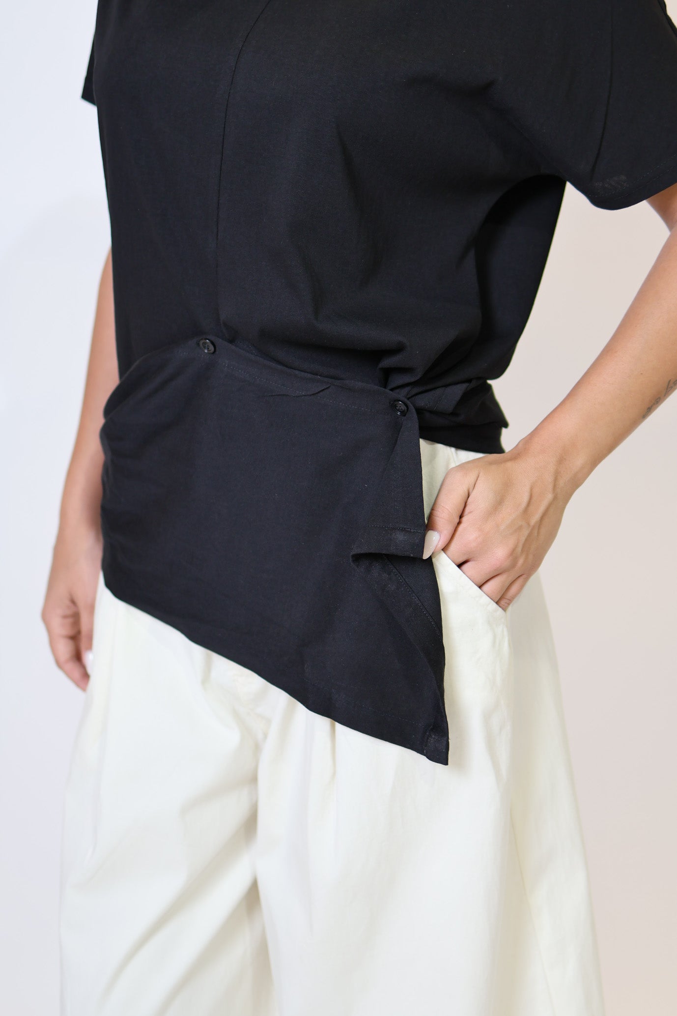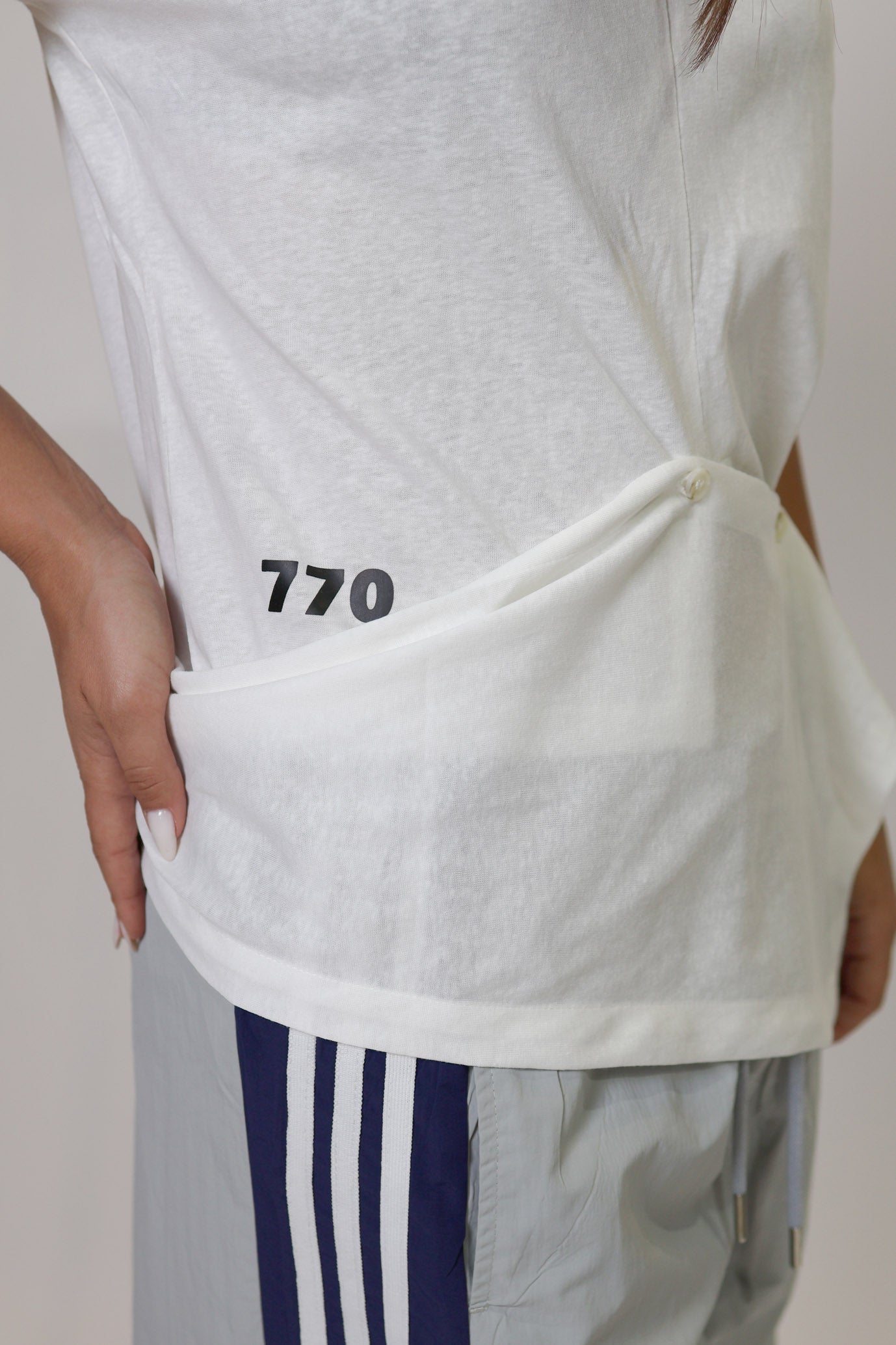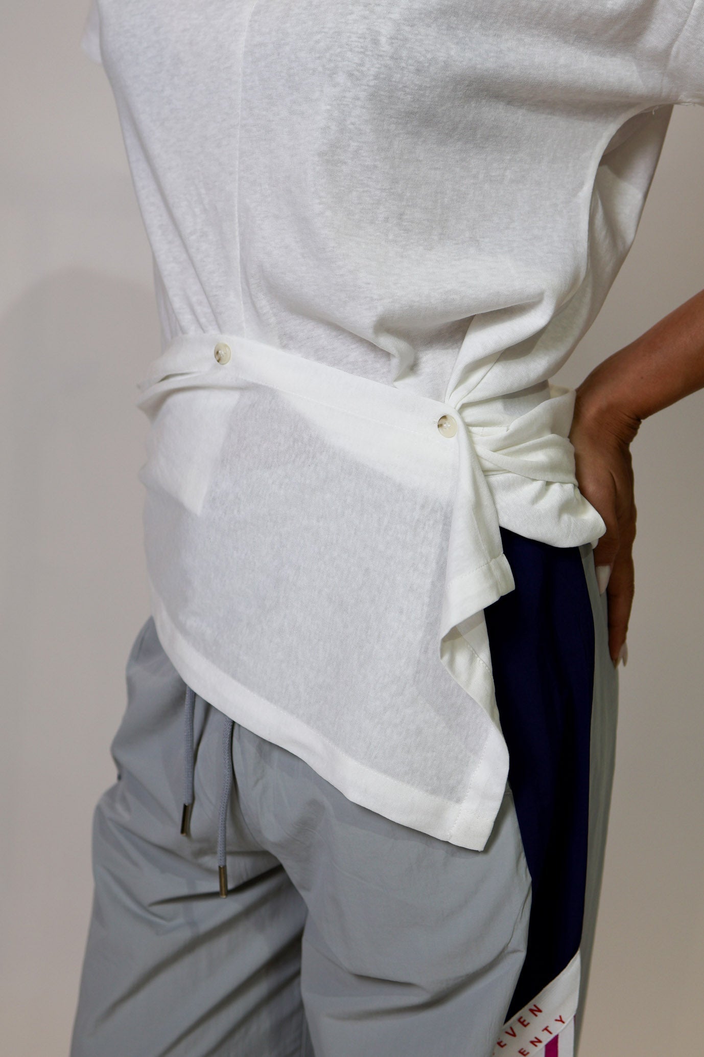 Specially designed shirt Made of cotton fabric that is pleasant to the touch, flexible and stretchy With a fabric strap that wraps around the waist with a button closure ONE SIZE Chest circumference in cm before stretching: 100