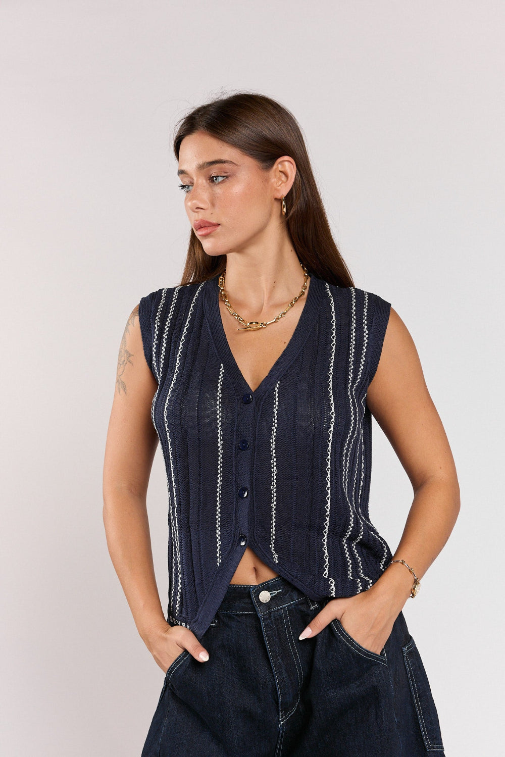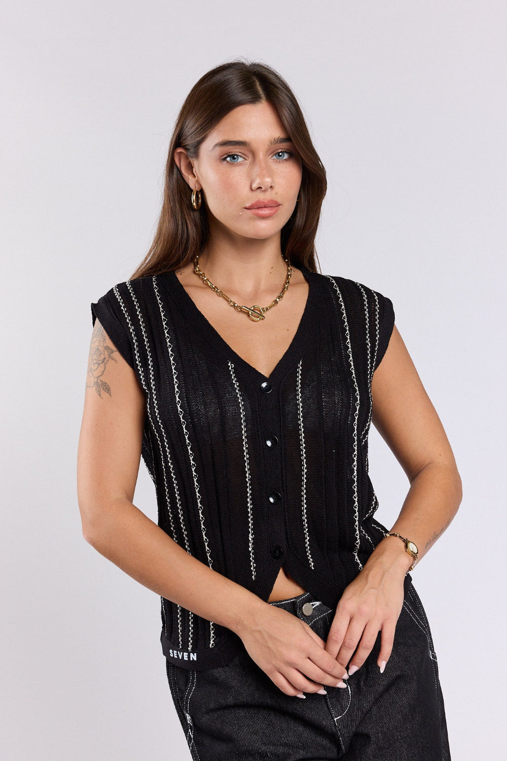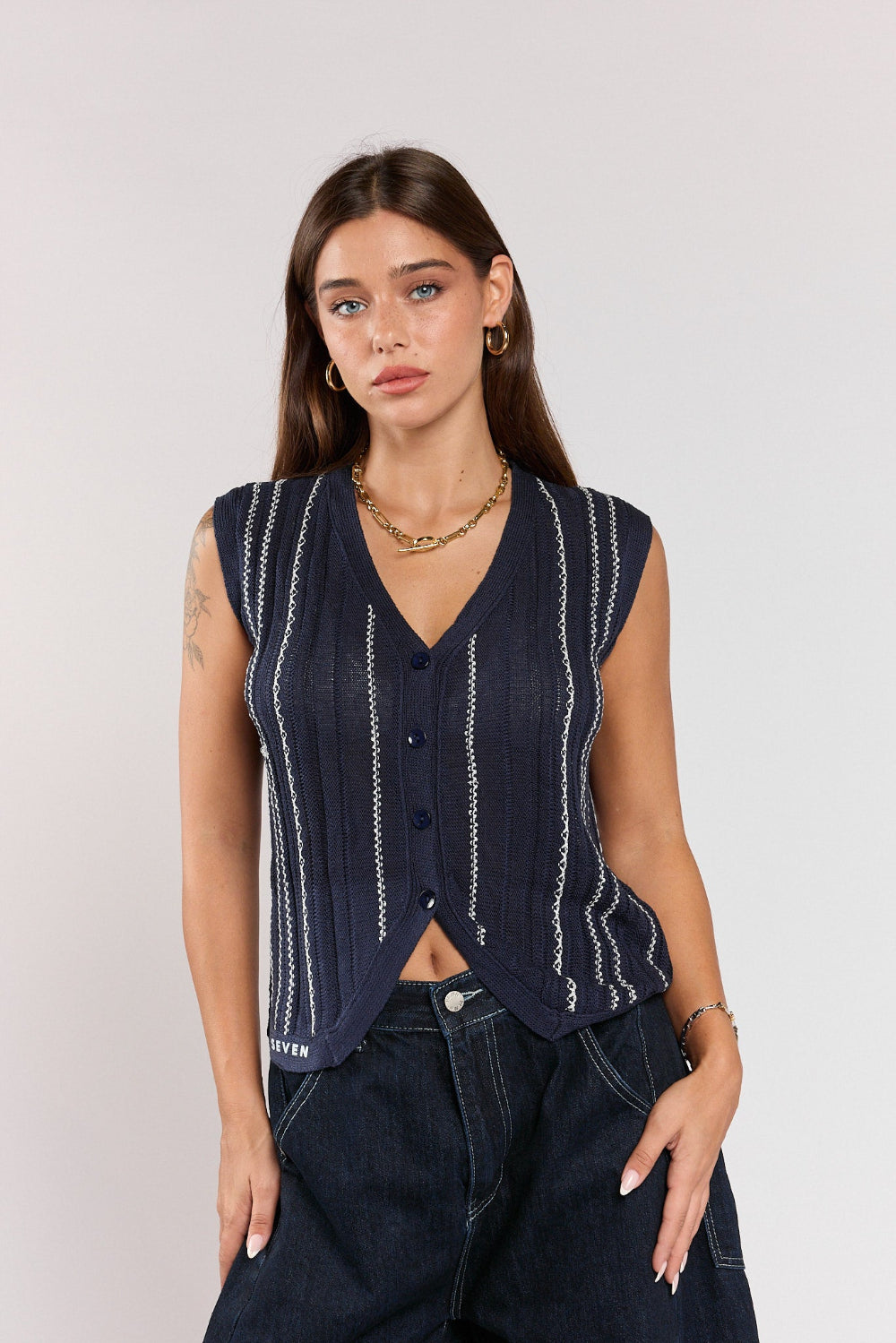 Slightly stretchy thin knit vest with button closure Chest circumference measurement before stretching
