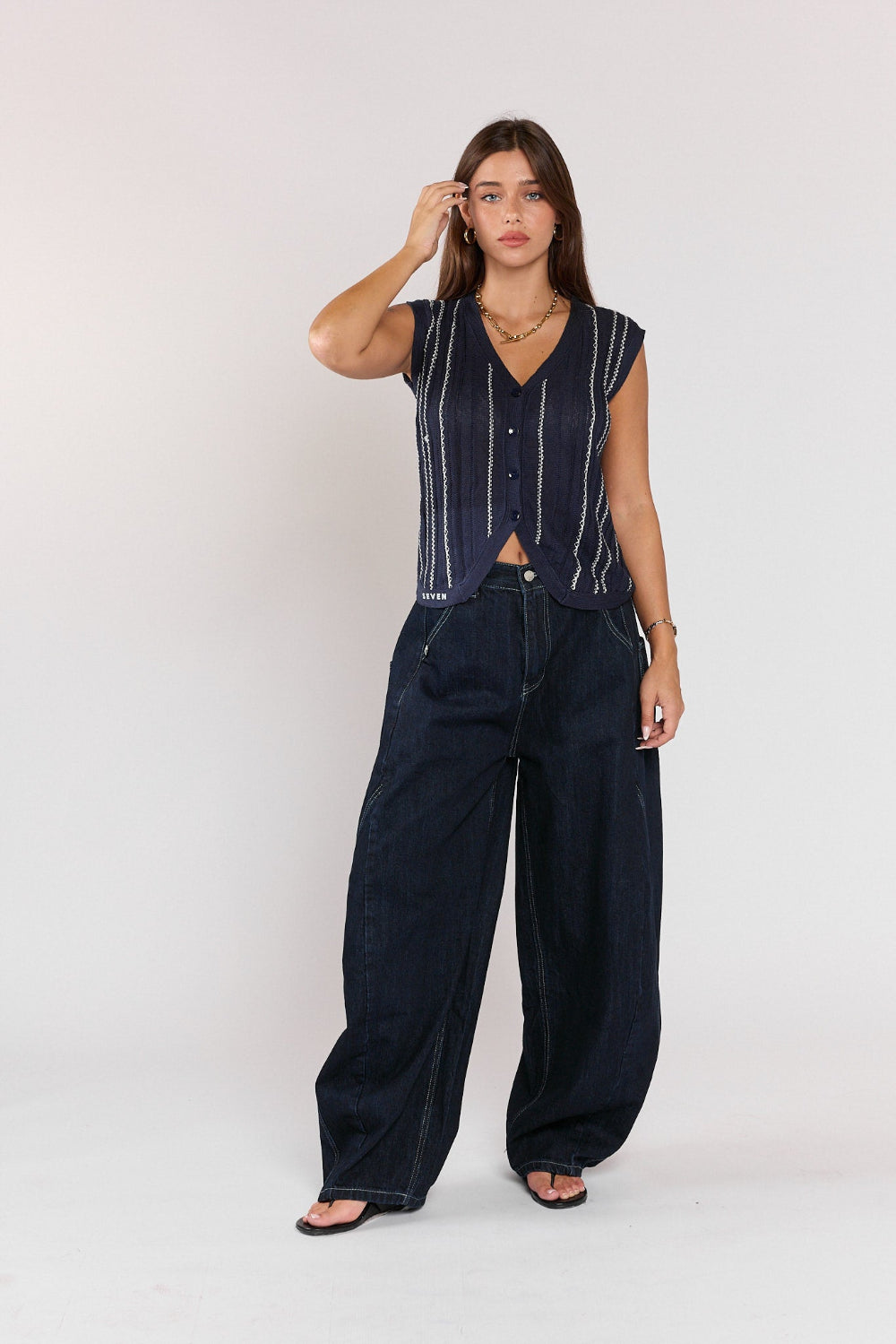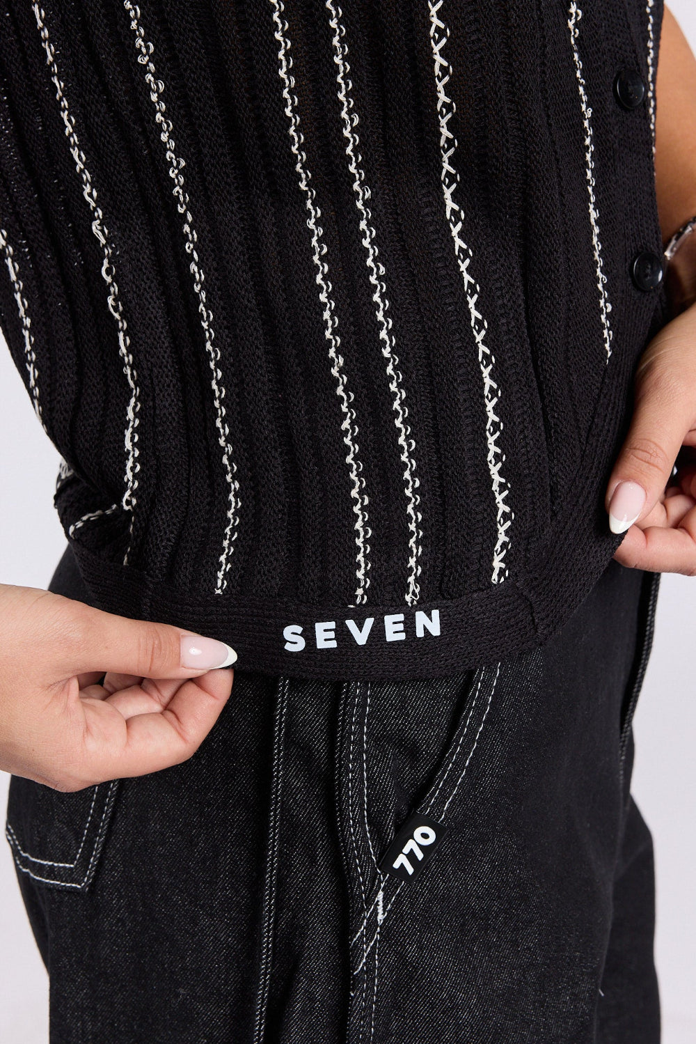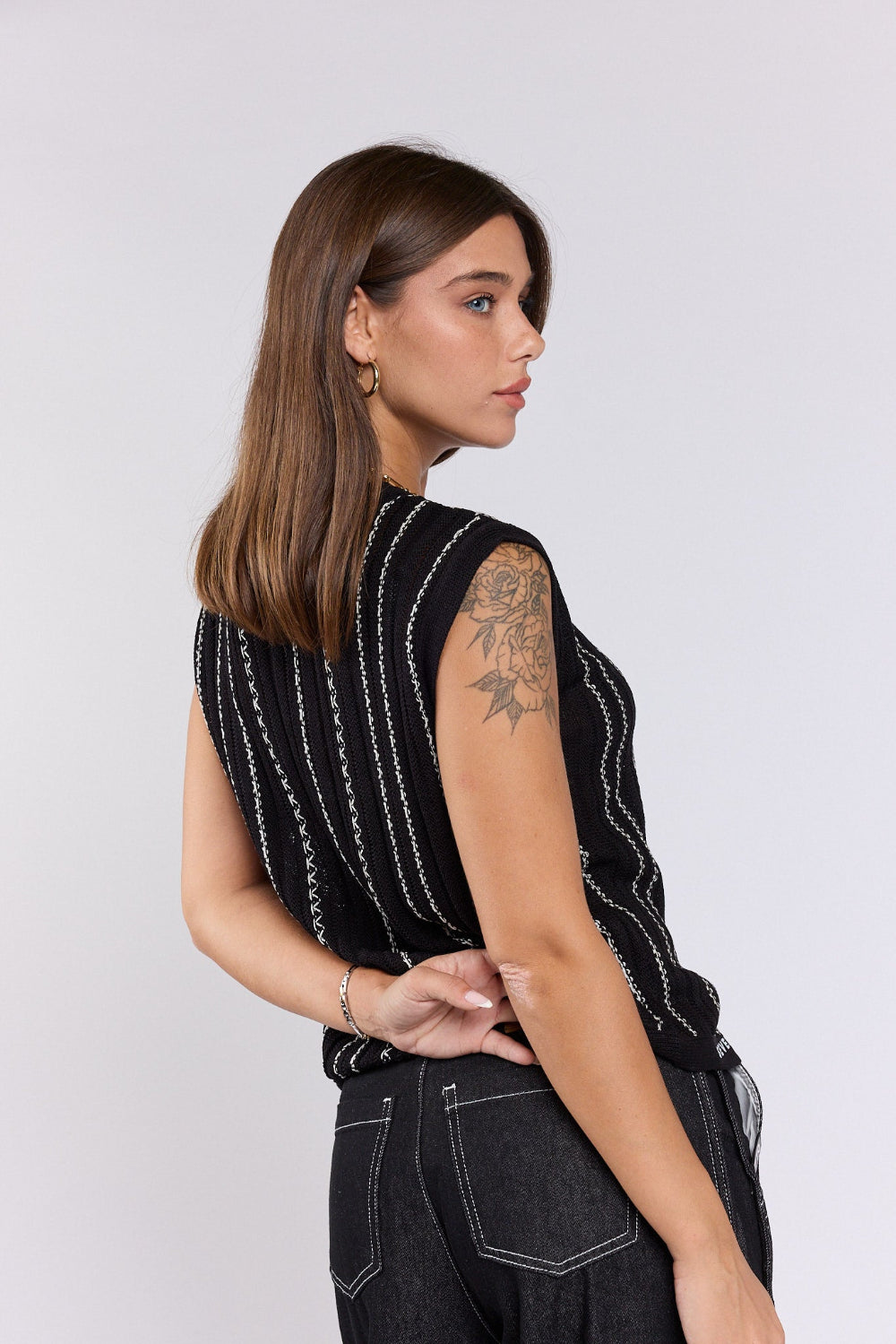 Slightly stretchy thin knit vest with button closure Chest circumference measurement before stretching