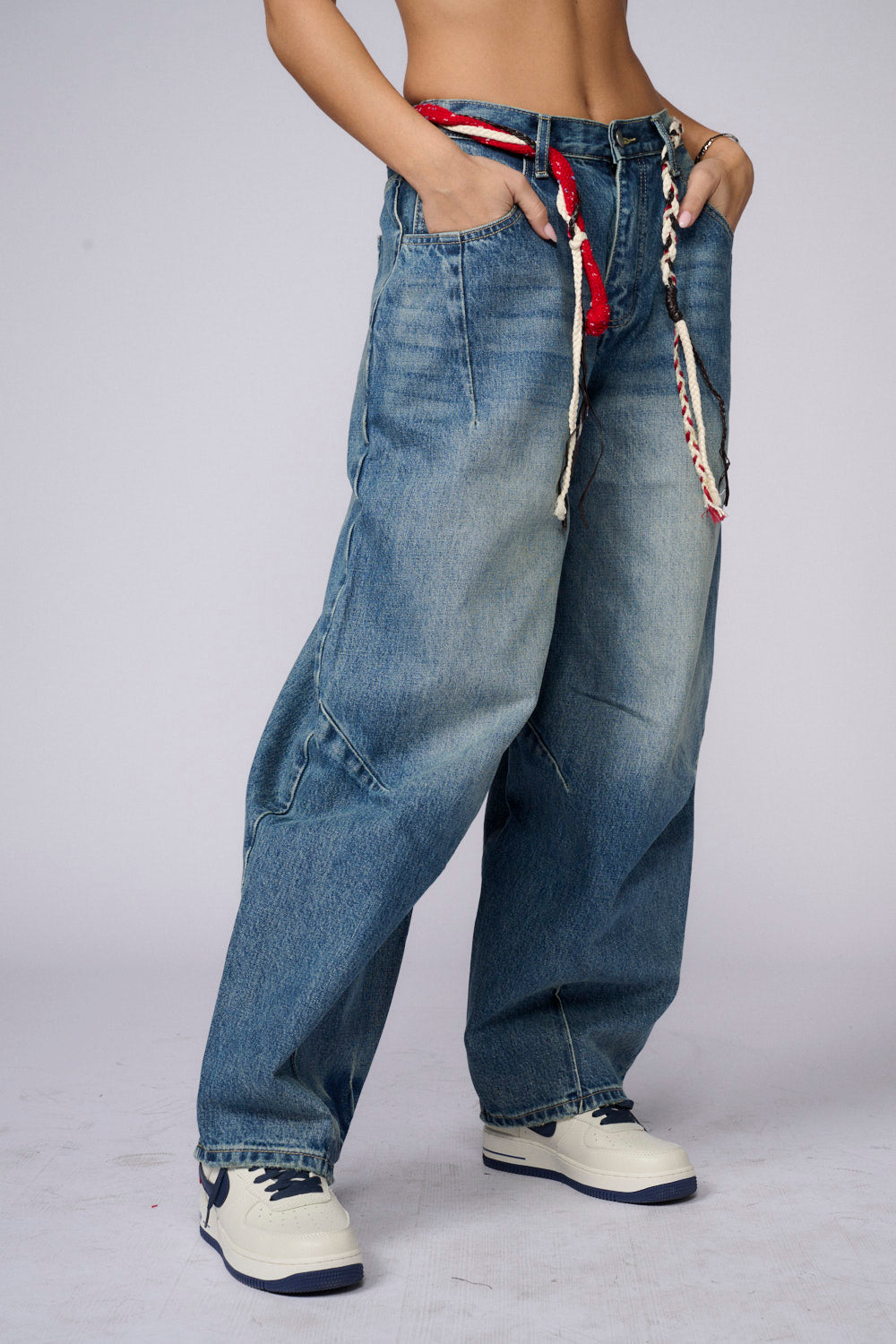 ג'ינס רחב שילוב חגורת צמה