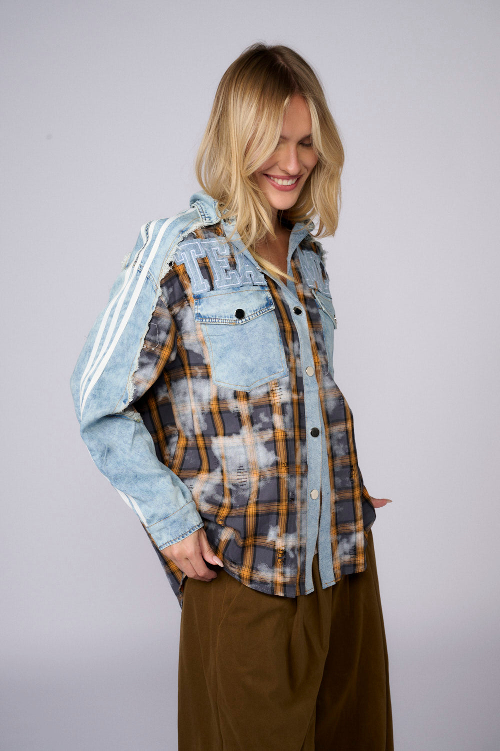 חולצת משבצות שילוב ג'ינס