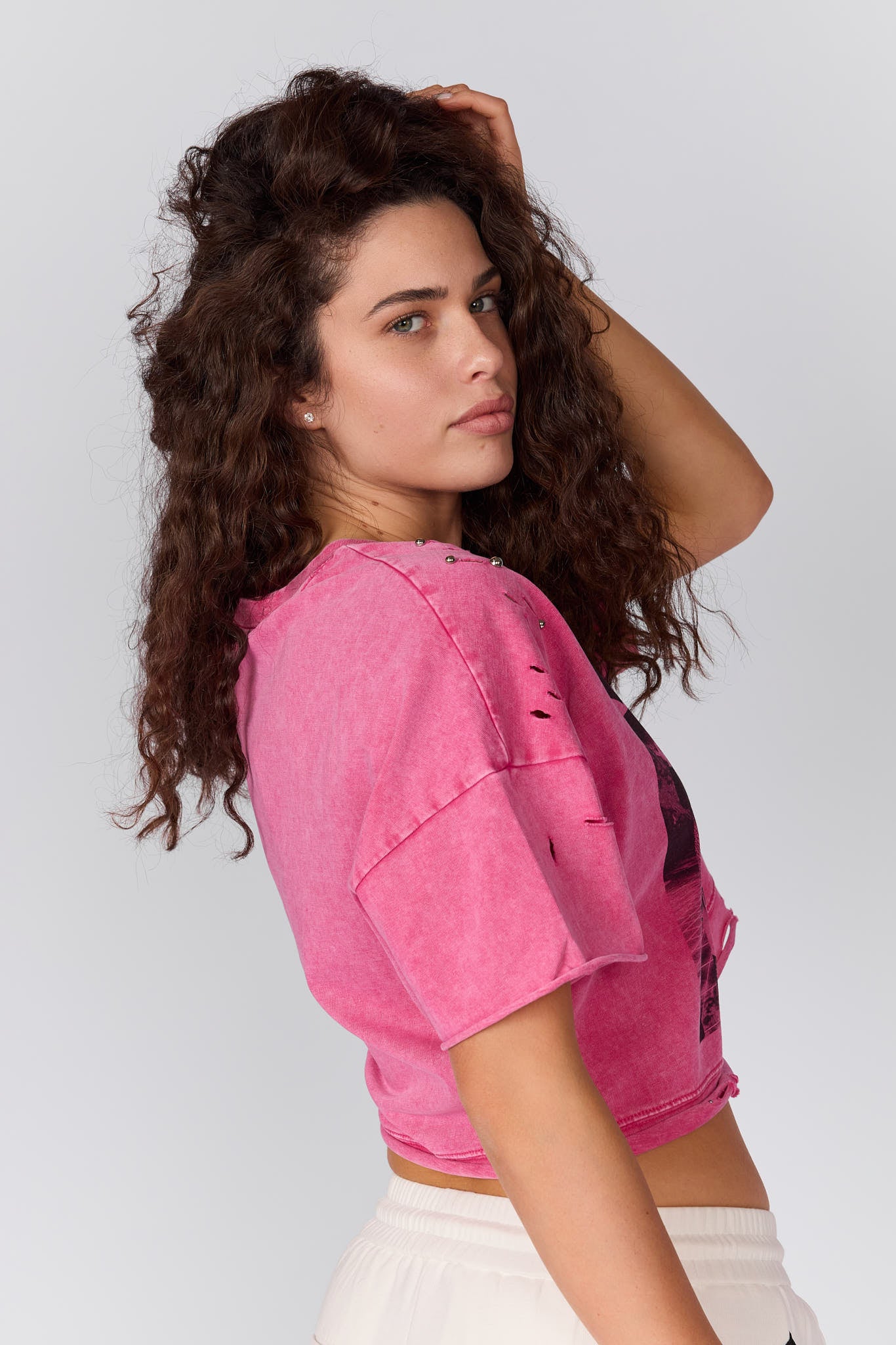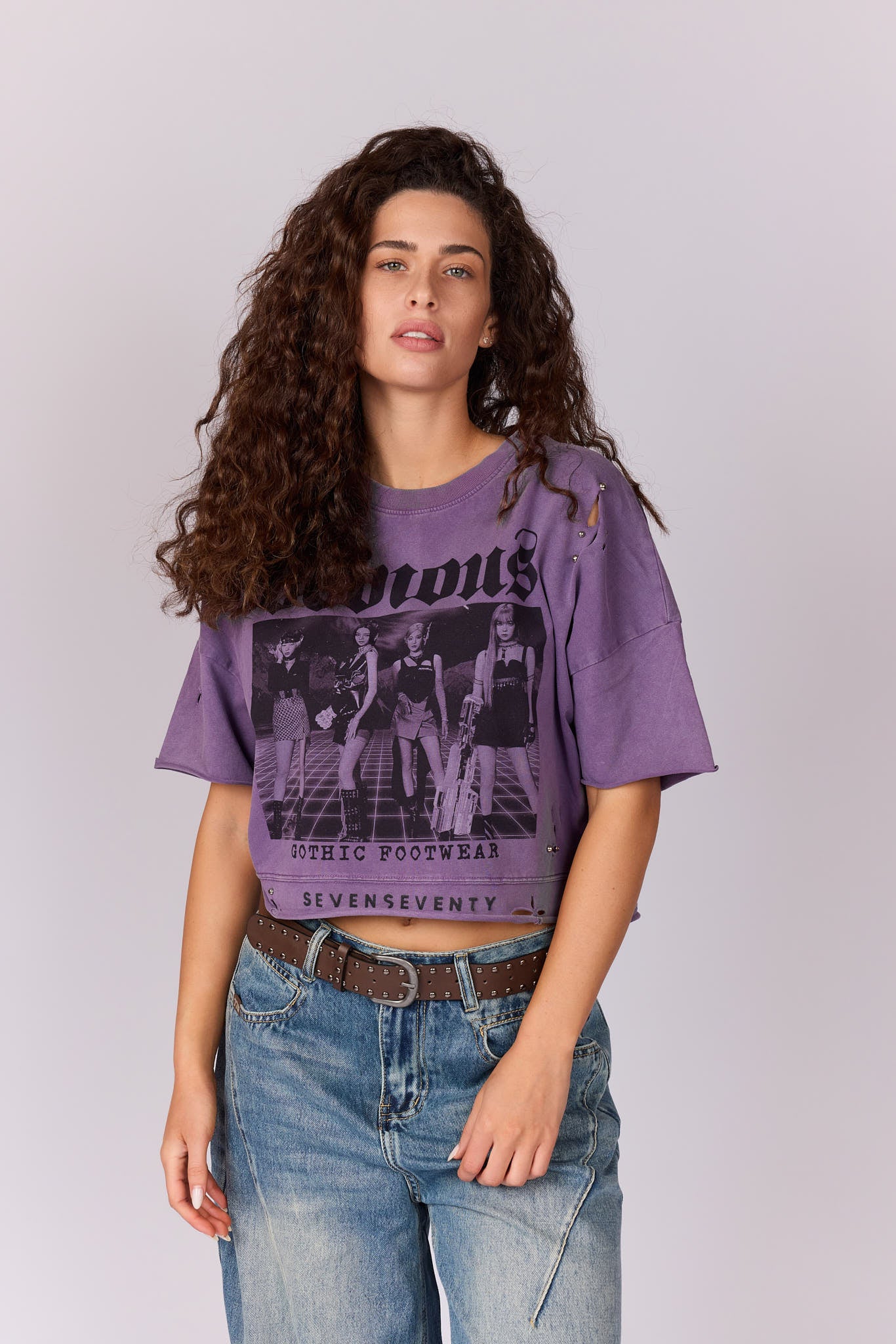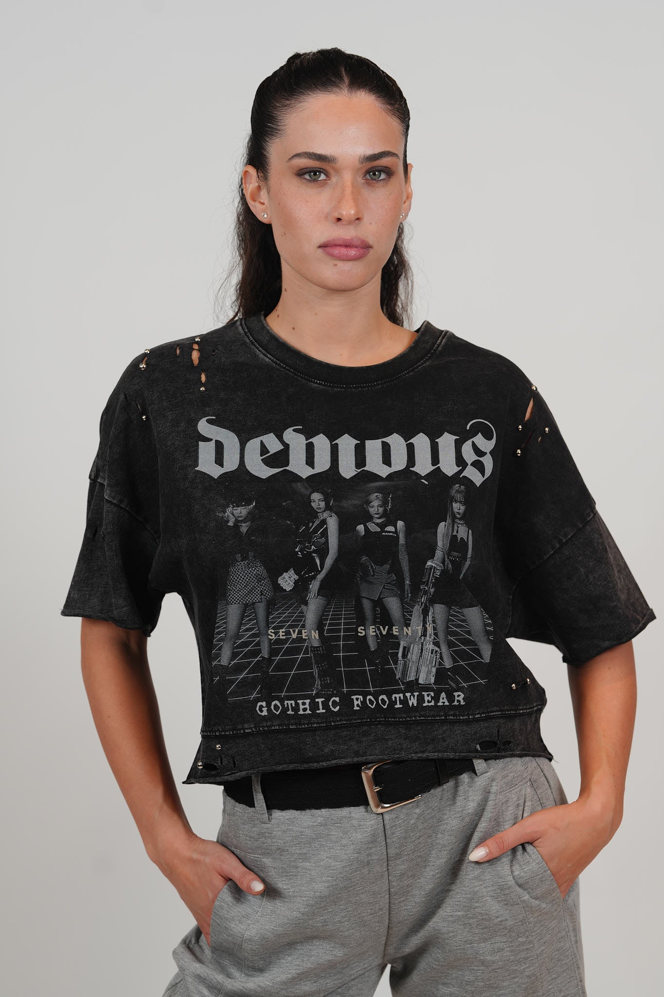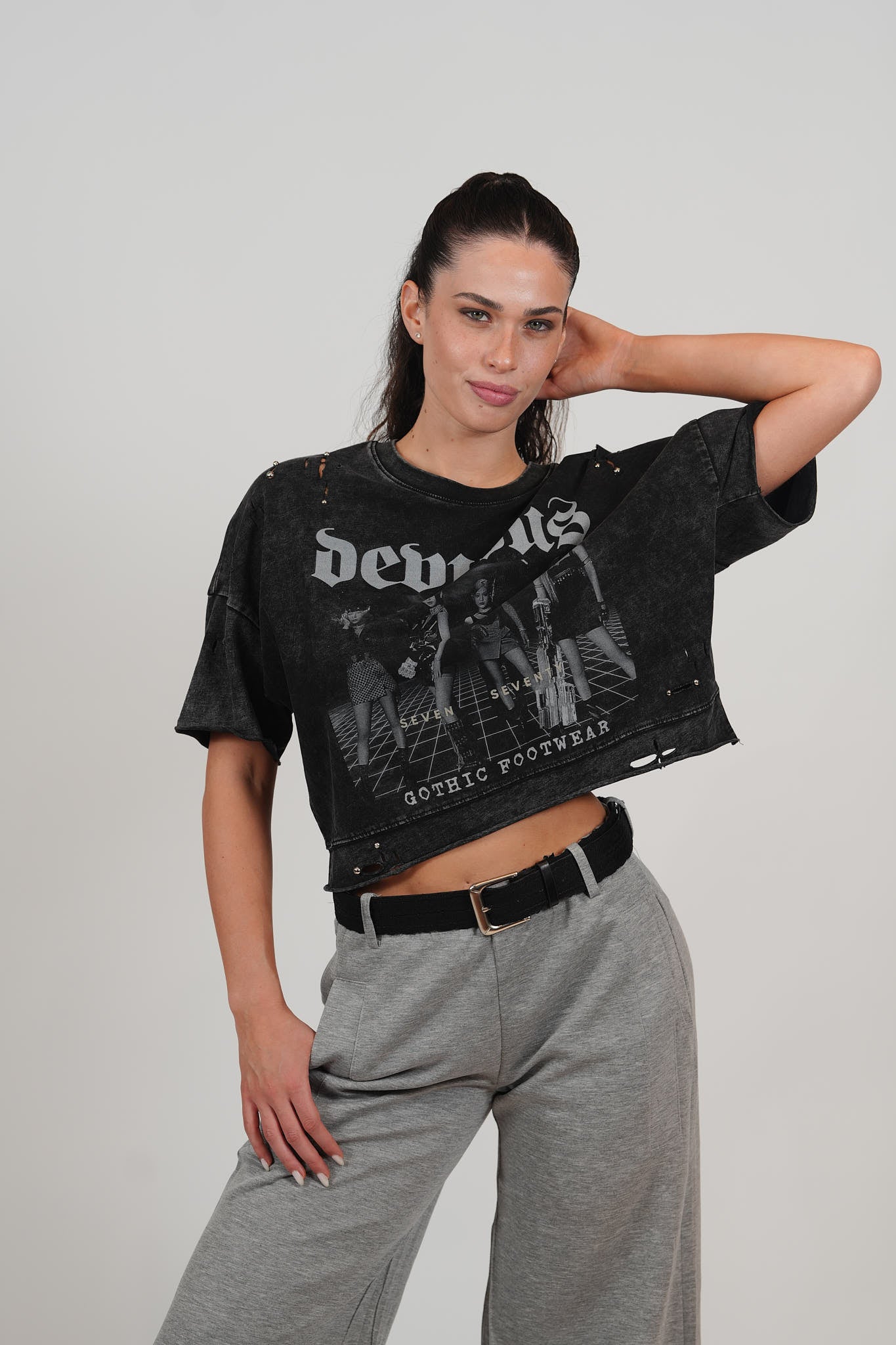 חולצת קרופ קרעים וניטים
