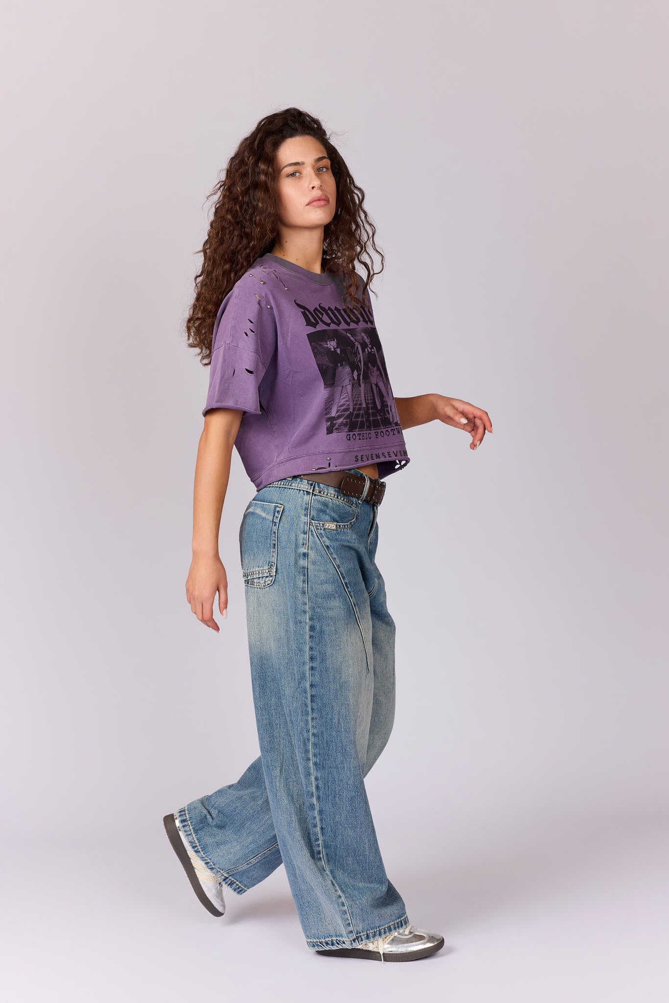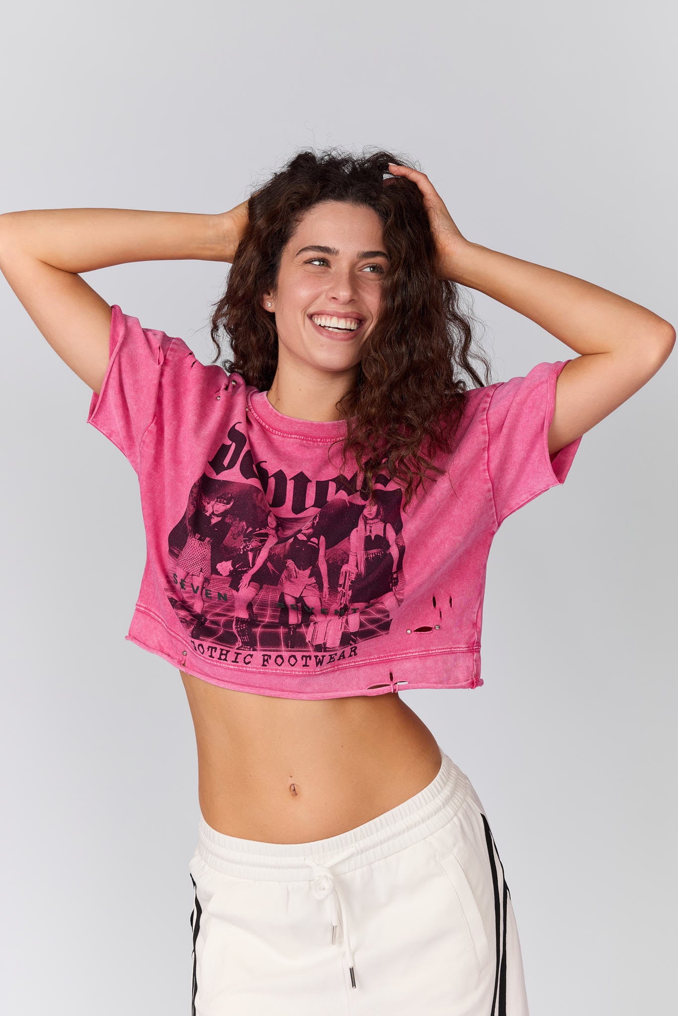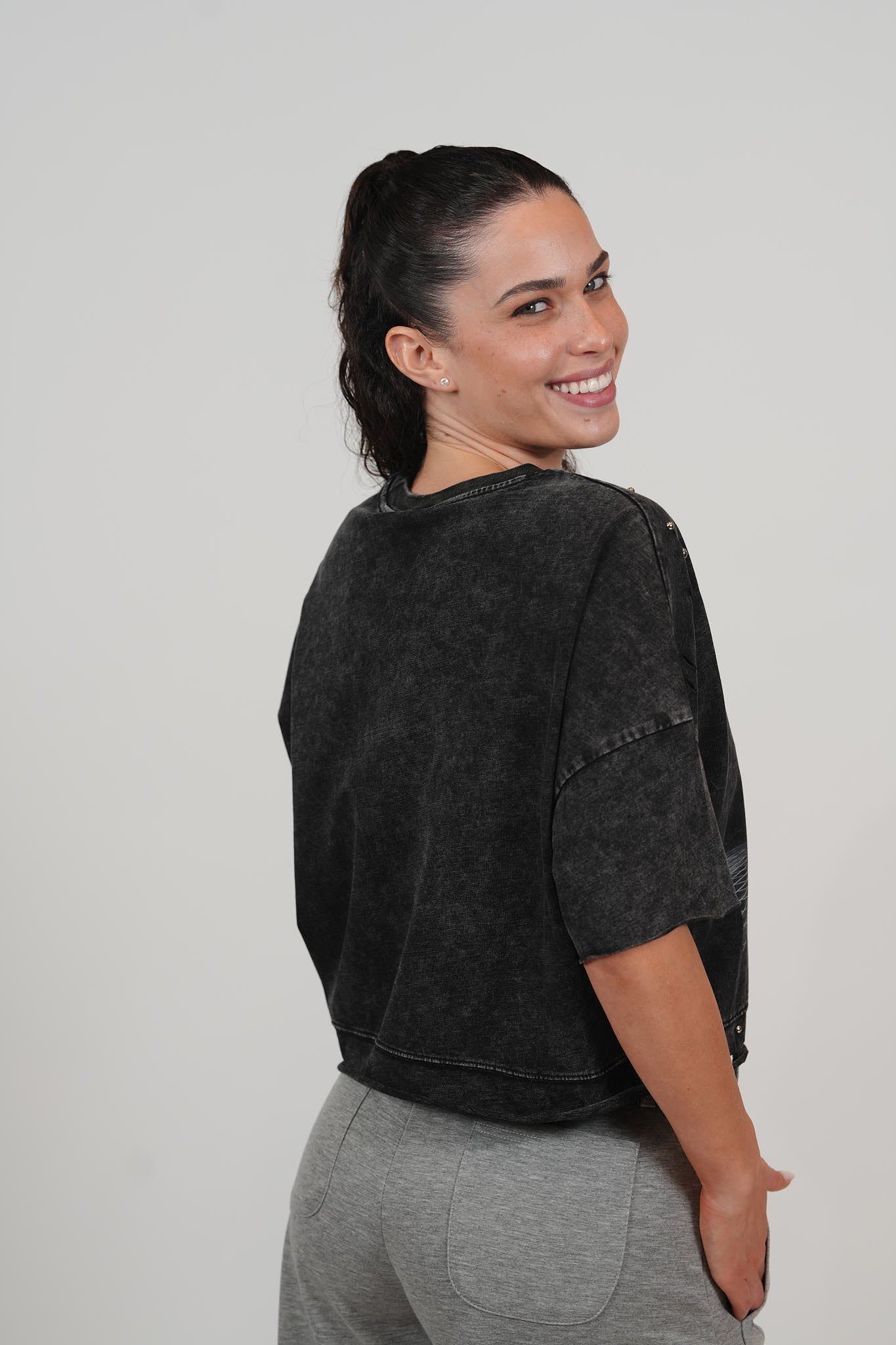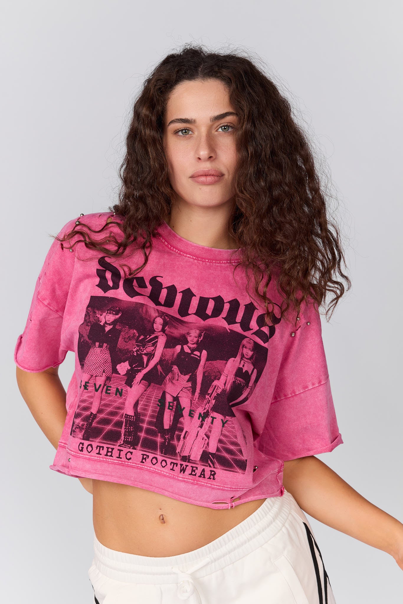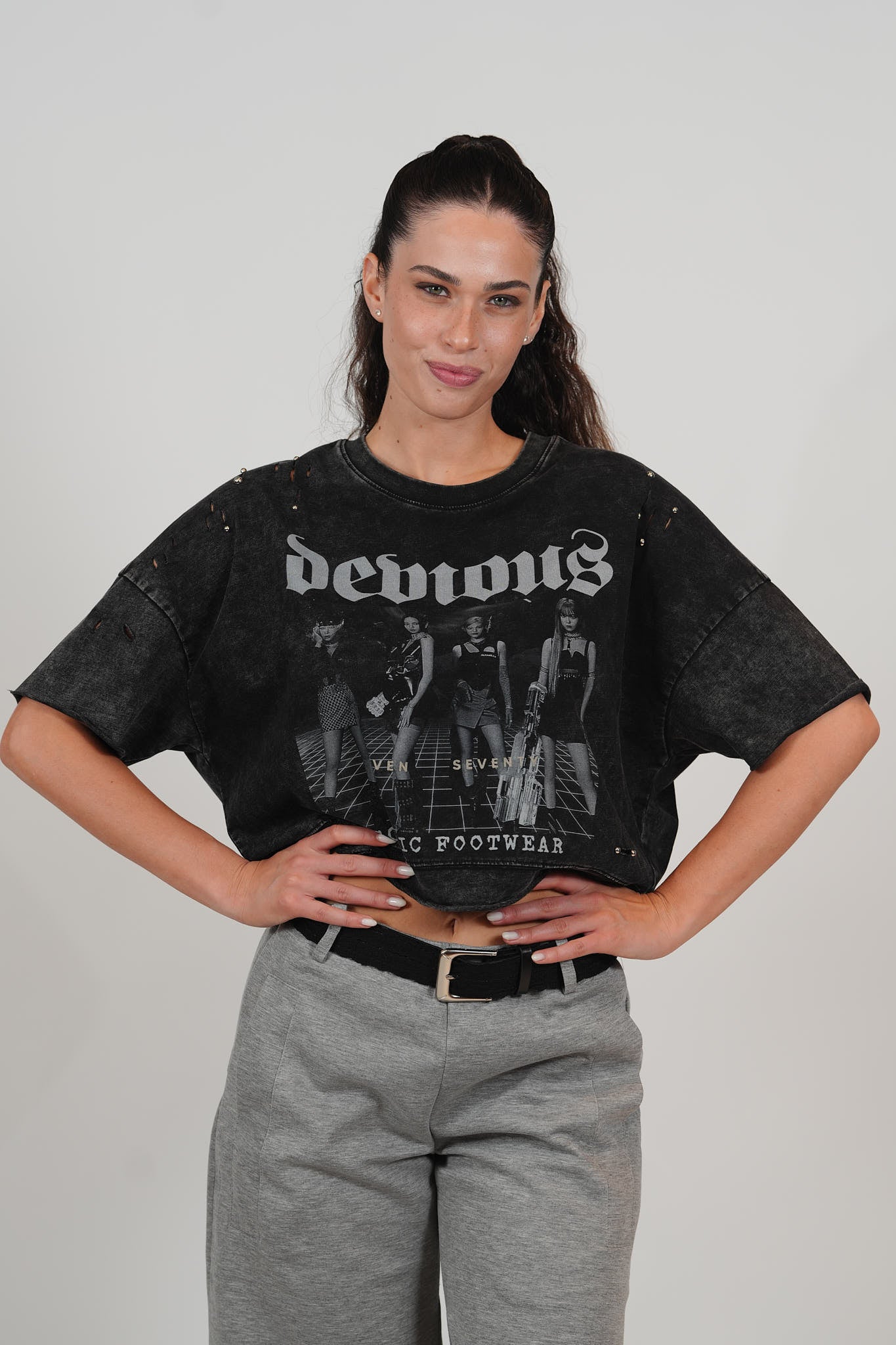 חולצת קרופ קרעים וניטים